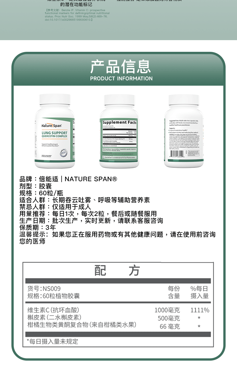 Nature Span槲皮素维生素C肺部胶囊 美国原装进口60粒