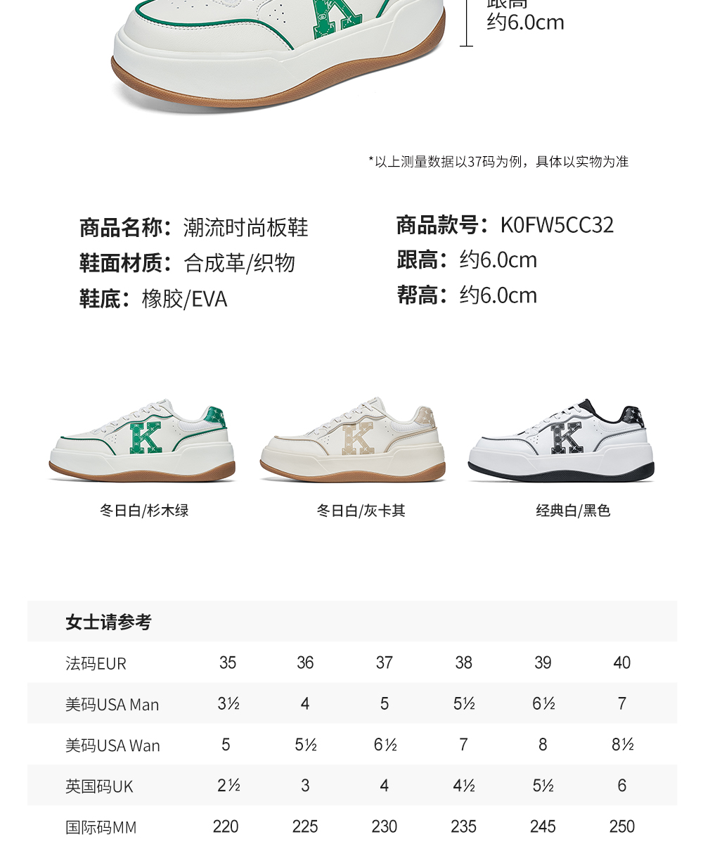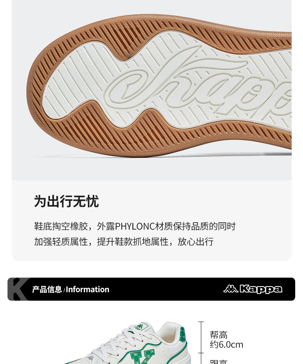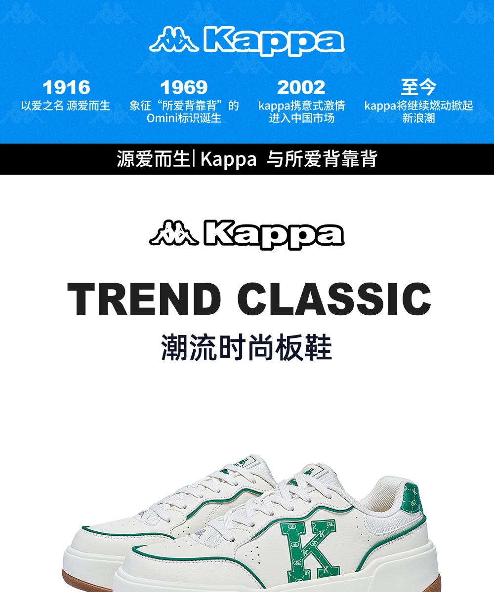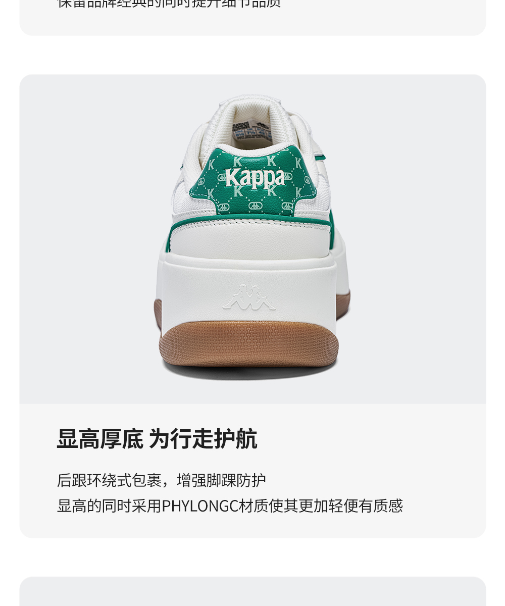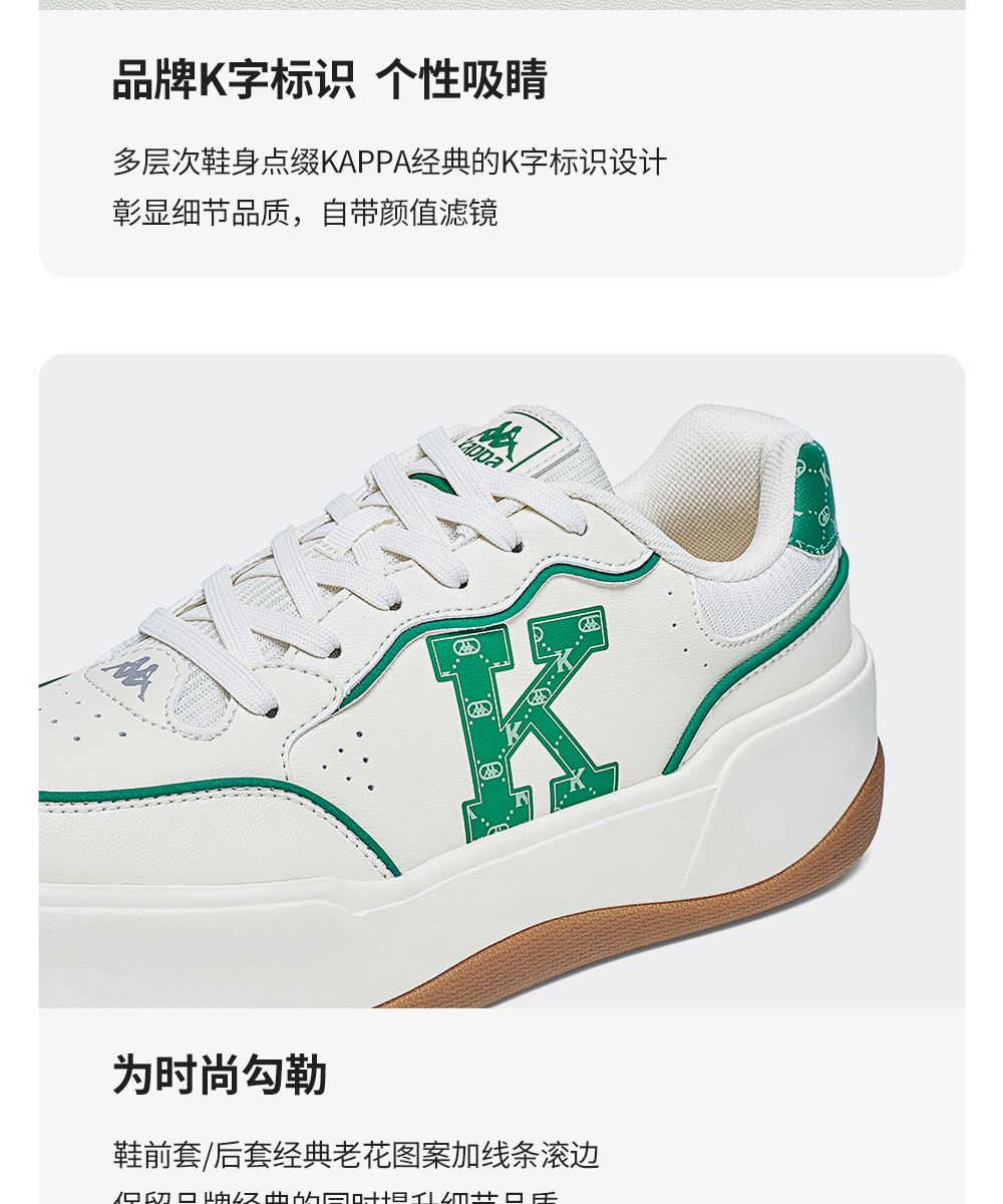Kappa卡帕休闲板鞋女款2024新款情侣鞋百搭厚底鞋经典复古运动鞋K0FW5CC32
