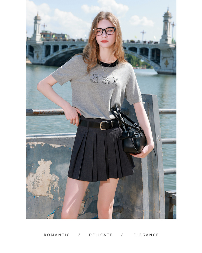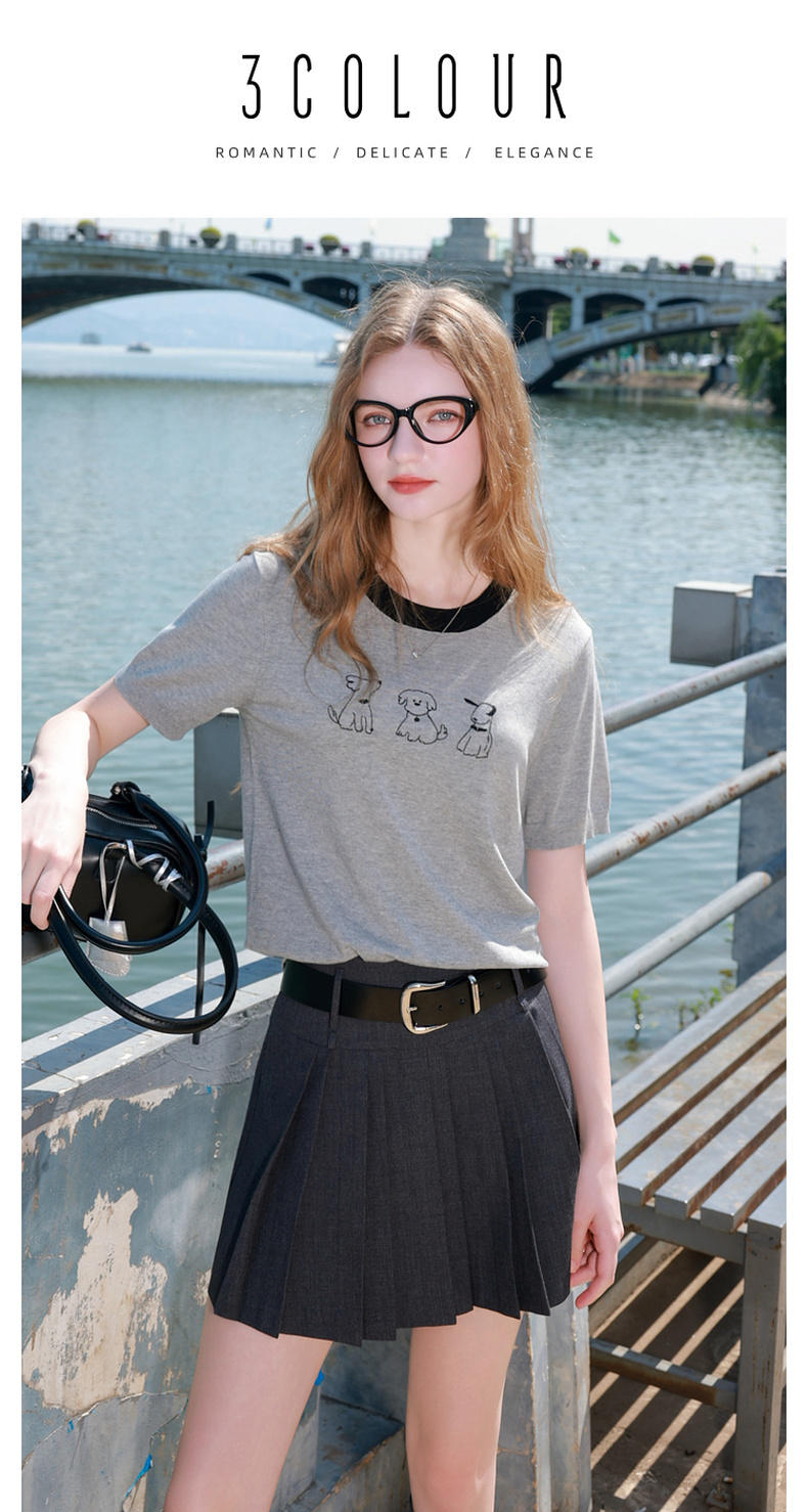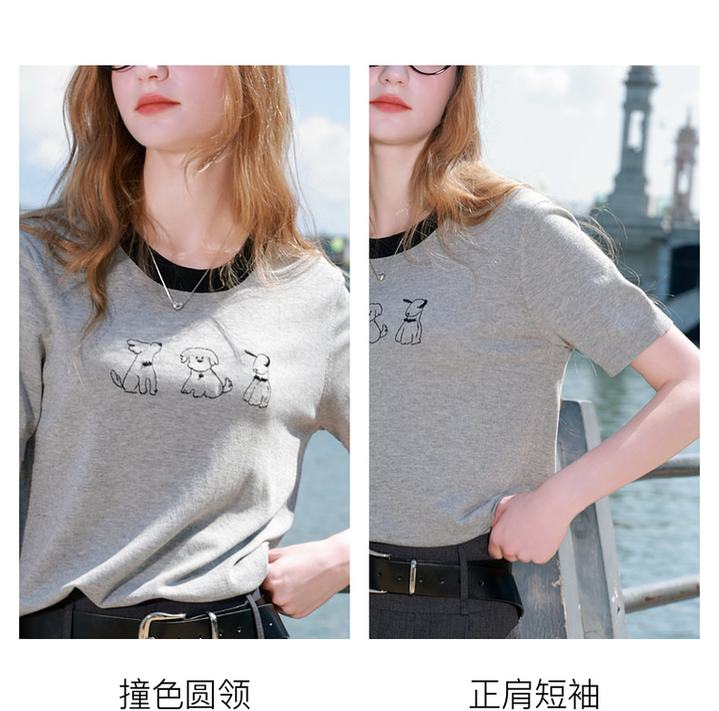 【莱赛尔】三彩2025秋季新款圆领针织衫卡通小狗套头气质显瘦M