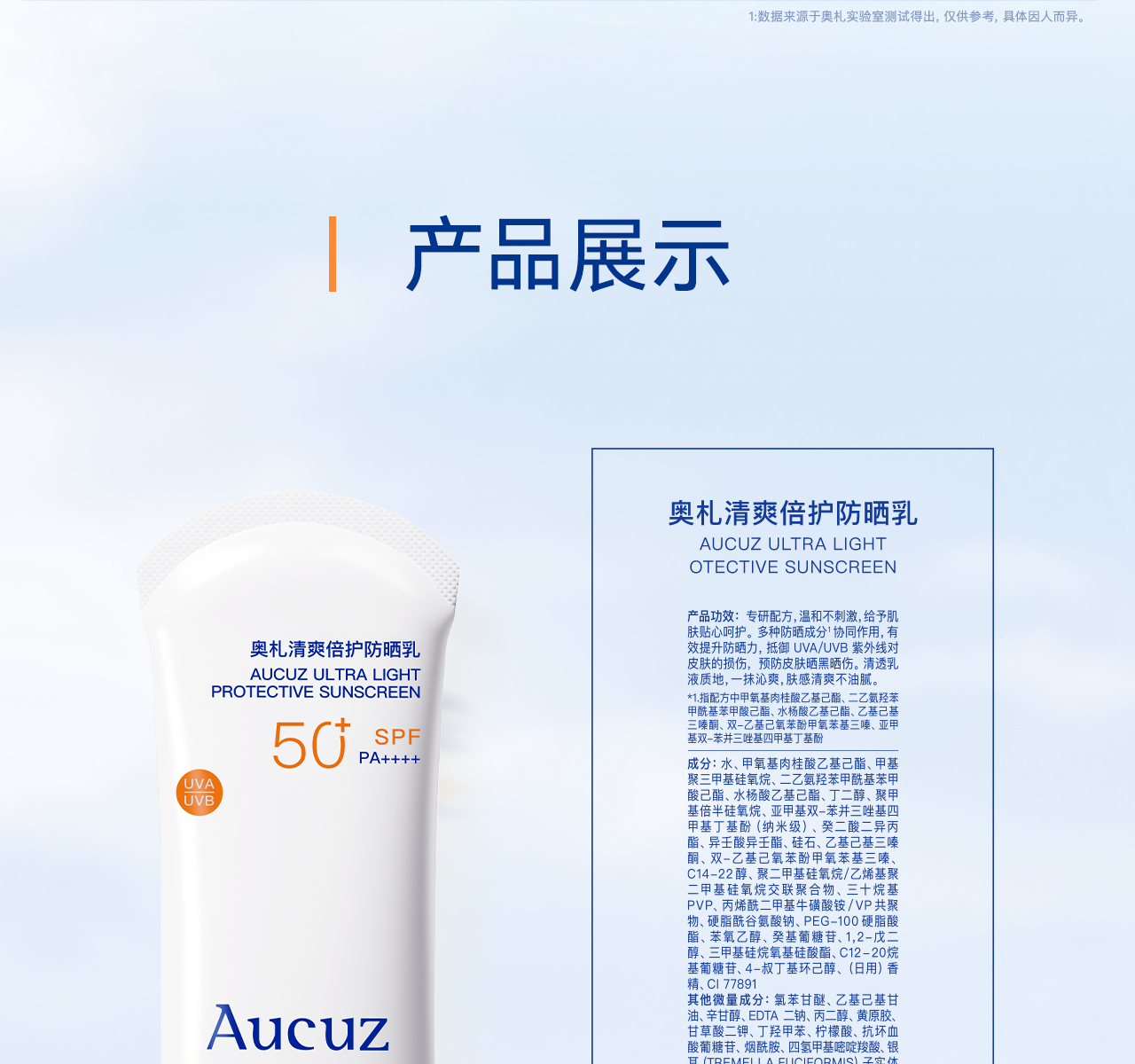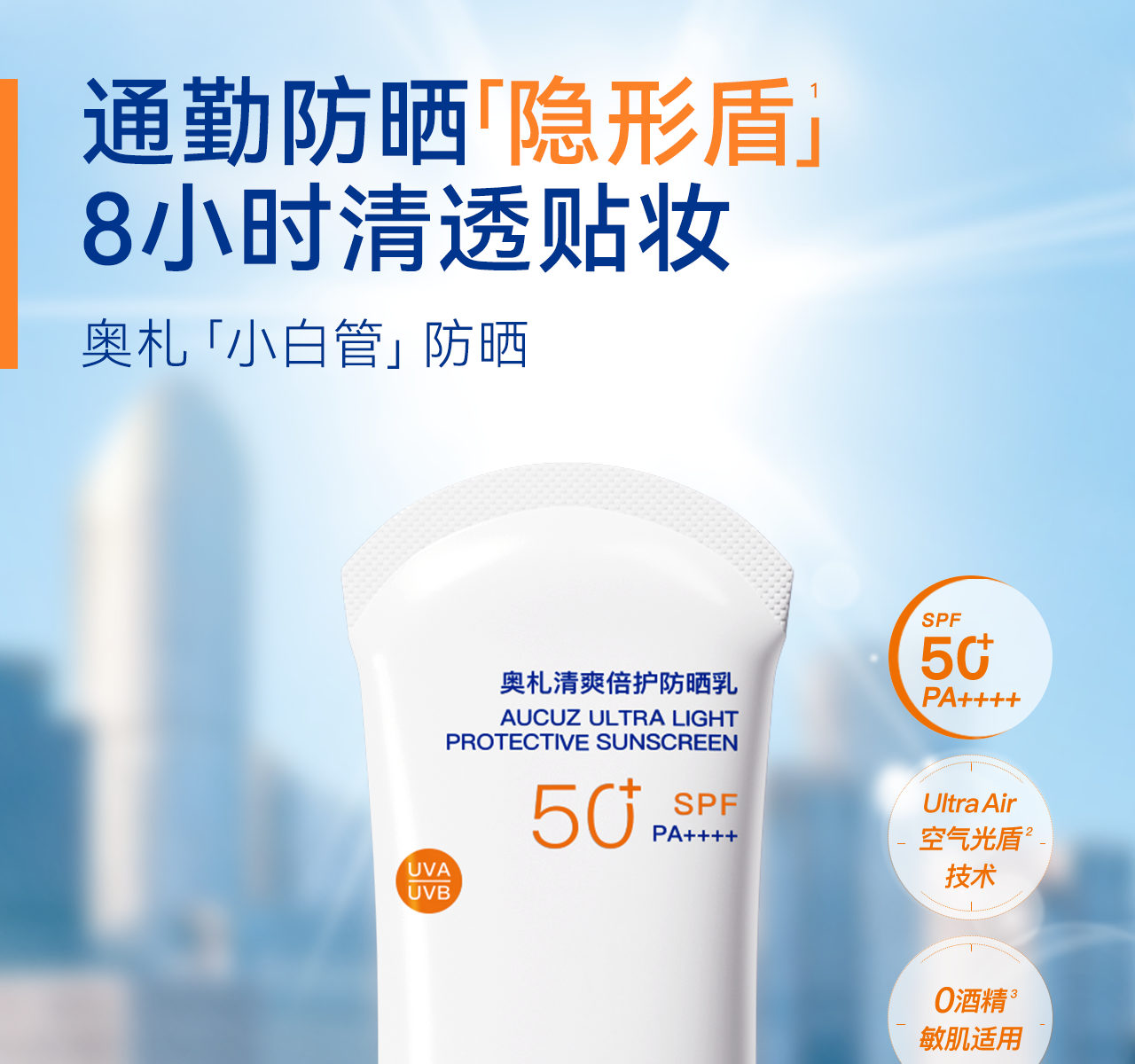 【通勤必备】Aucuz奥札 清爽倍护防晒乳 小白管 敏肌可用
