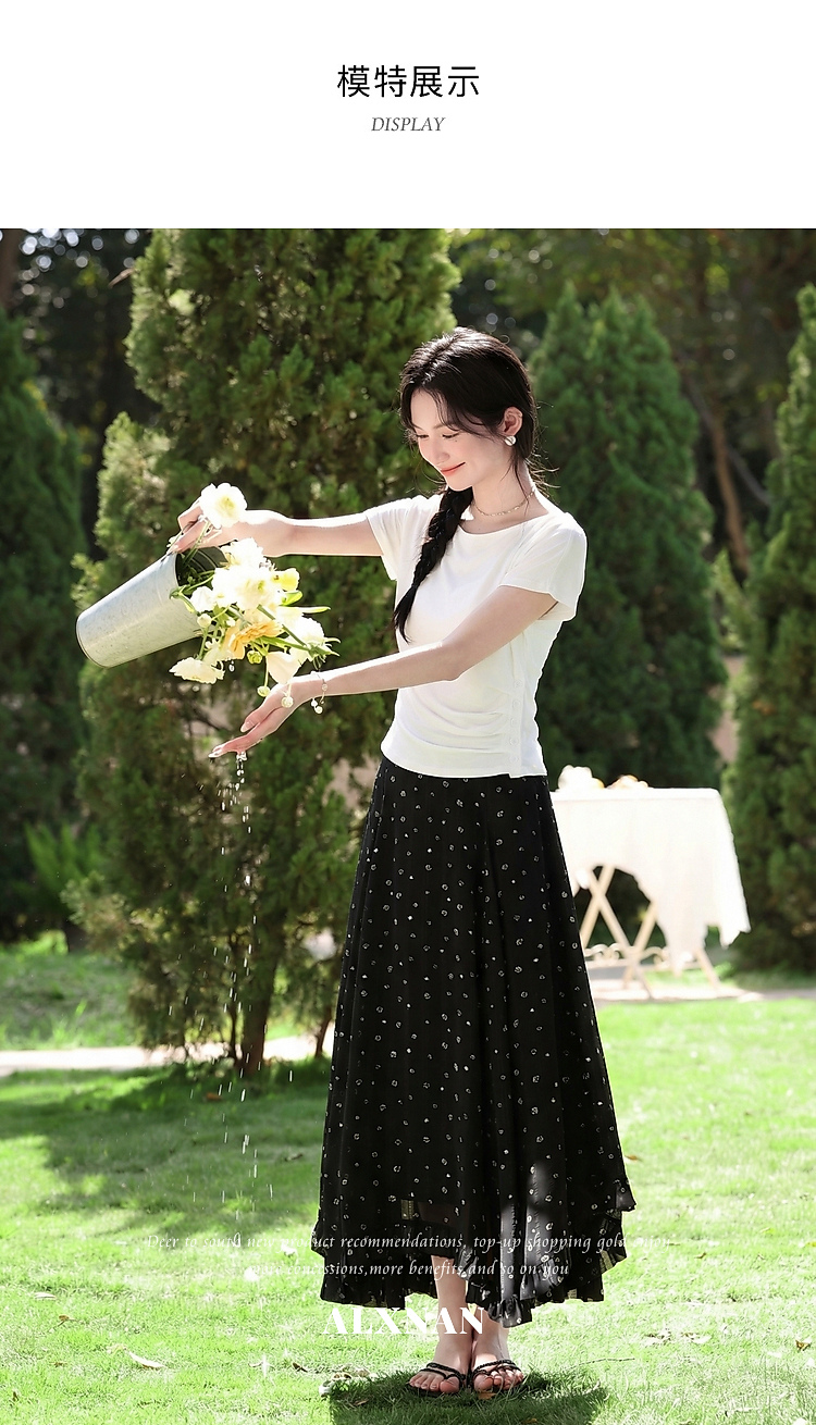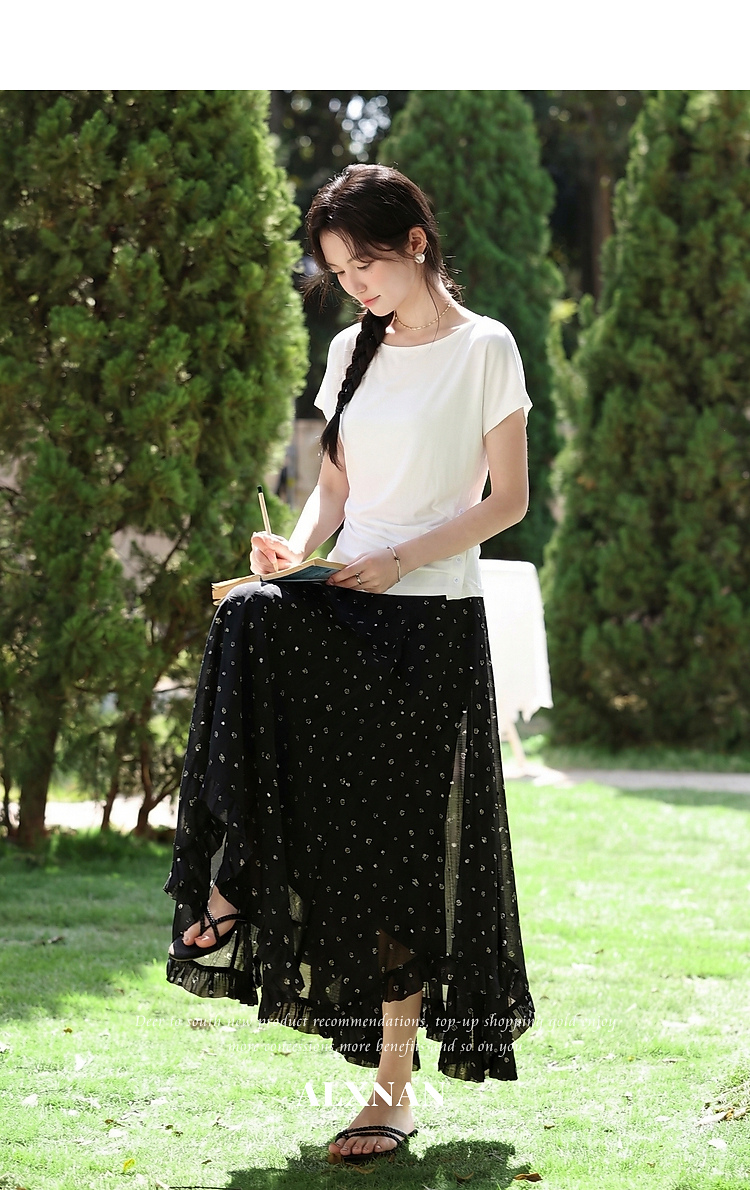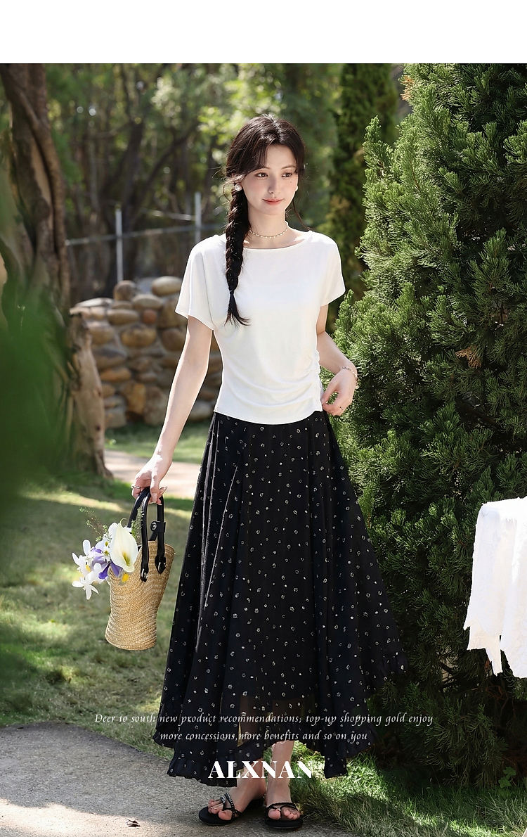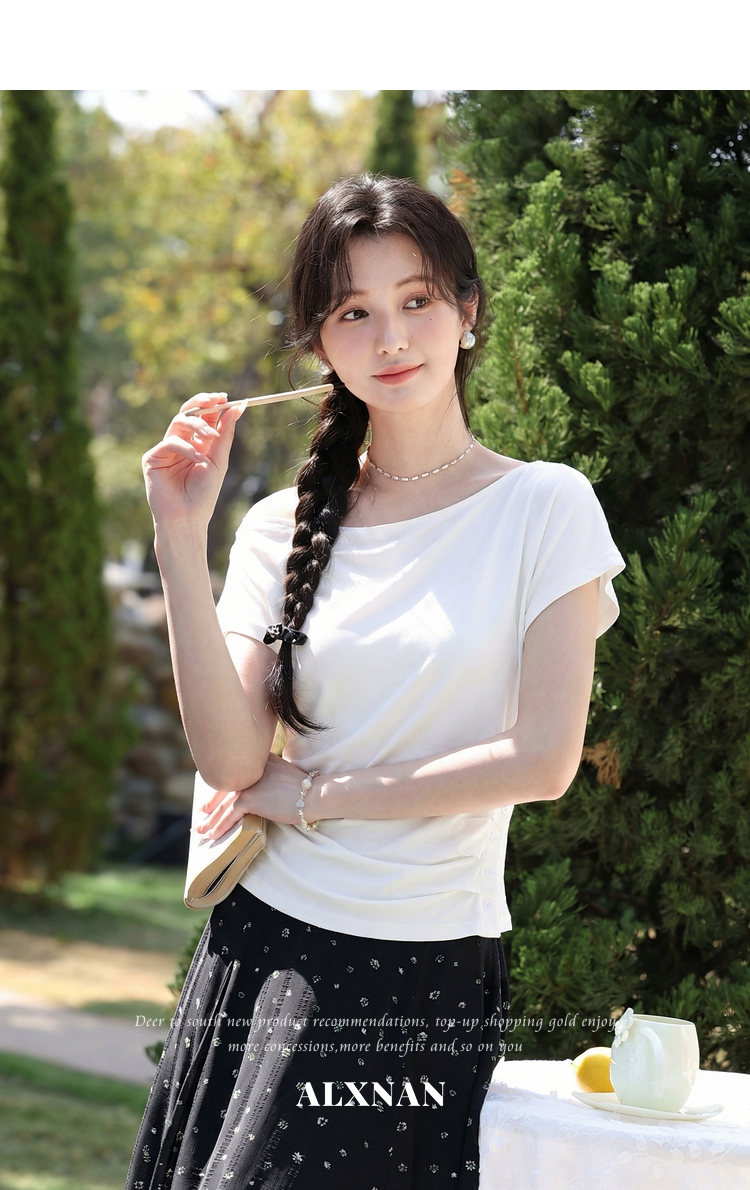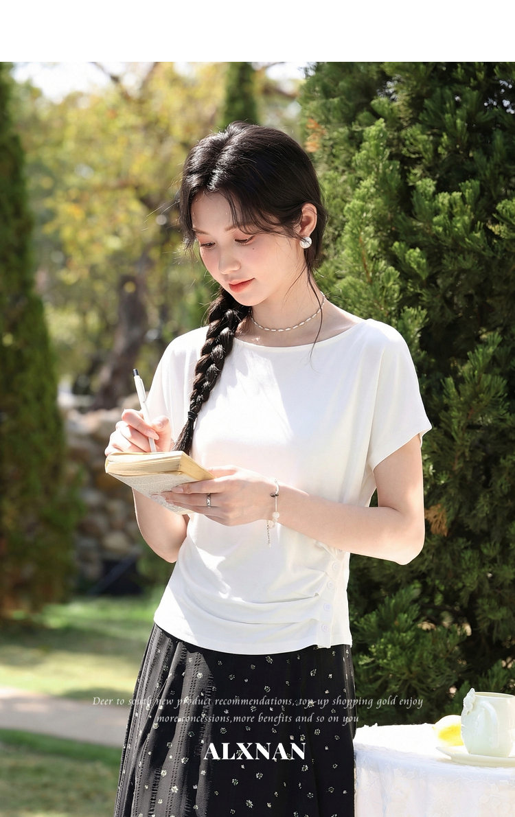 鹿向南「白栀轻语」简约白色圆领T恤女2026夏季新款收腰显瘦上衣