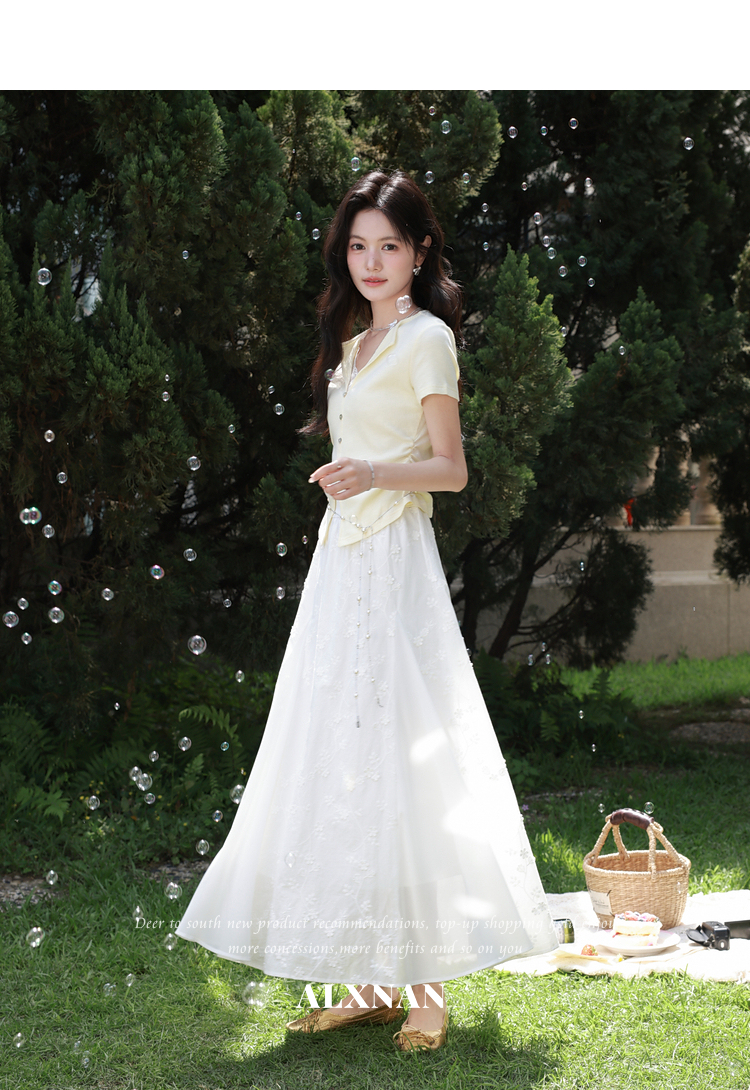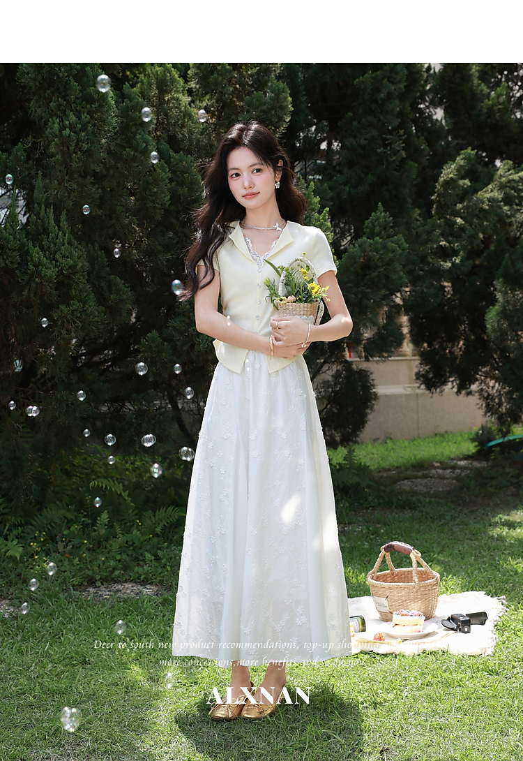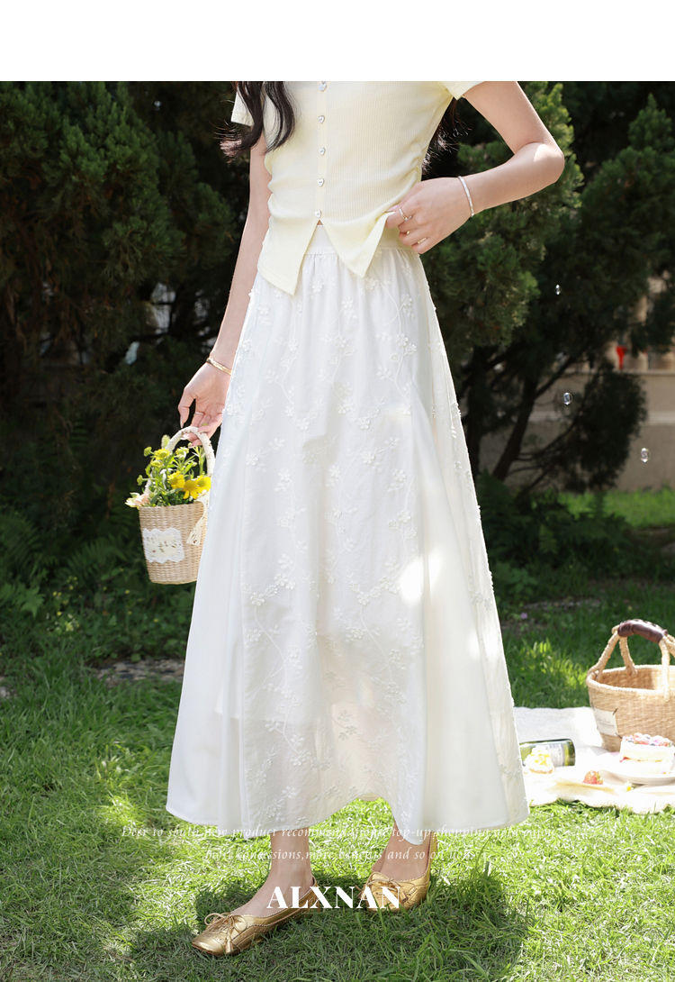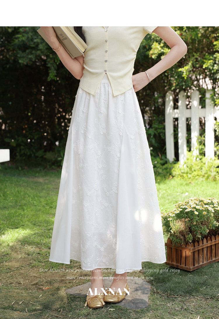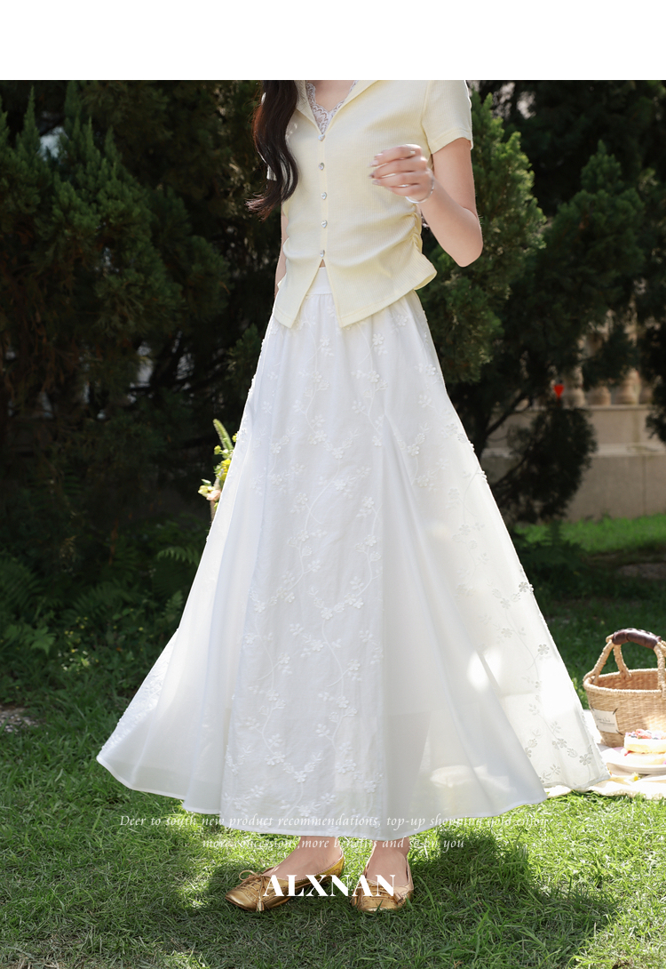 鹿向南「松露月光」气质白色半身裙女2026夏季高级感碎花A字长裙