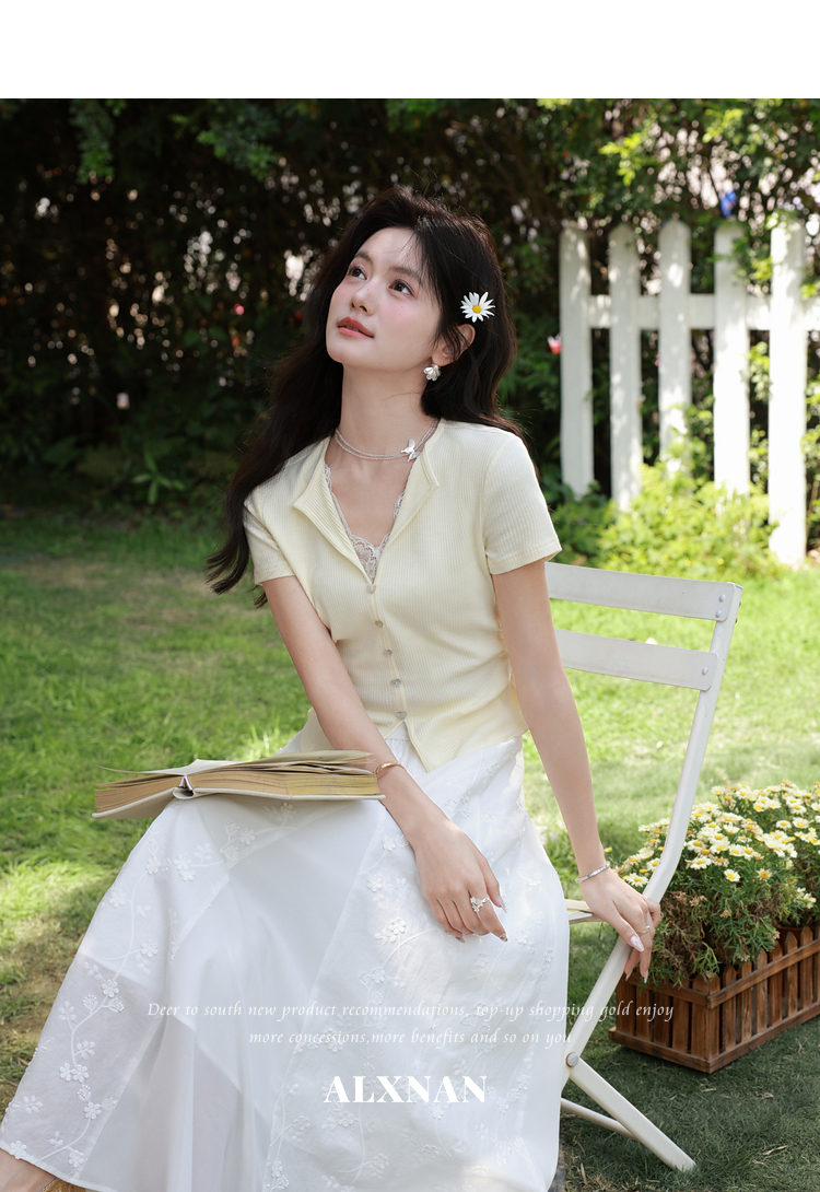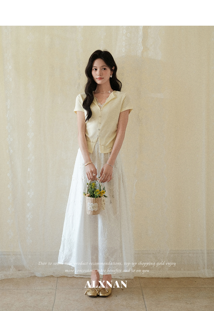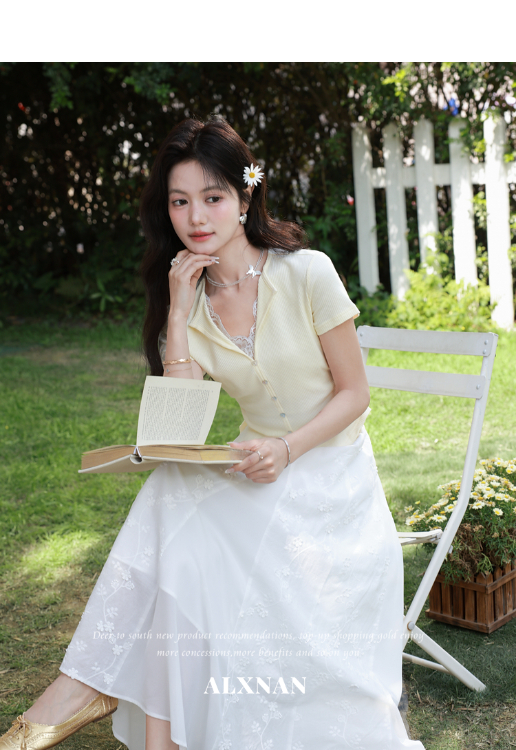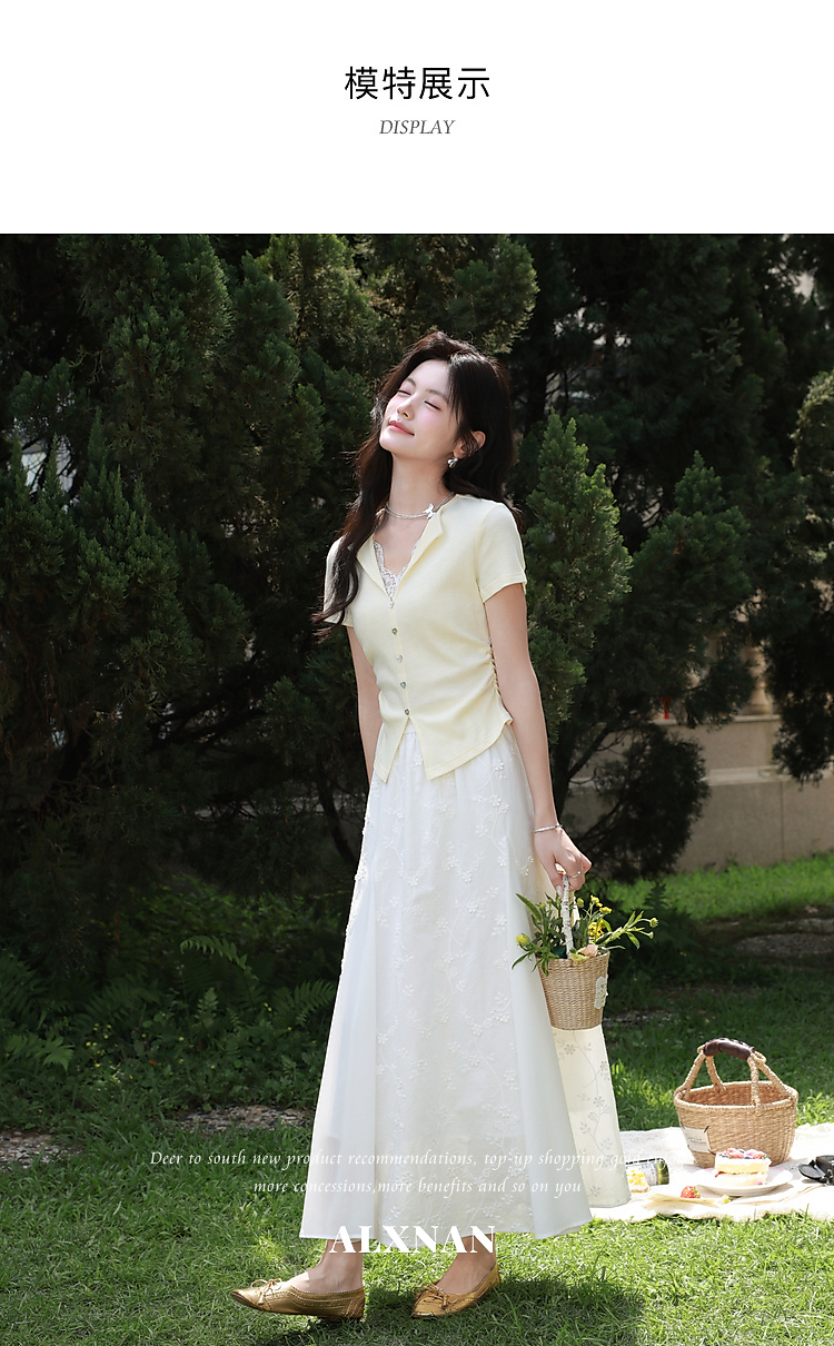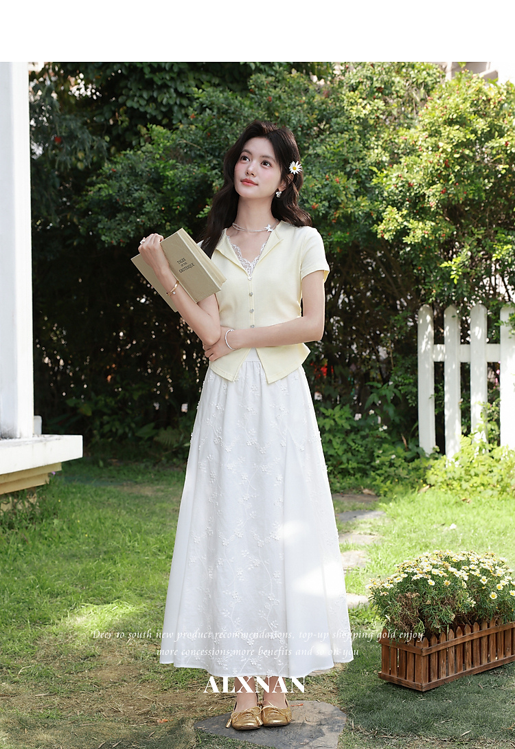 鹿向南「松露月光」气质白色半身裙女2026夏季高级感碎花A字长裙