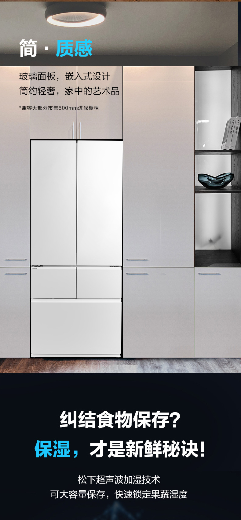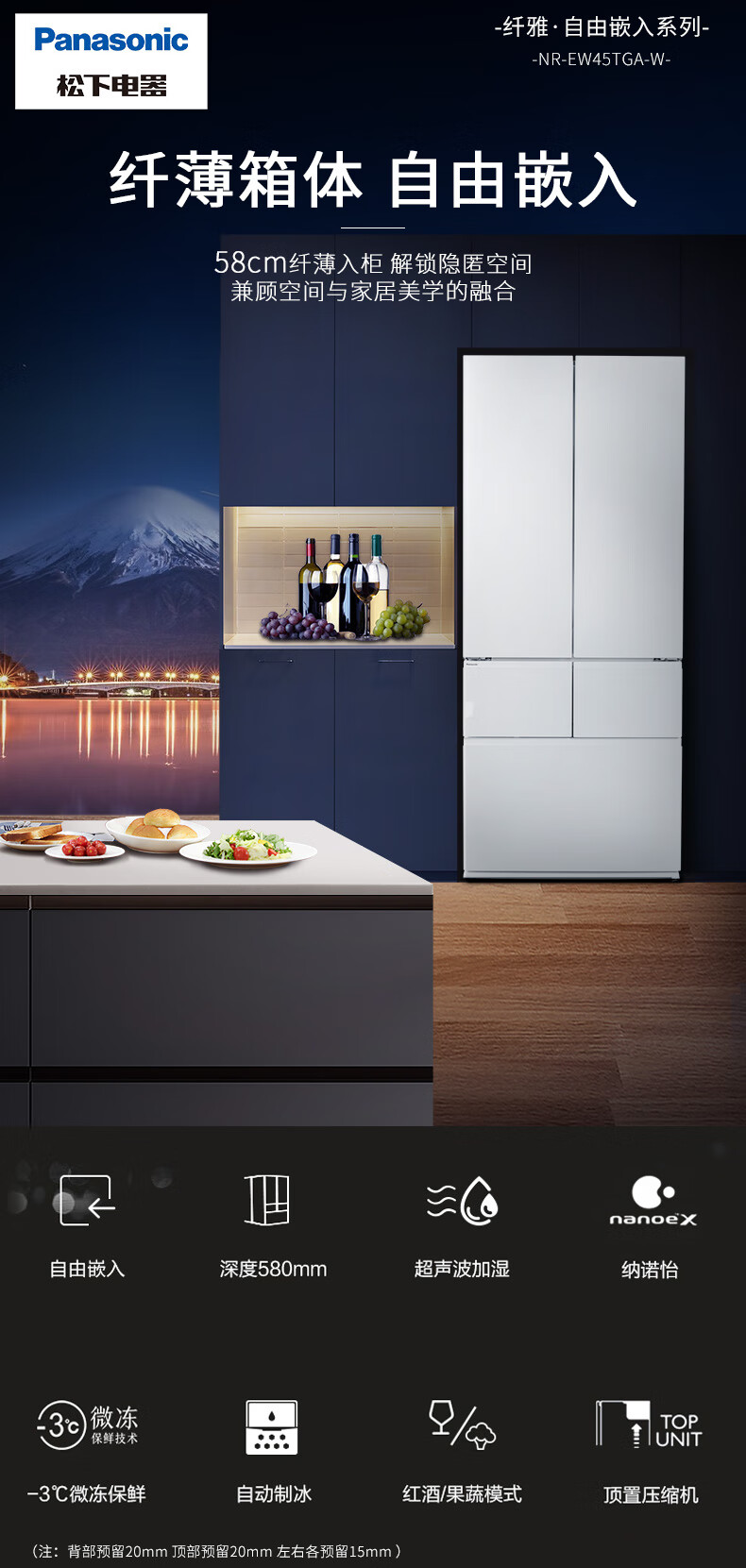 松下(Panasonic)453升超薄嵌入变频风冷多门冰箱 自动制冰网红大白NR-EW45TGA-W
