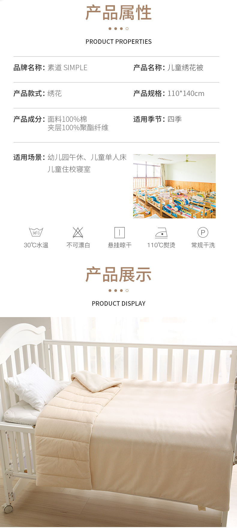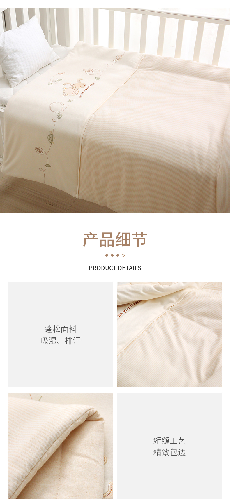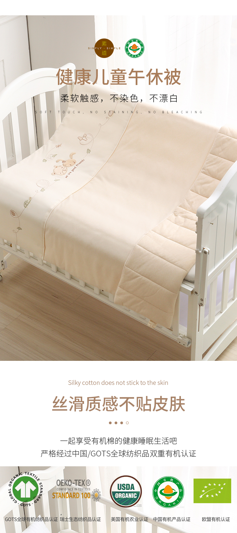 素道有机彩棉儿童纯棉被 棉质幼儿园四季午休被 儿童单人床被褥