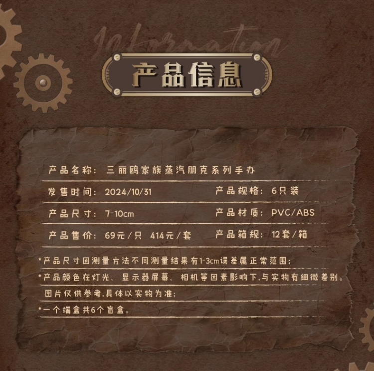 三丽鸥家族蒸汽朋克系列手办盲盒(单盒)