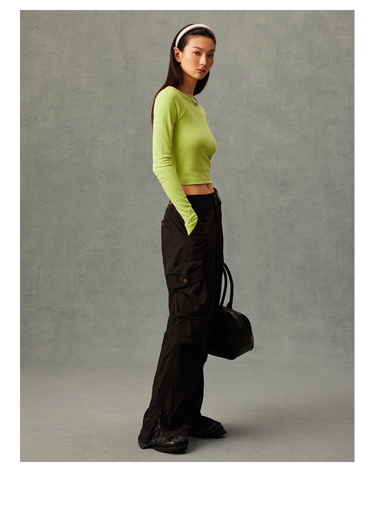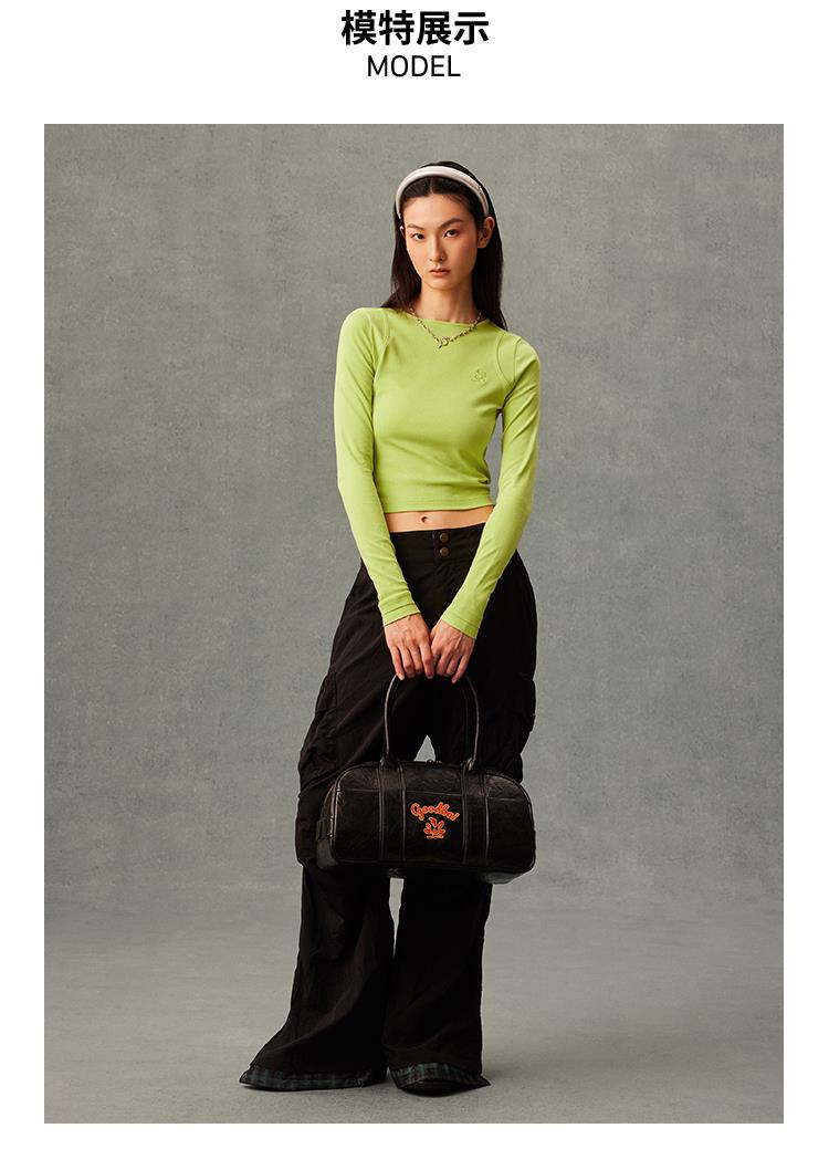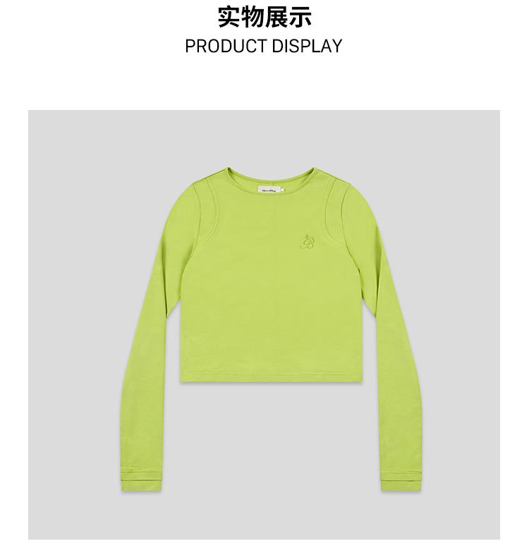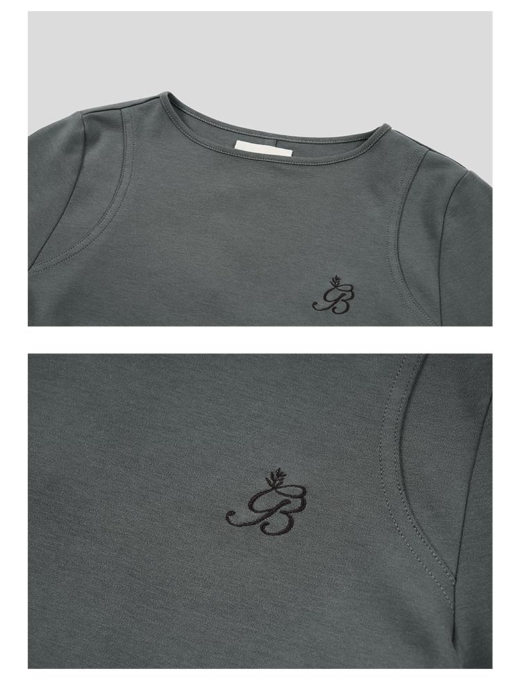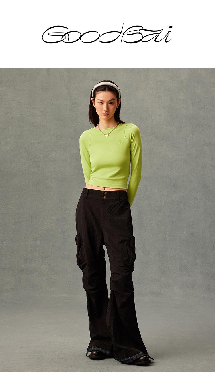 GOODBAI GB绣花插片圆领紧身长袖内搭T恤