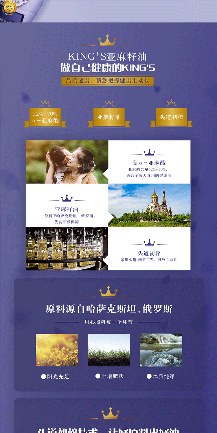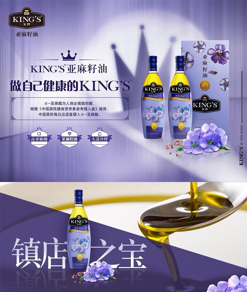 金龙鱼KING'S亚麻籽油750ML×2礼盒
