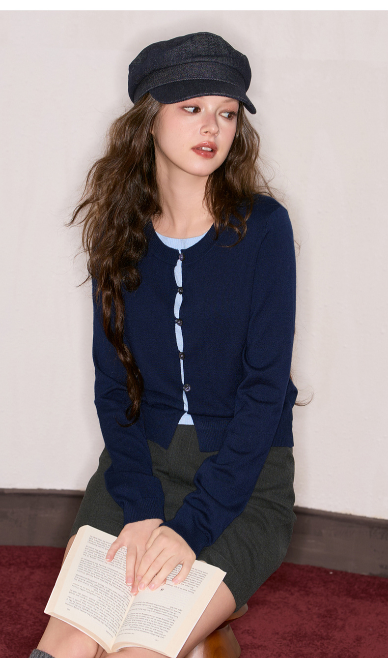 三彩独醒2025秋季新款假两件针织衫毛衫套头小个子长袖圆领F