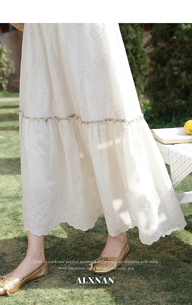 鹿向南「绣影流光」米杏色刺绣半身裙夏季新款气质设计感A字裙女