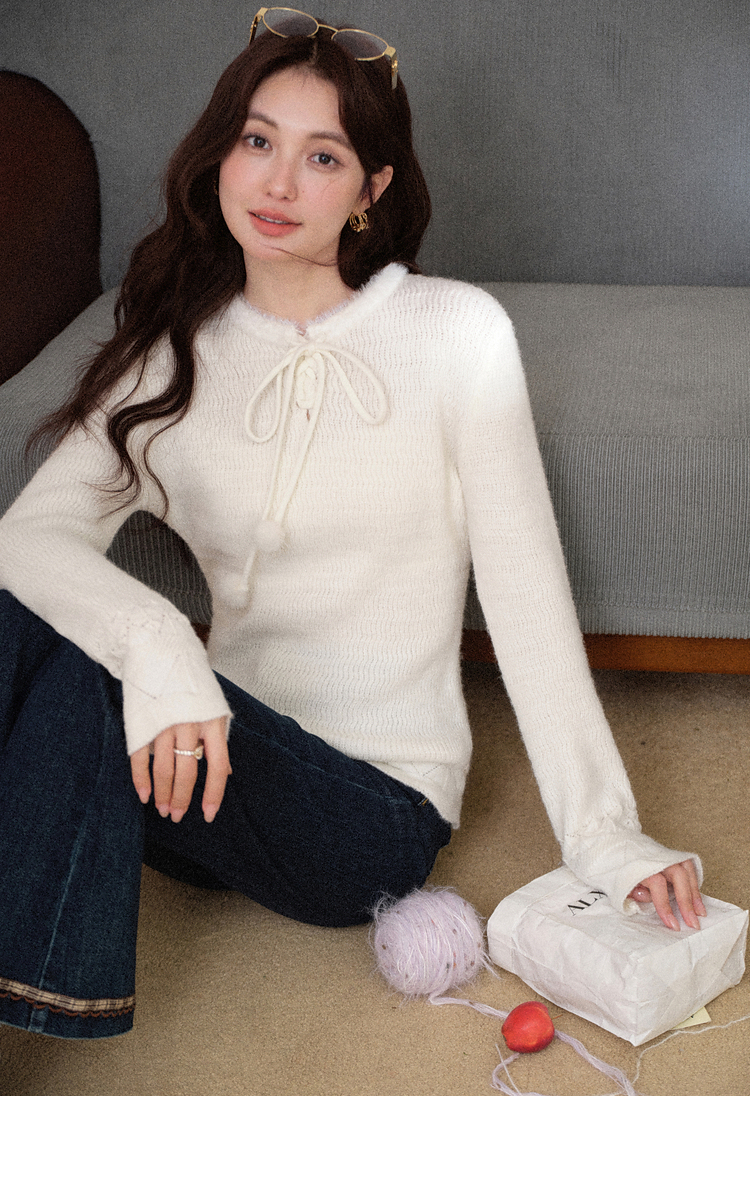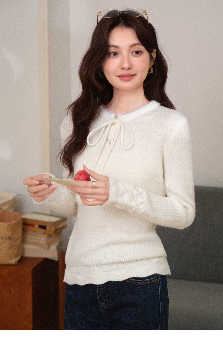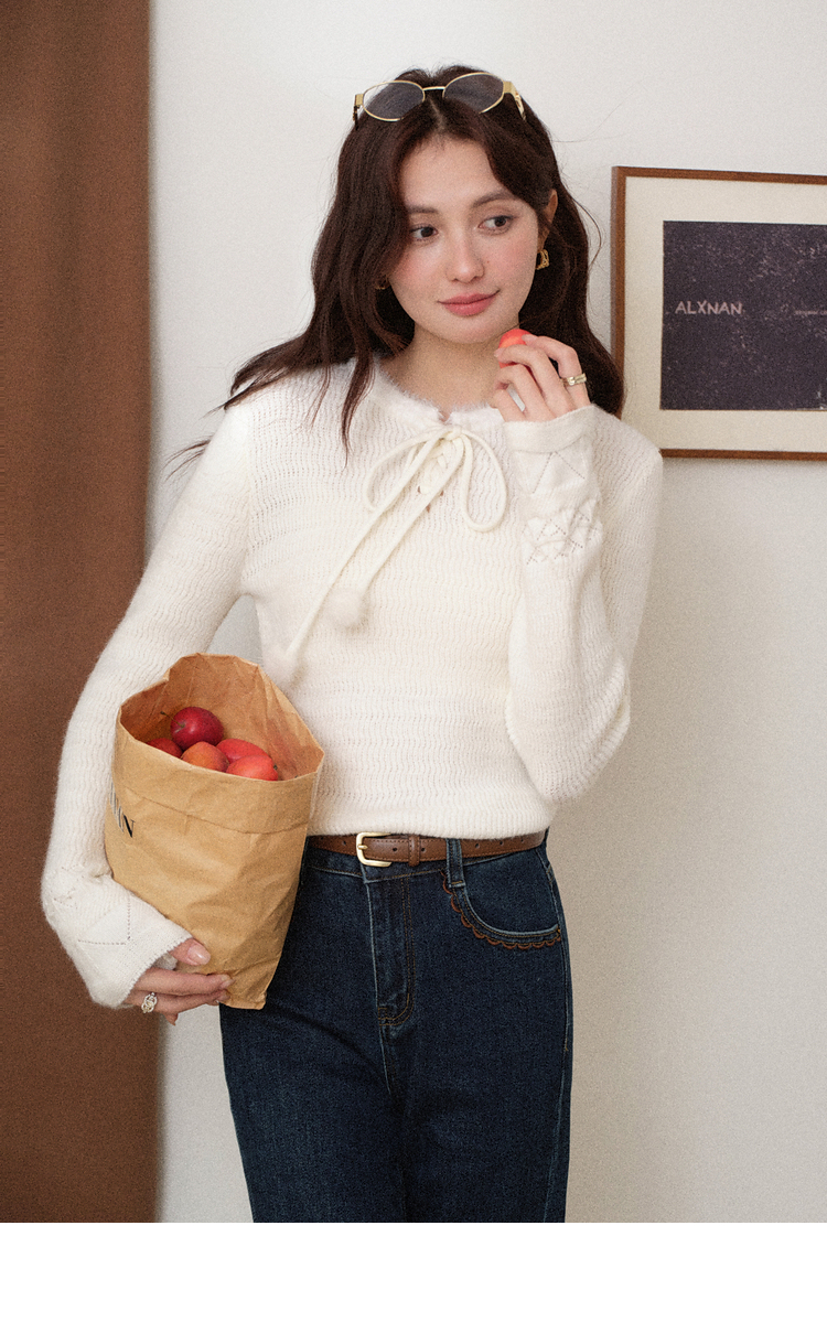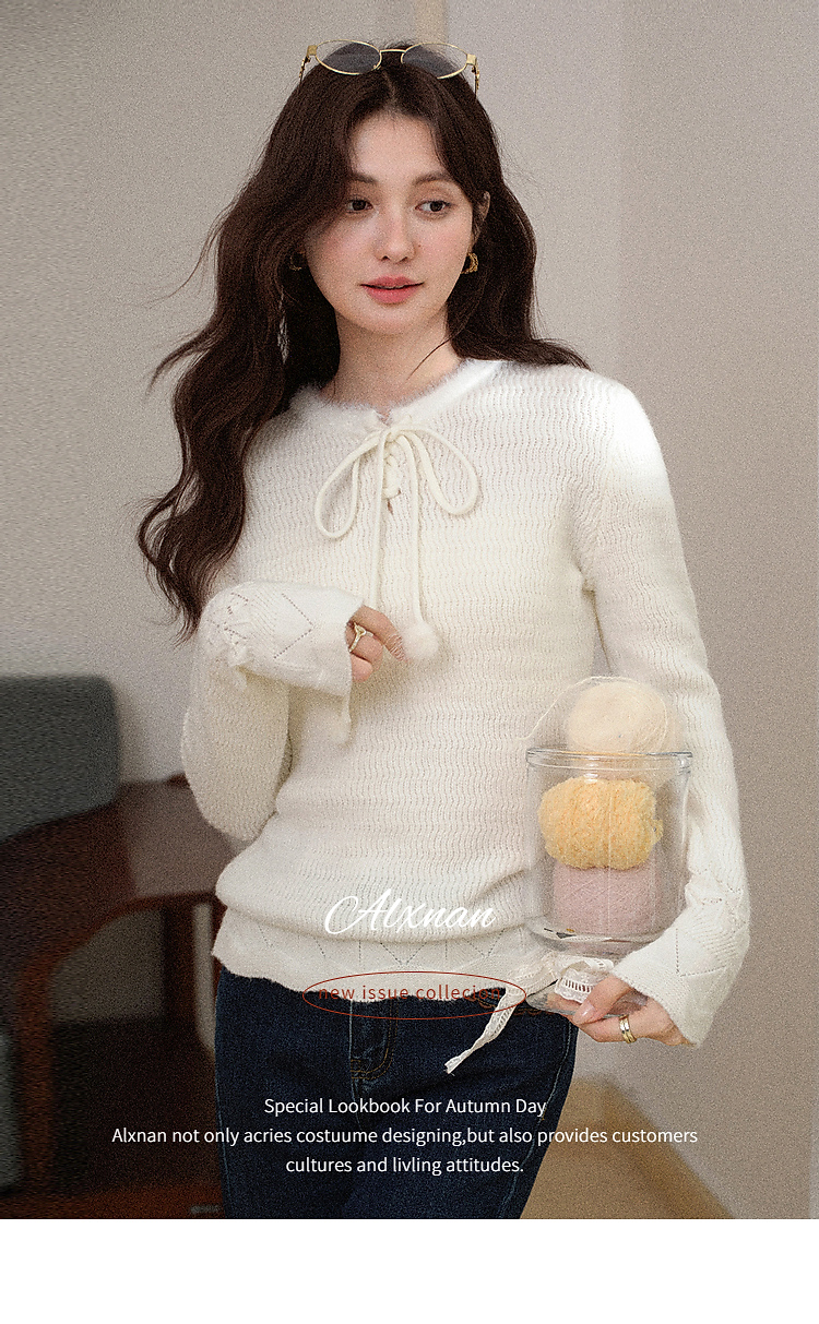 鹿向南「编织温柔」杏色长袖毛针织衫秋冬季时尚百搭氛围感上衣女