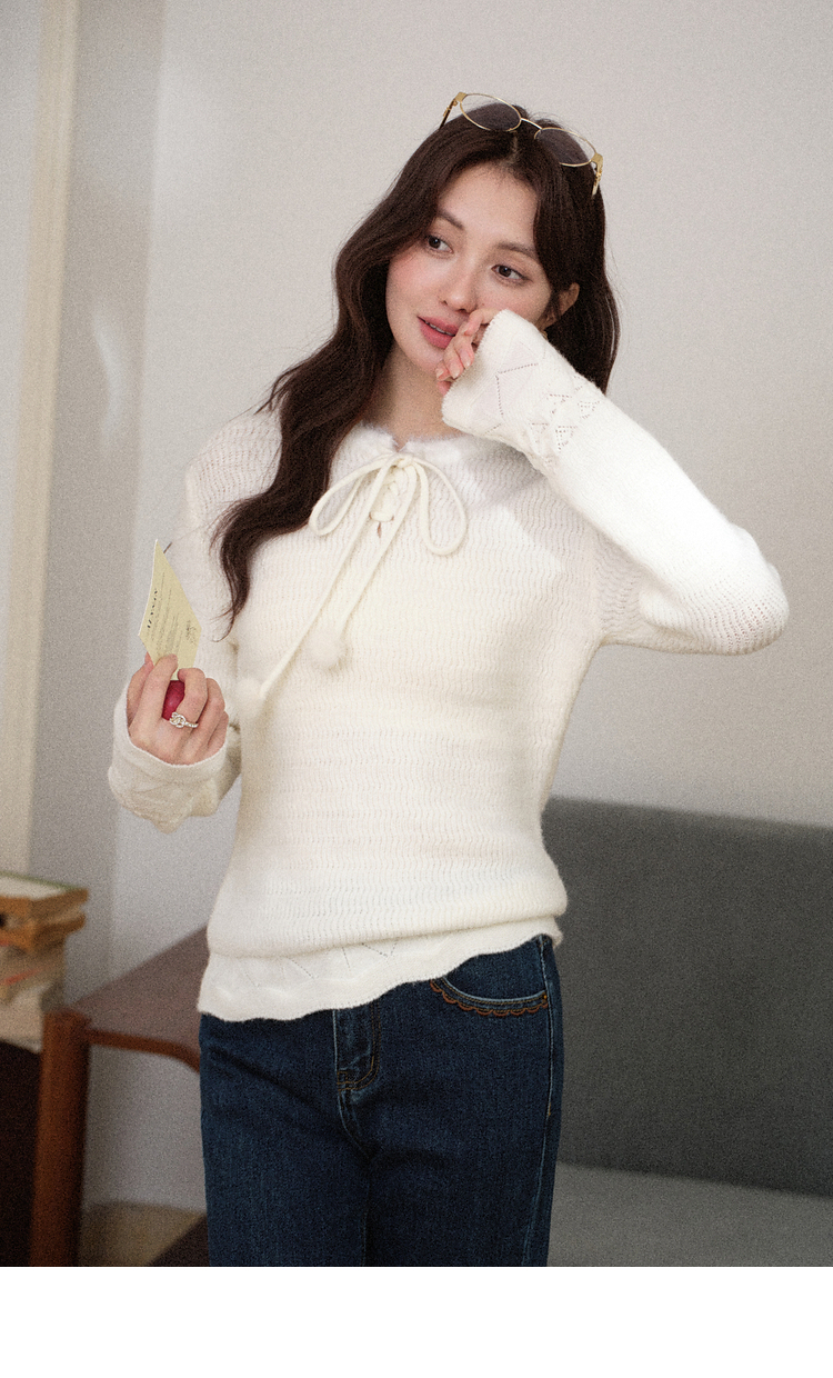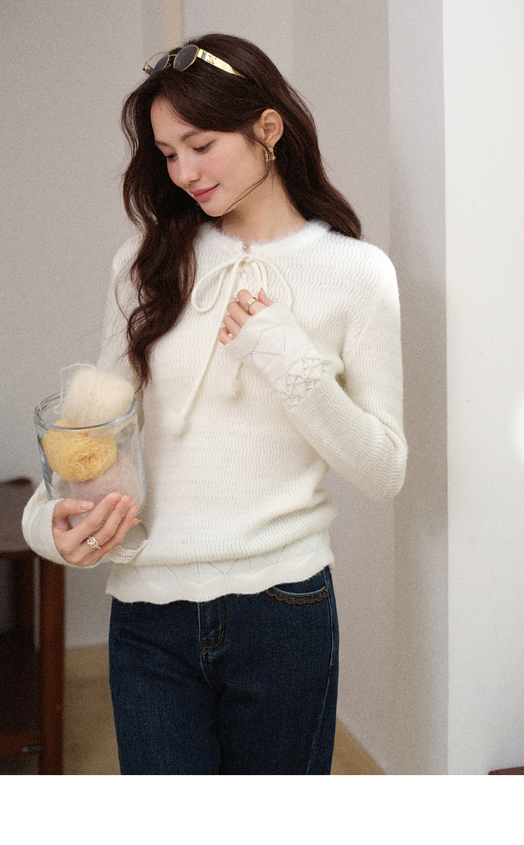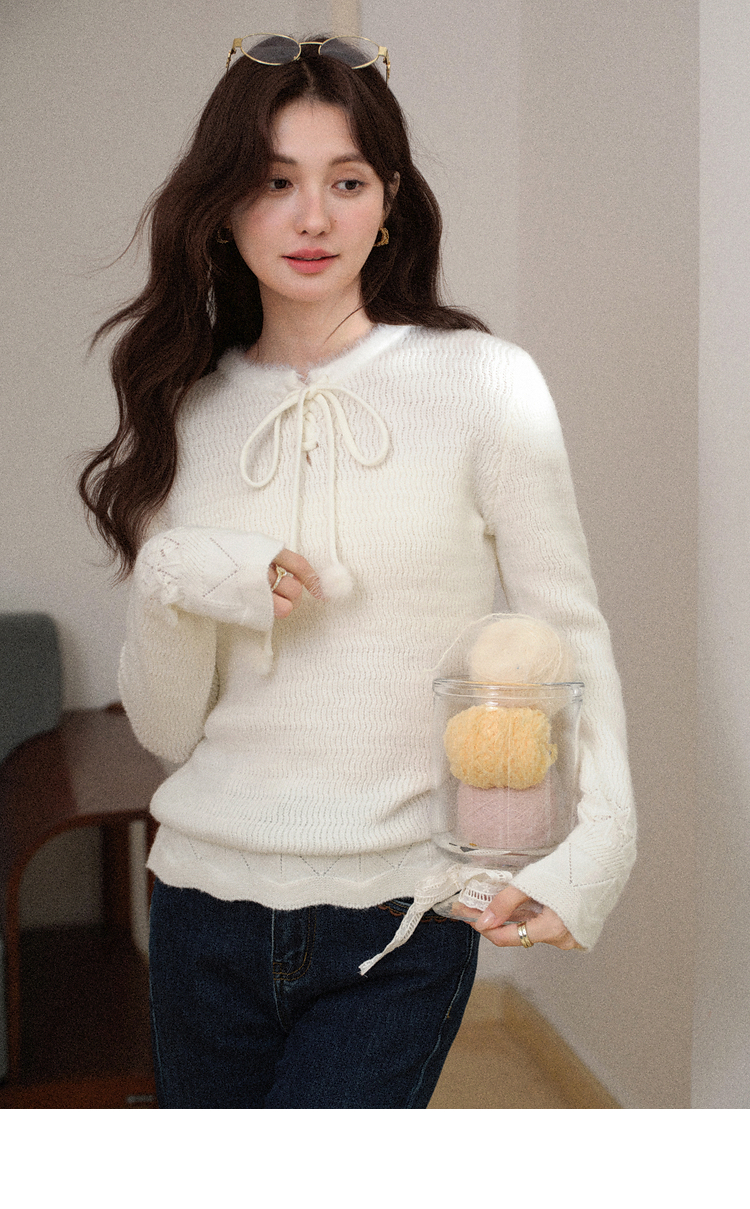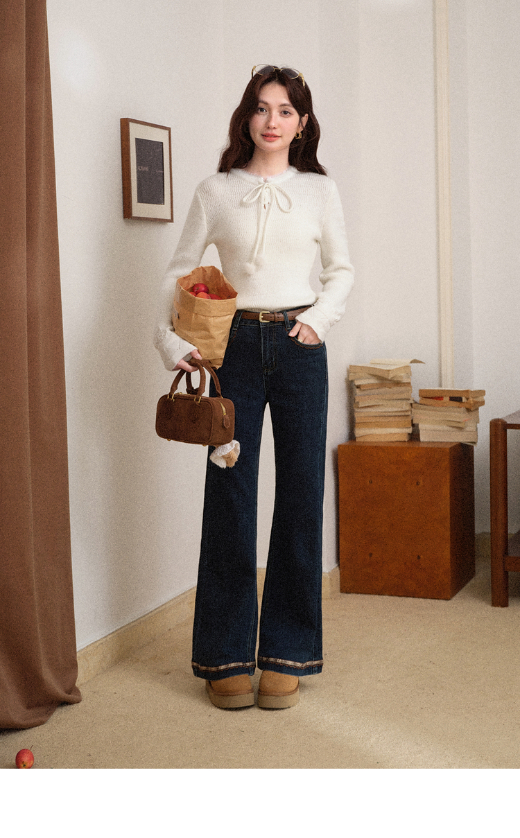鹿向南「编织温柔」杏色长袖毛针织衫秋冬季时尚百搭氛围感上衣女