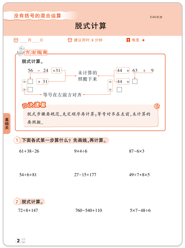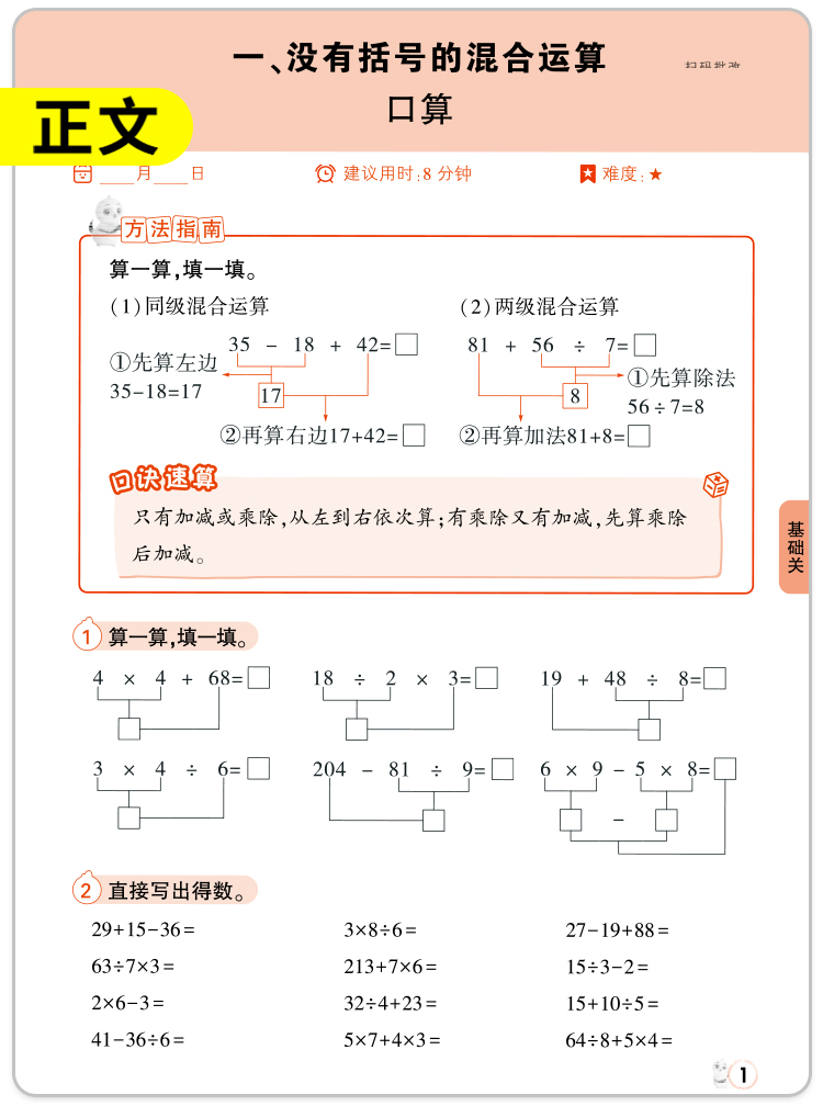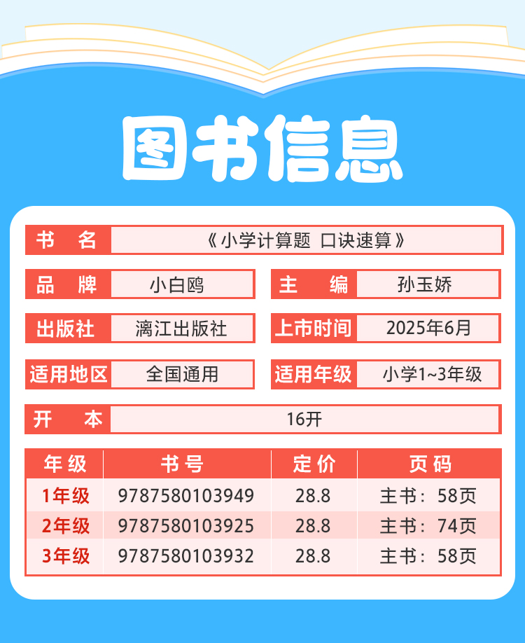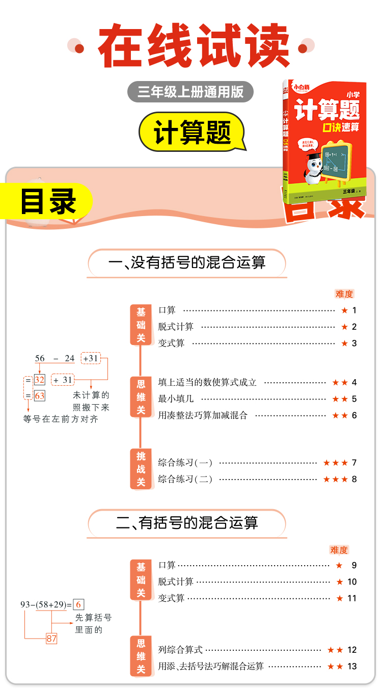 2026万唯小白鸥小学数学计算题专项训练一二三年级速算口诀大全天天练巧算技巧强化练习