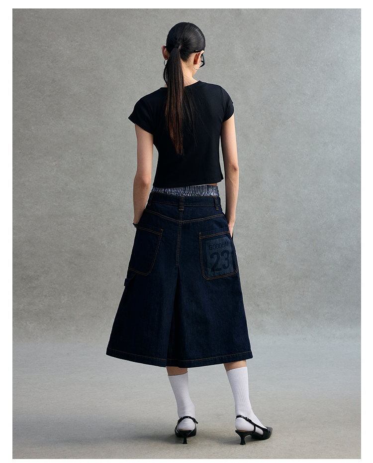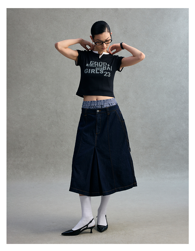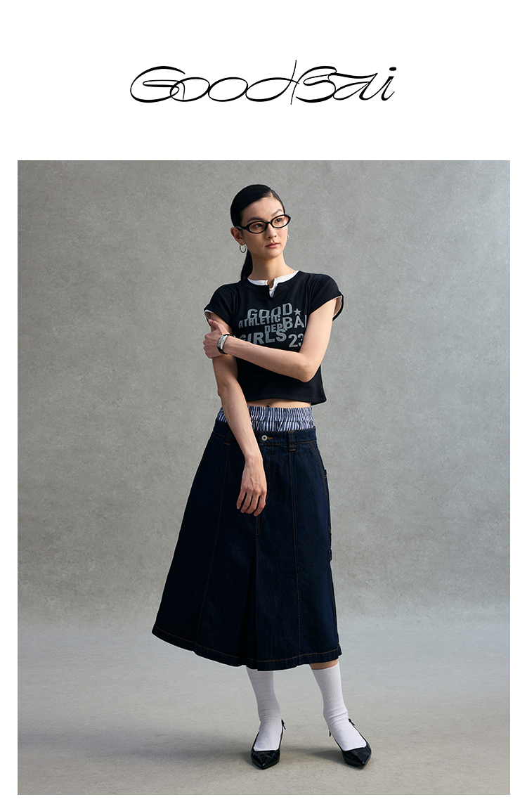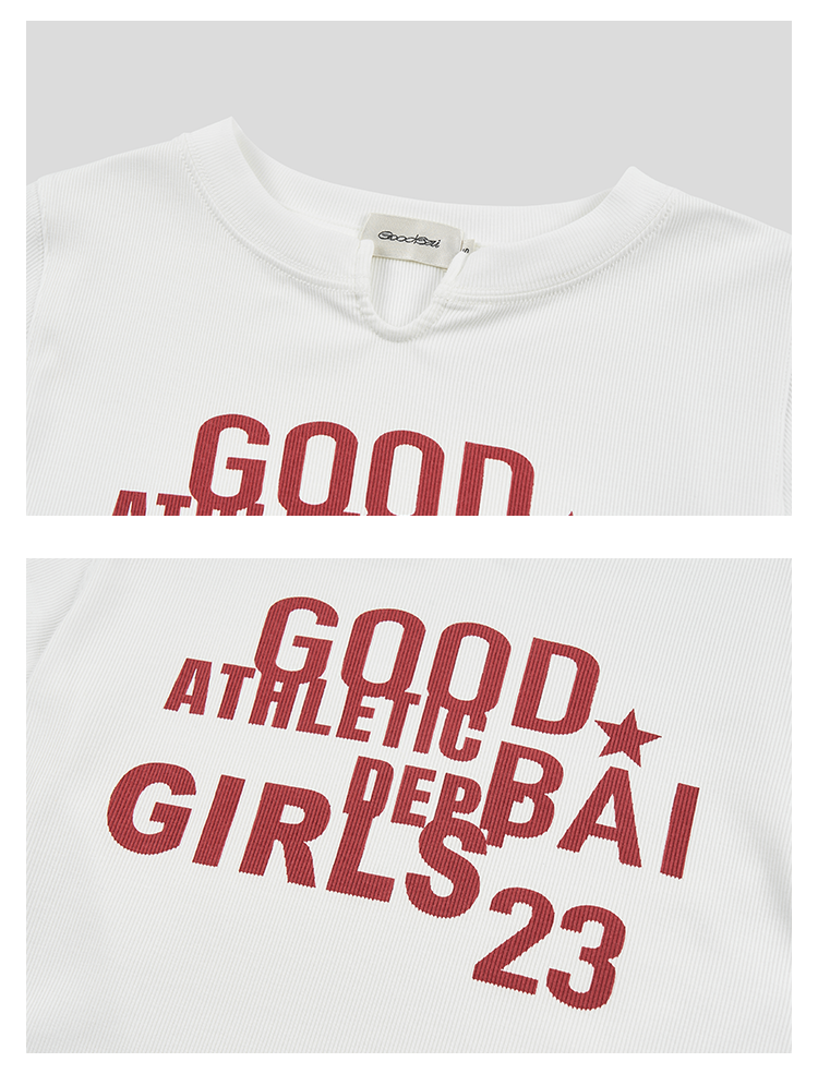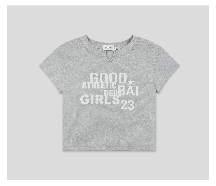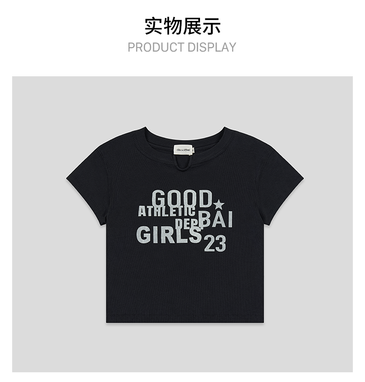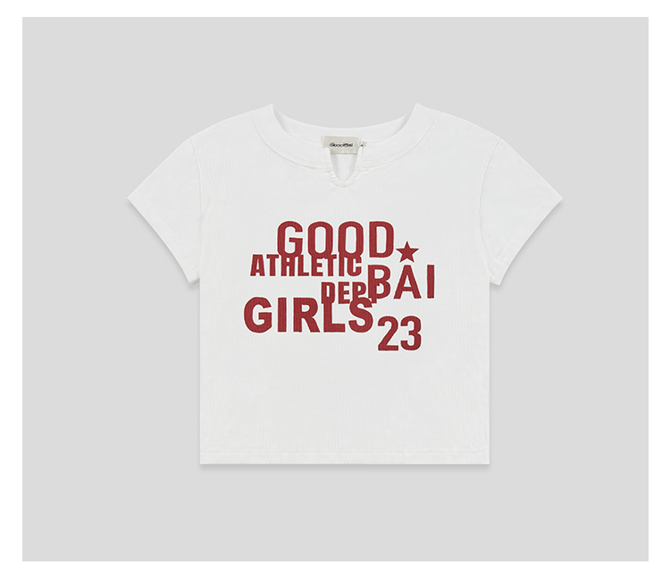 GOODBAI 23 GIRLS athletic撞色印花小V领紧身短款飞袖T恤