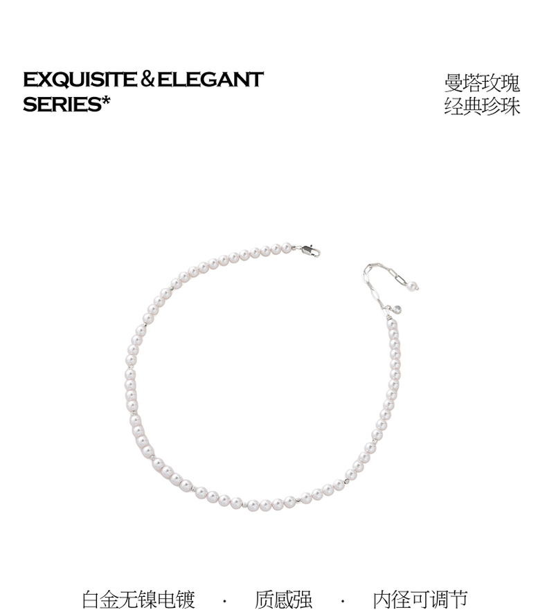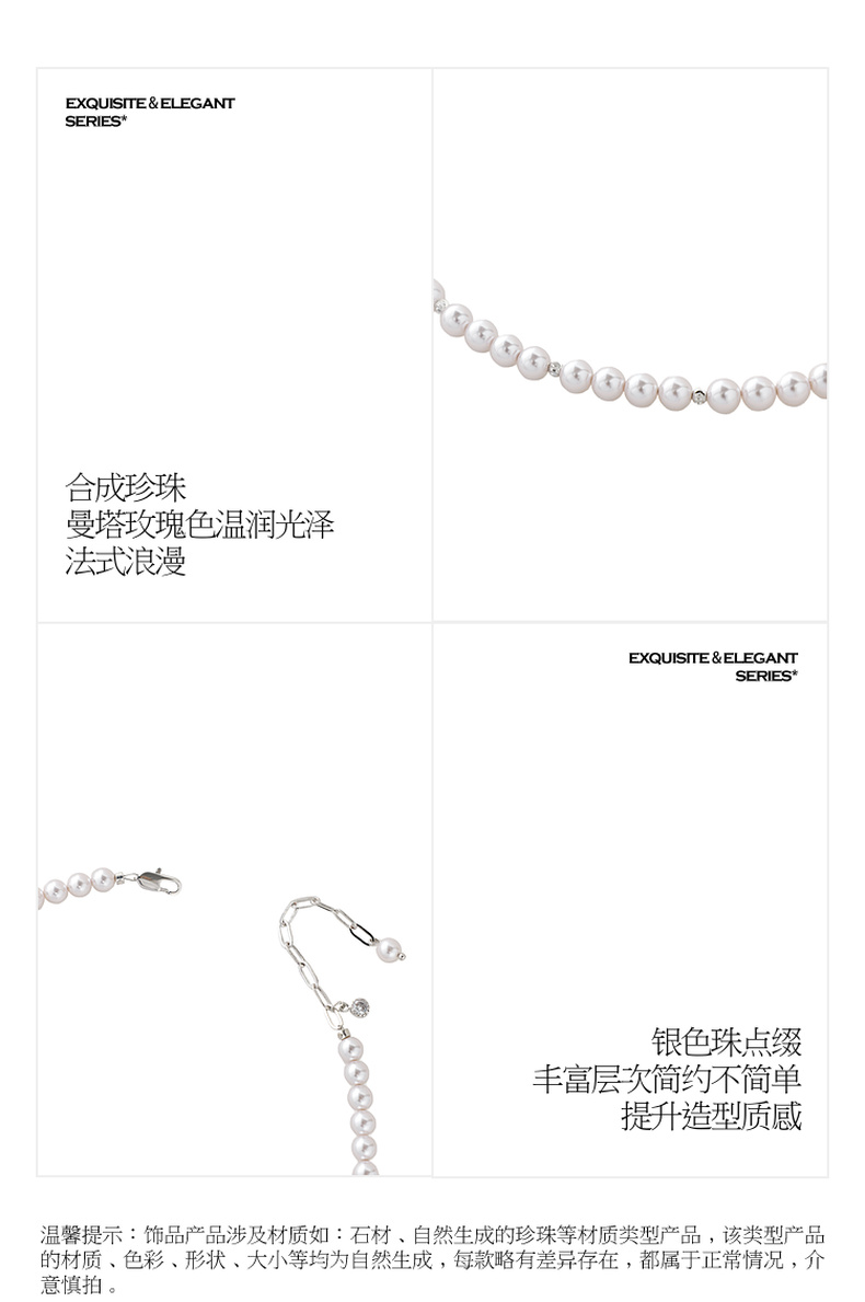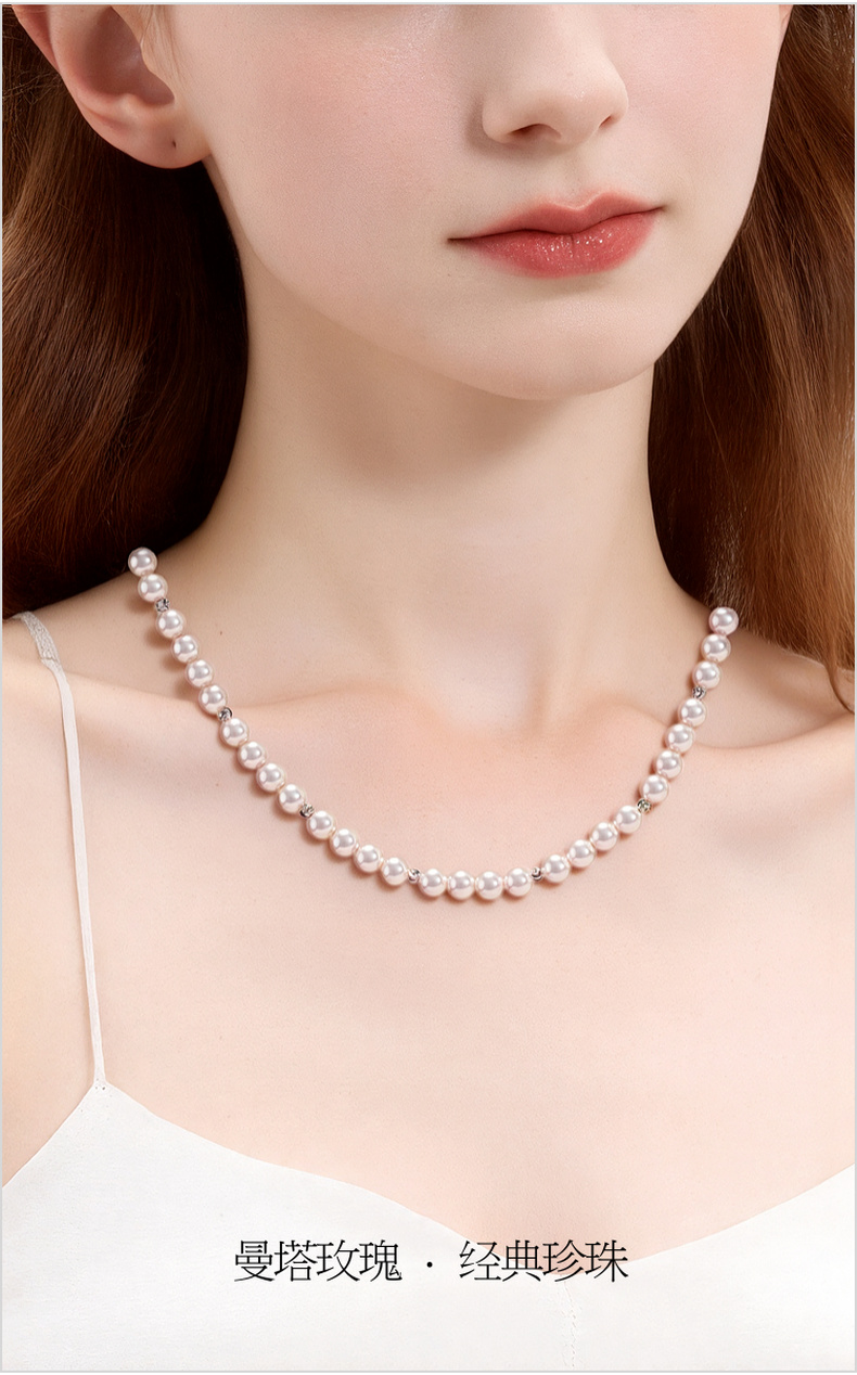 三彩2026新款曼塔玫瑰浅粉色珍珠项链法式优雅浪漫极简锁骨链女