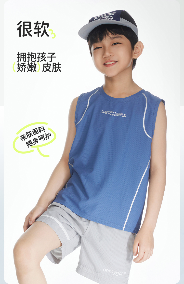 【预售6.25日发货】onmygame儿童背心吸湿速干男女童凉感无袖T恤2024新款夏运动上衣
