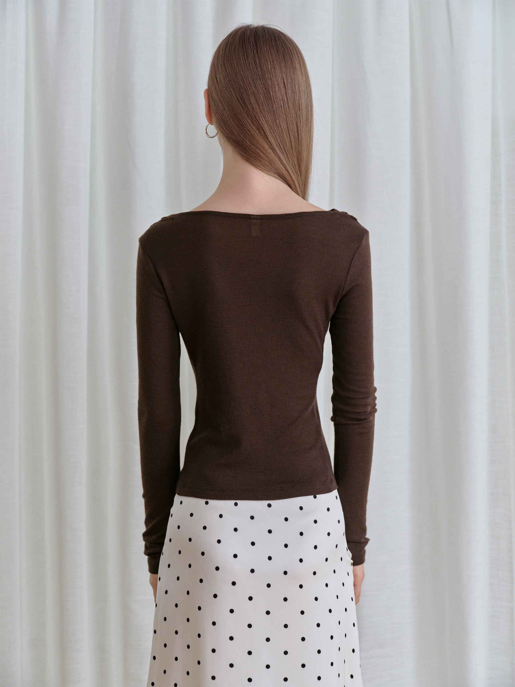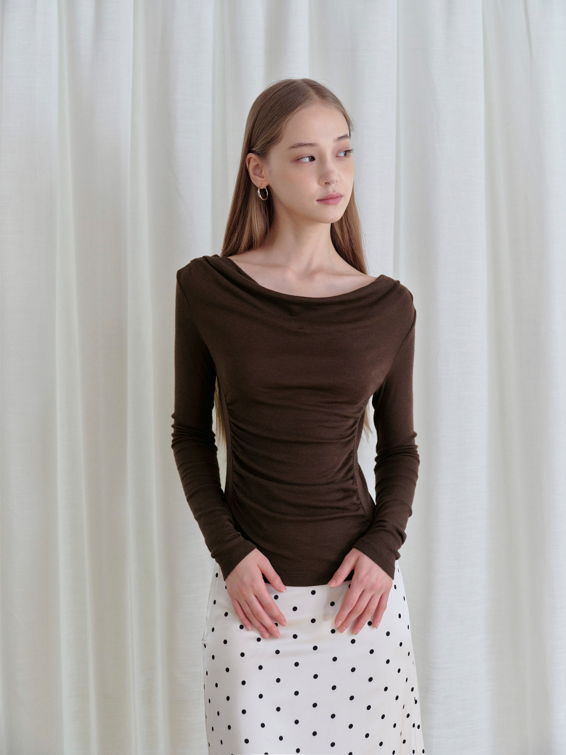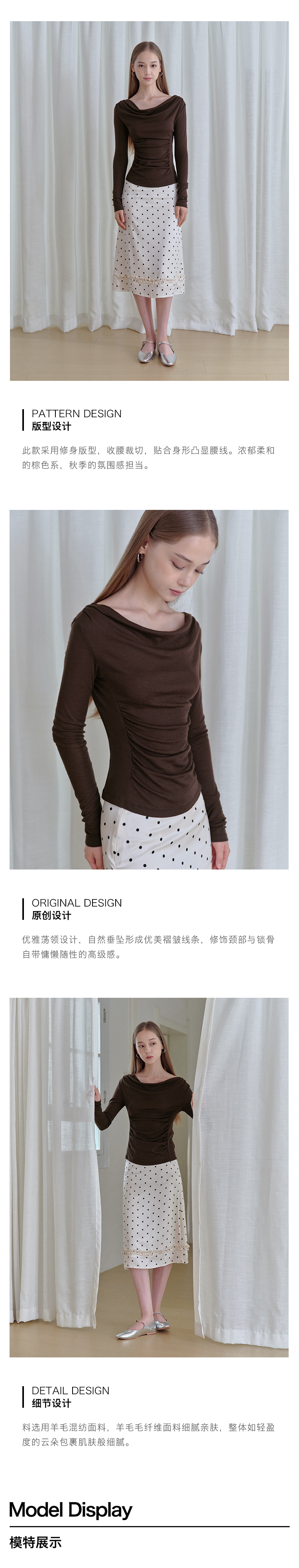 ForPoem 现货 25/FW原创设计羊毛荡领收腰褶皱打底针织上衣