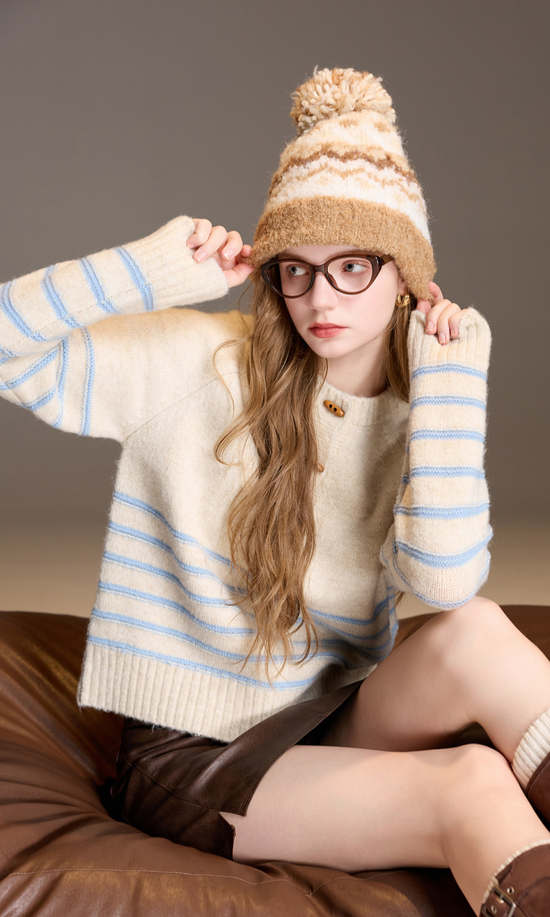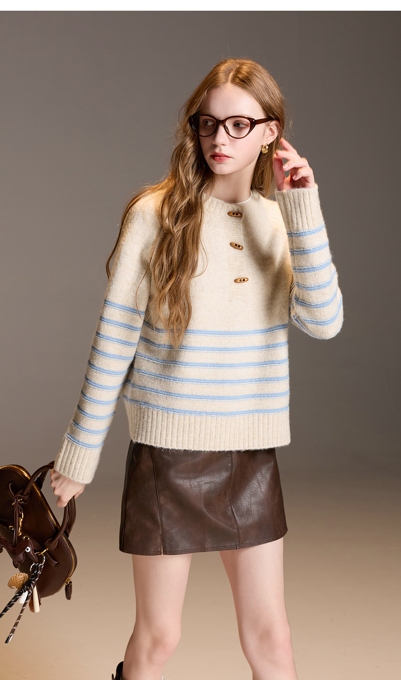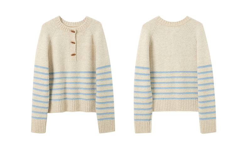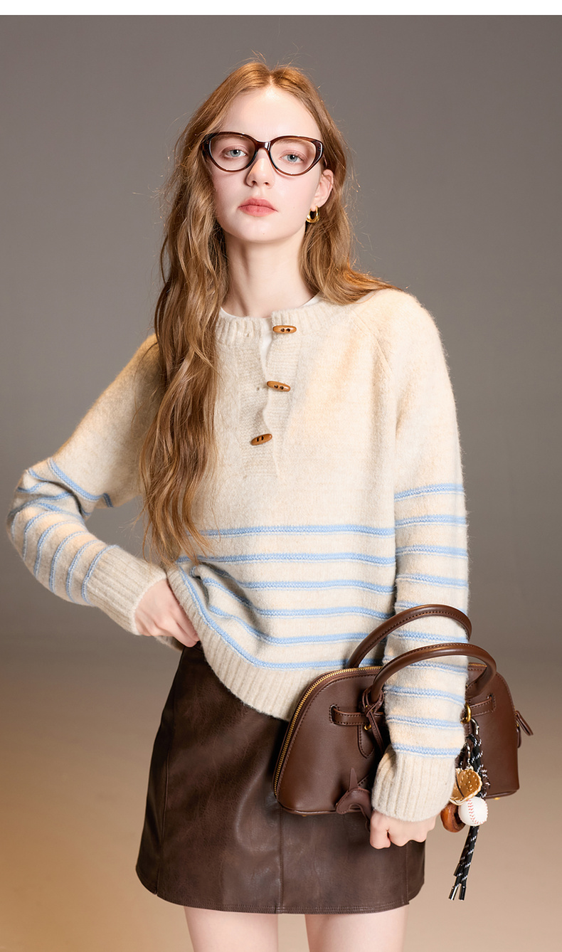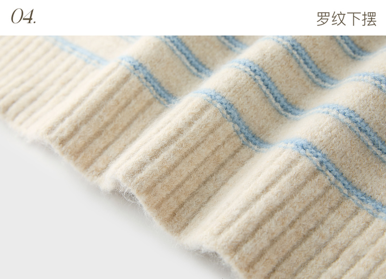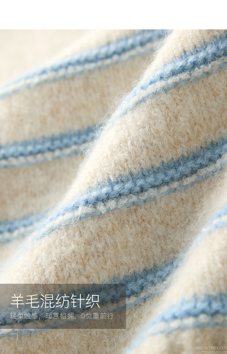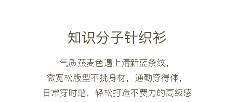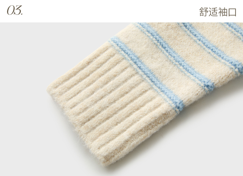 三彩2025冬季新款圆领条纹针织衫宽松长袖简约套头衫上衣M