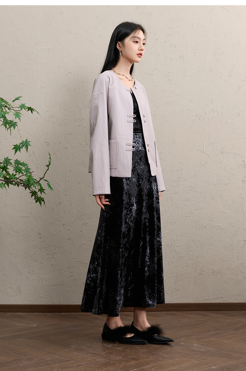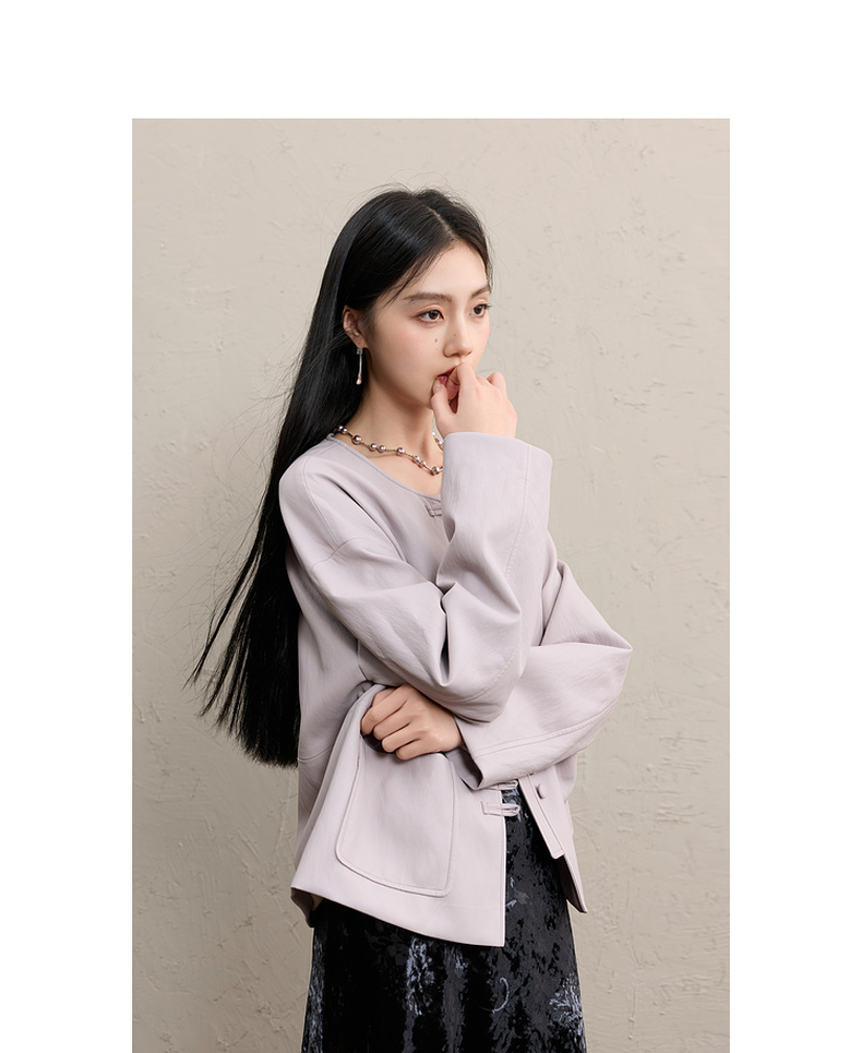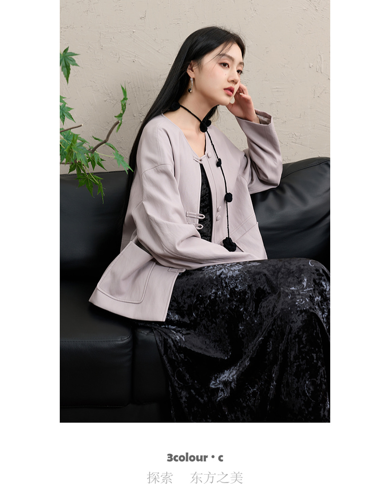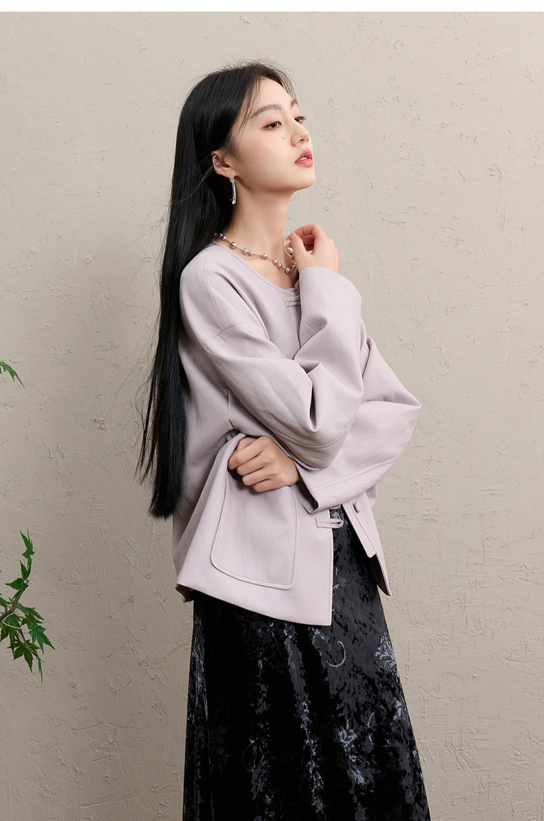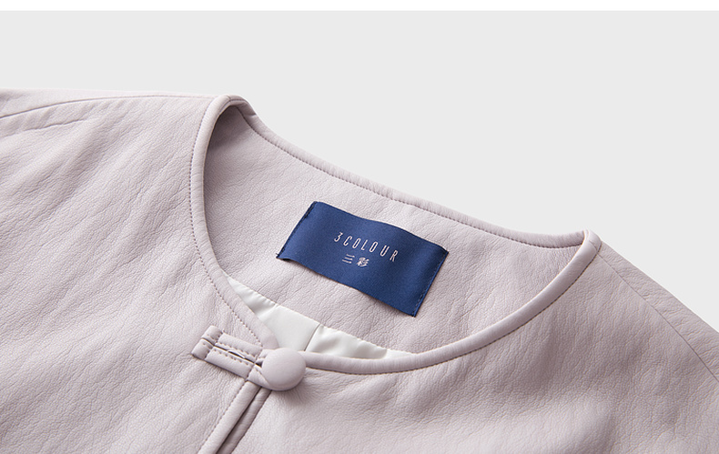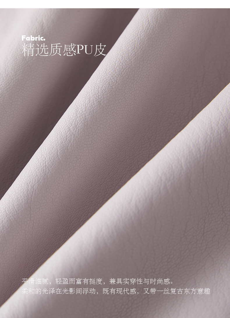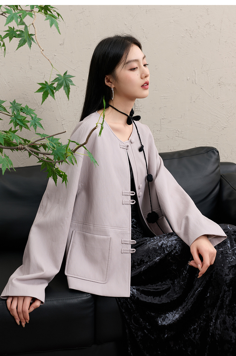 三彩【长乐未央】2025冬季新款PU仿皮外套宽松简约上衣单排扣C