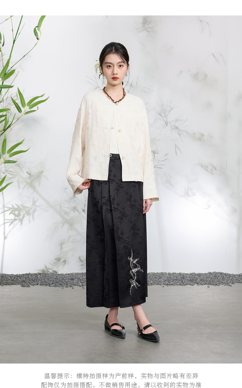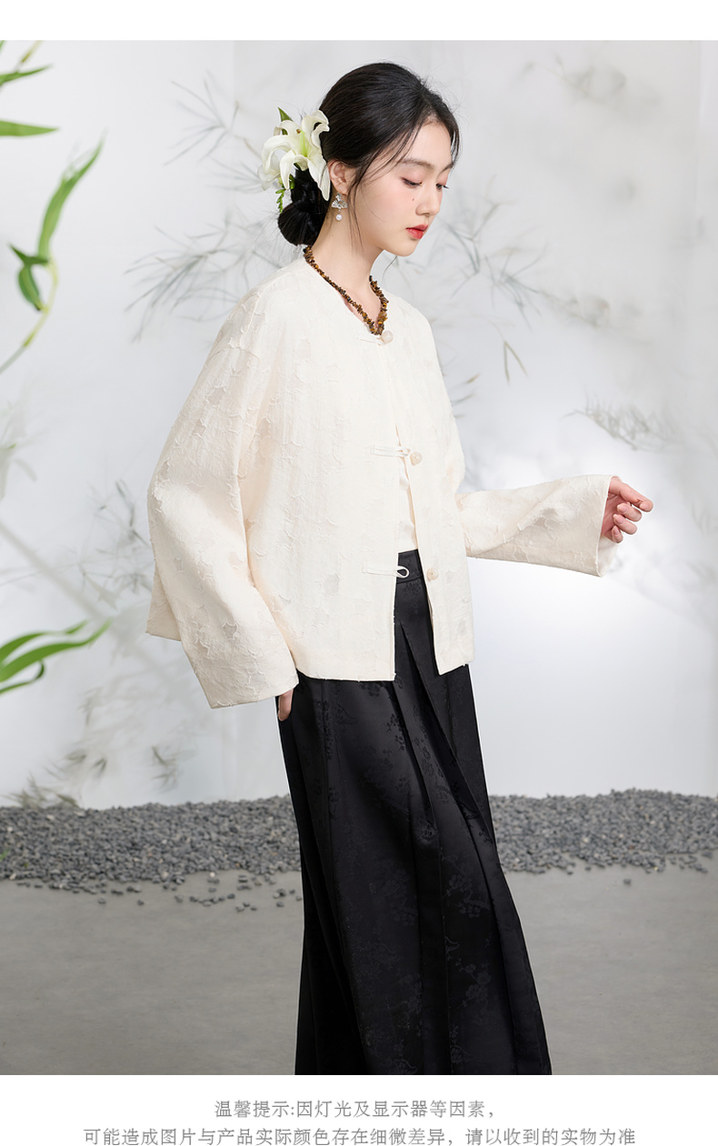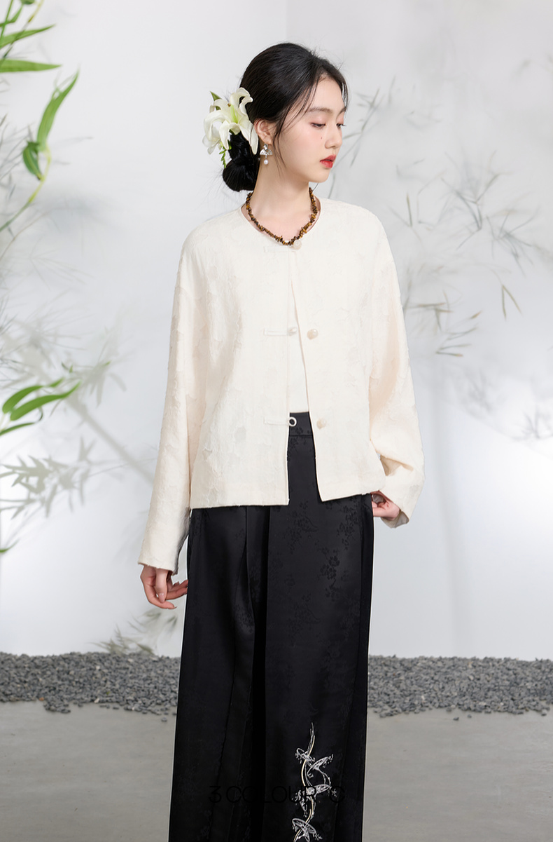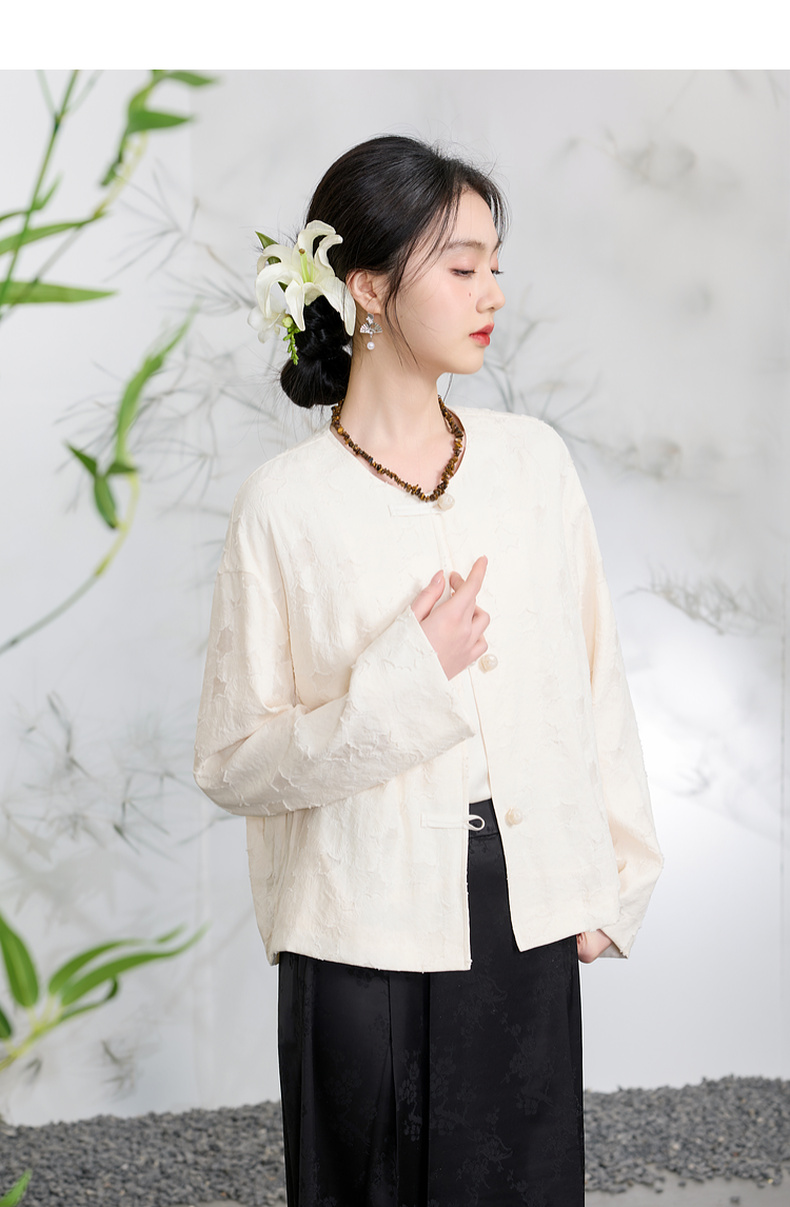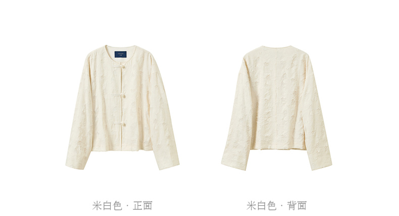 三彩【落花微雨】2026春季新款新中式提花外套圆领开衫宽松C