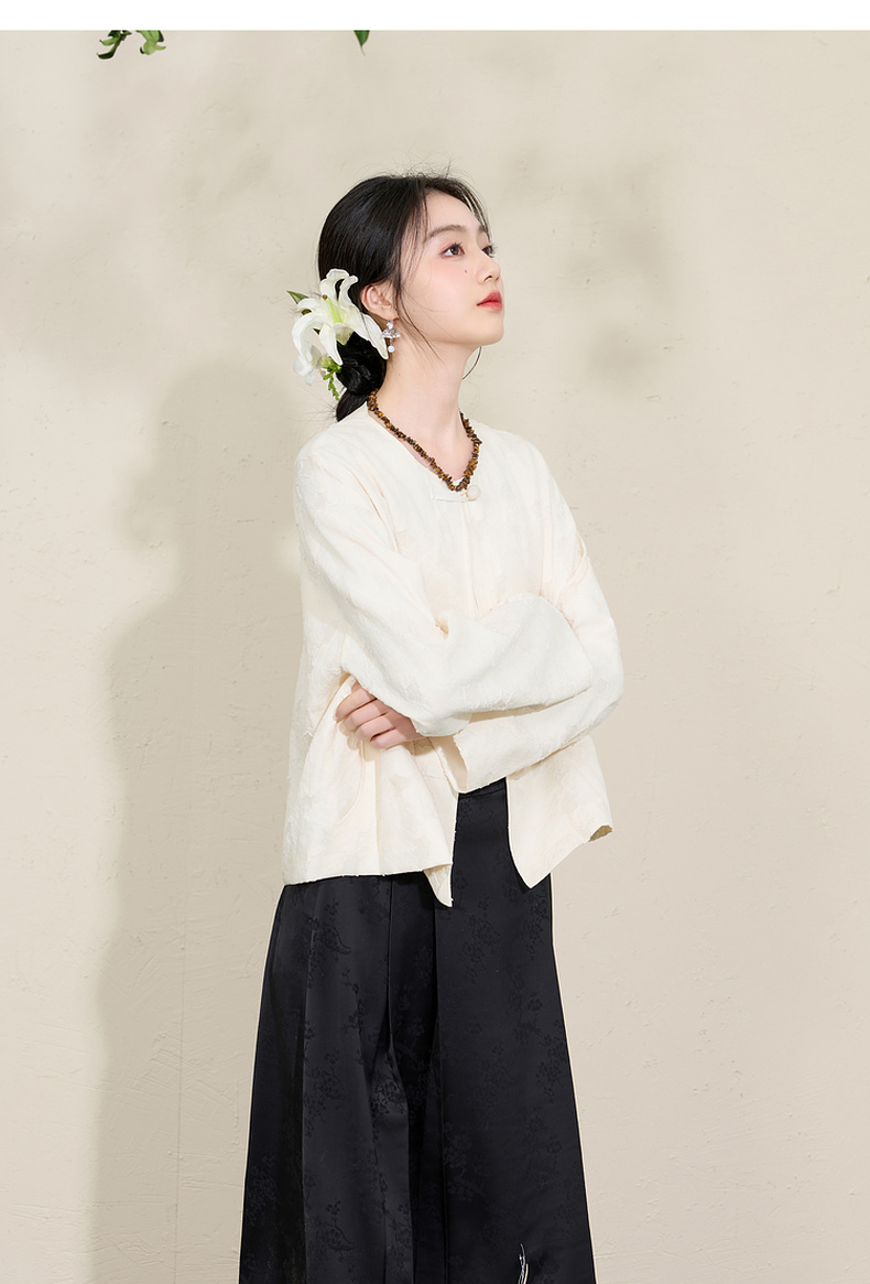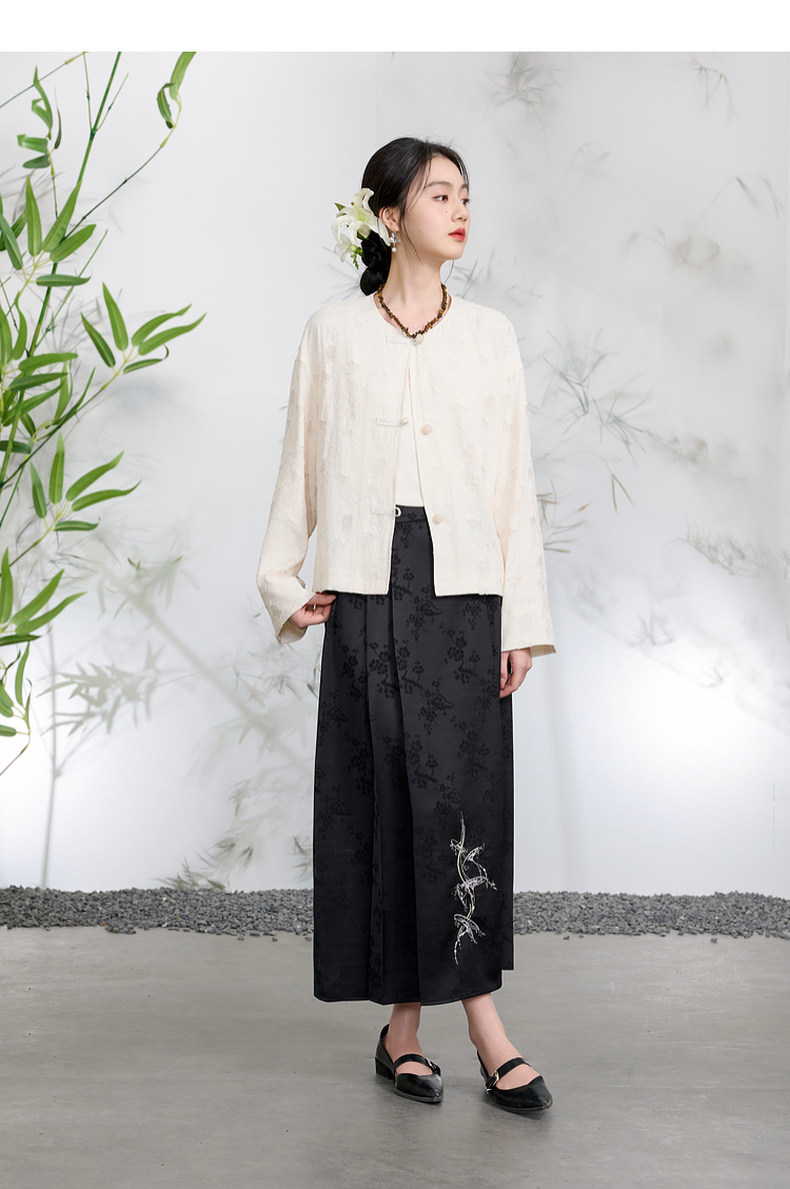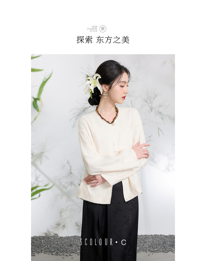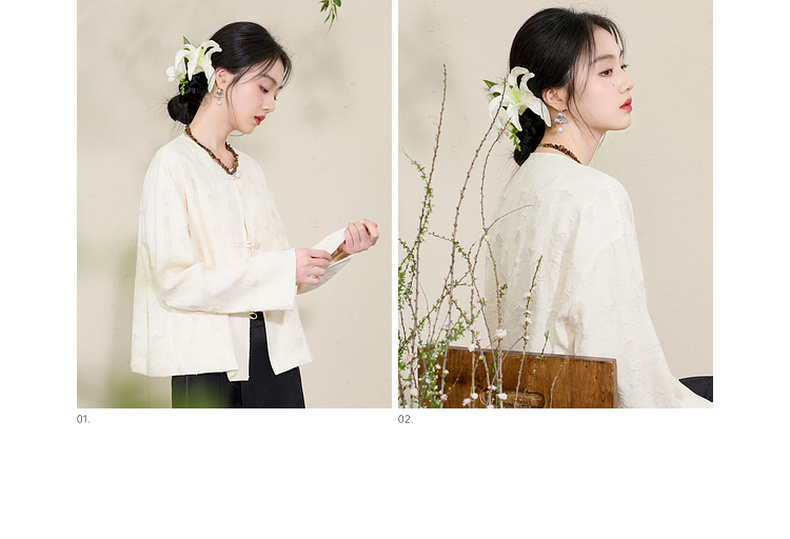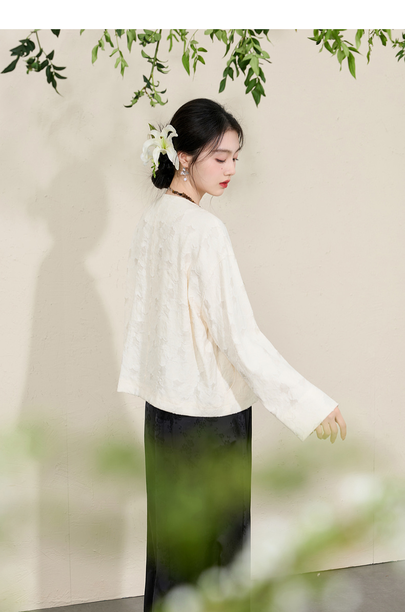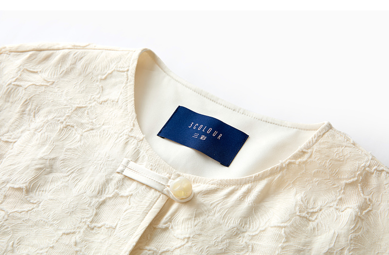 三彩【落花微雨】2026春季新款新中式提花外套圆领开衫宽松C