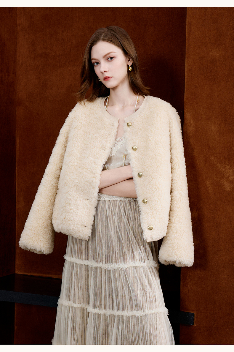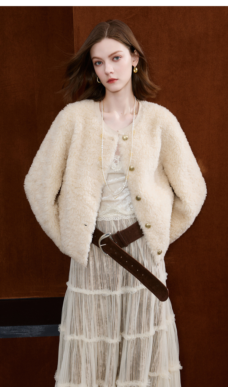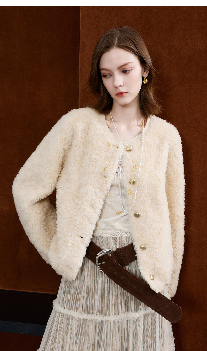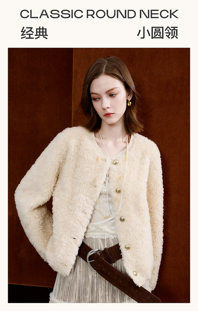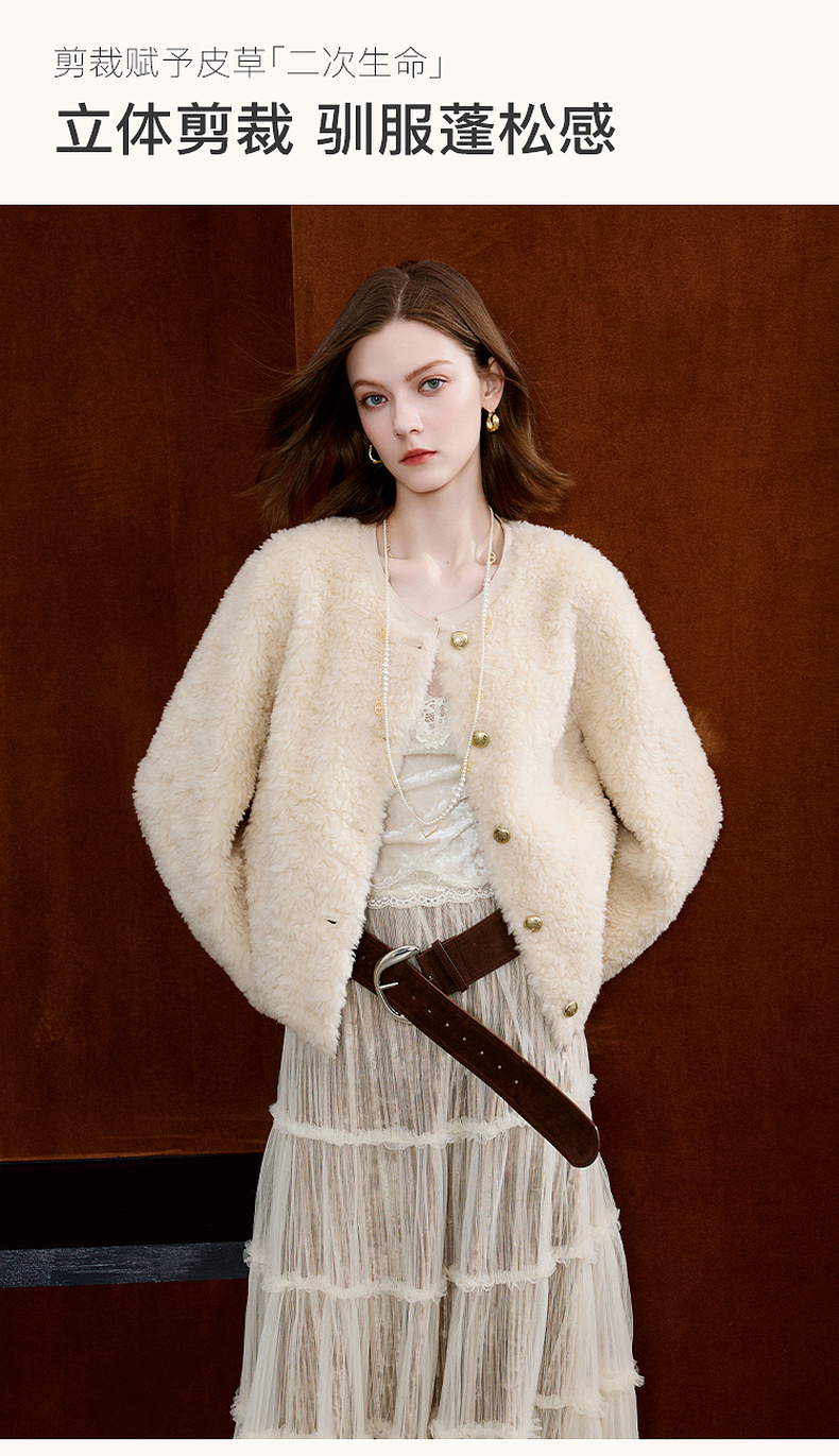 【瘦瘦系列】三彩2025冬季新款绵羊毛复合皮草毛毛外套短款保暖M