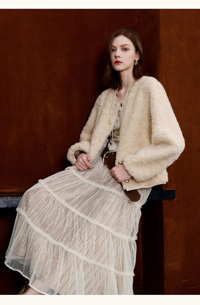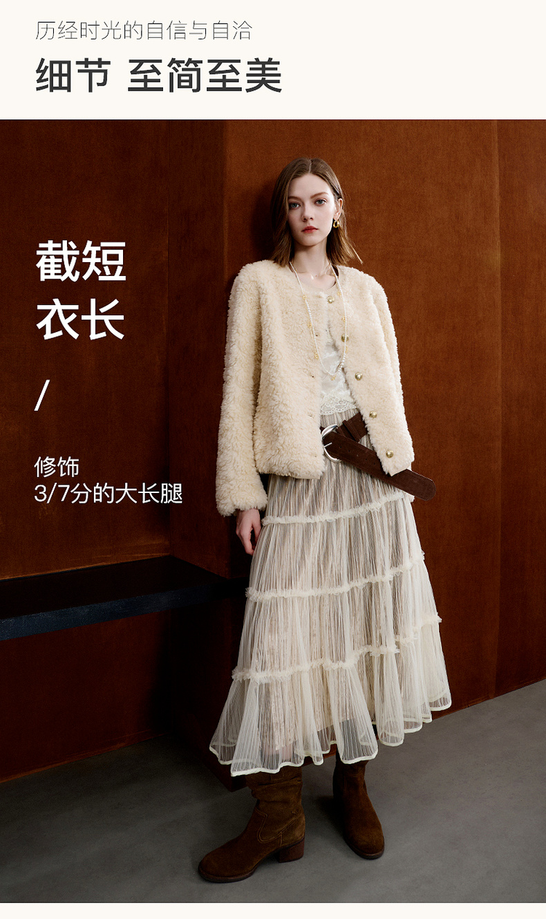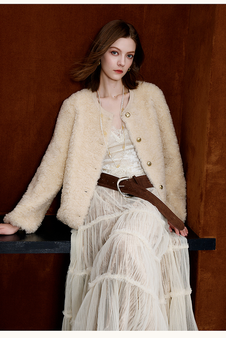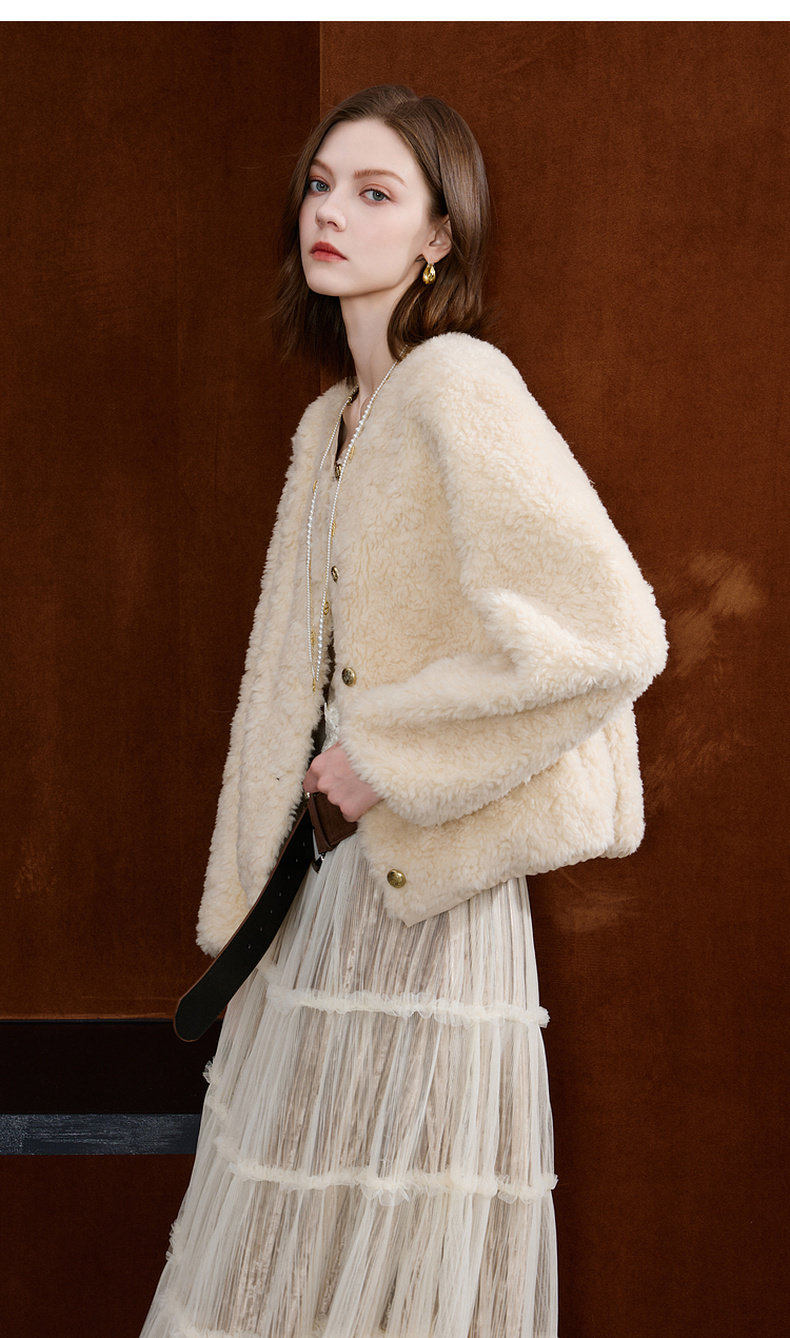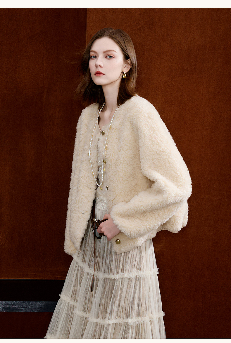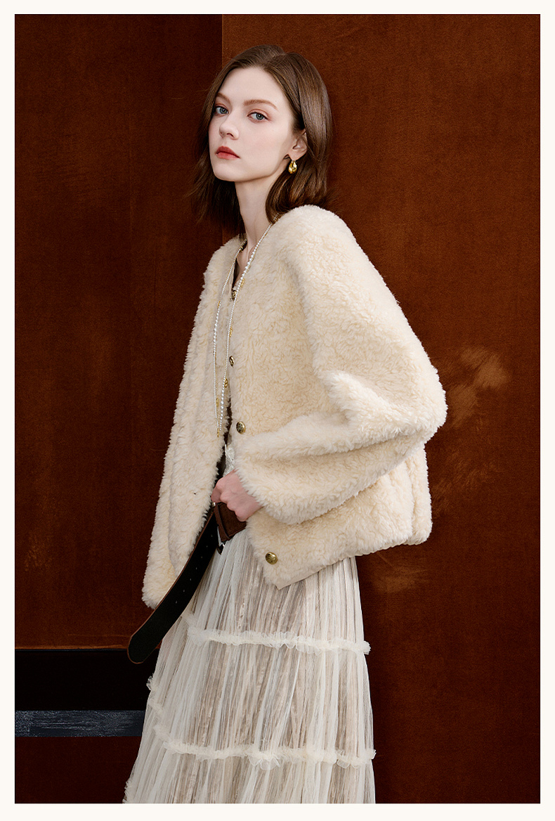 【瘦瘦系列】三彩2025冬季新款绵羊毛复合皮草毛毛外套短款保暖M