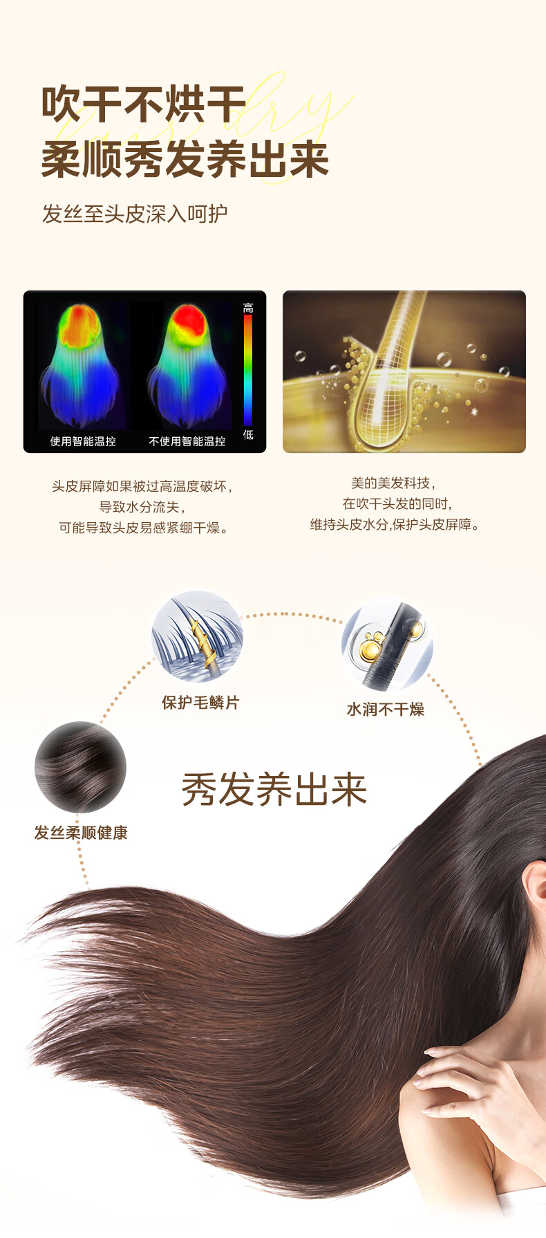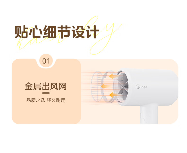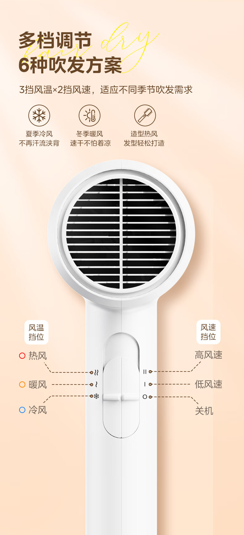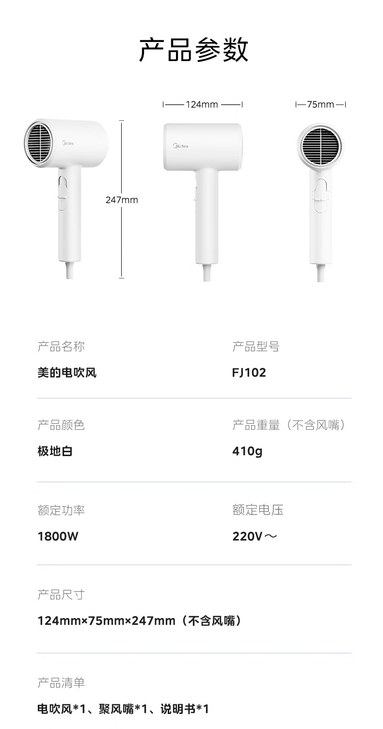 美的(Midea)吹风机家用电吹风负离子恒温大功率电吹风筒家用负离子吹风机电风吹便携生日礼物FJ102