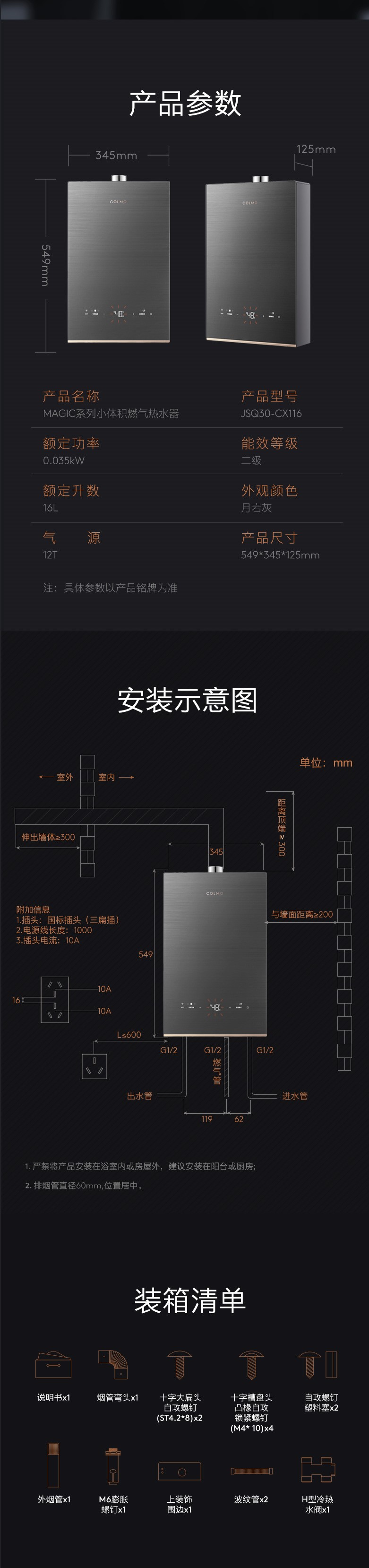 【限天津区域】COLMO/燃气热水器/JSQ30-CX116月岩灰