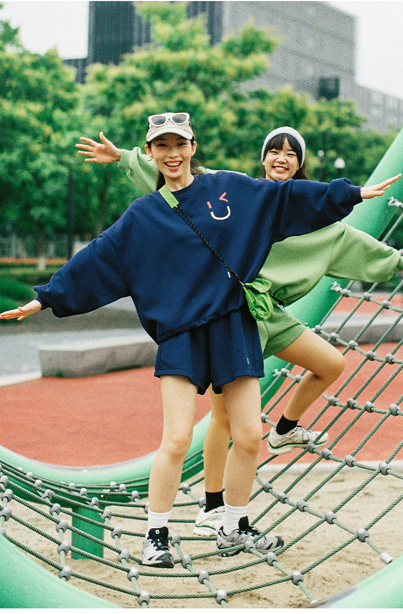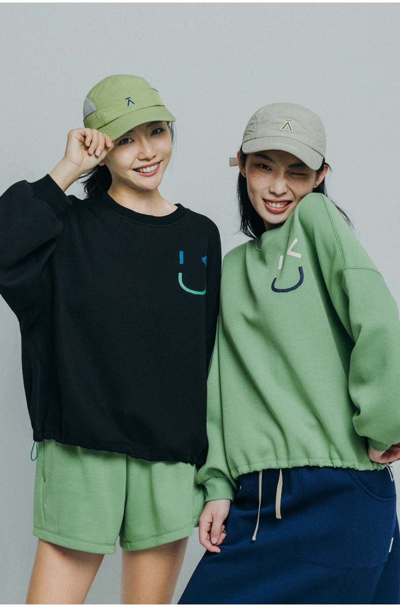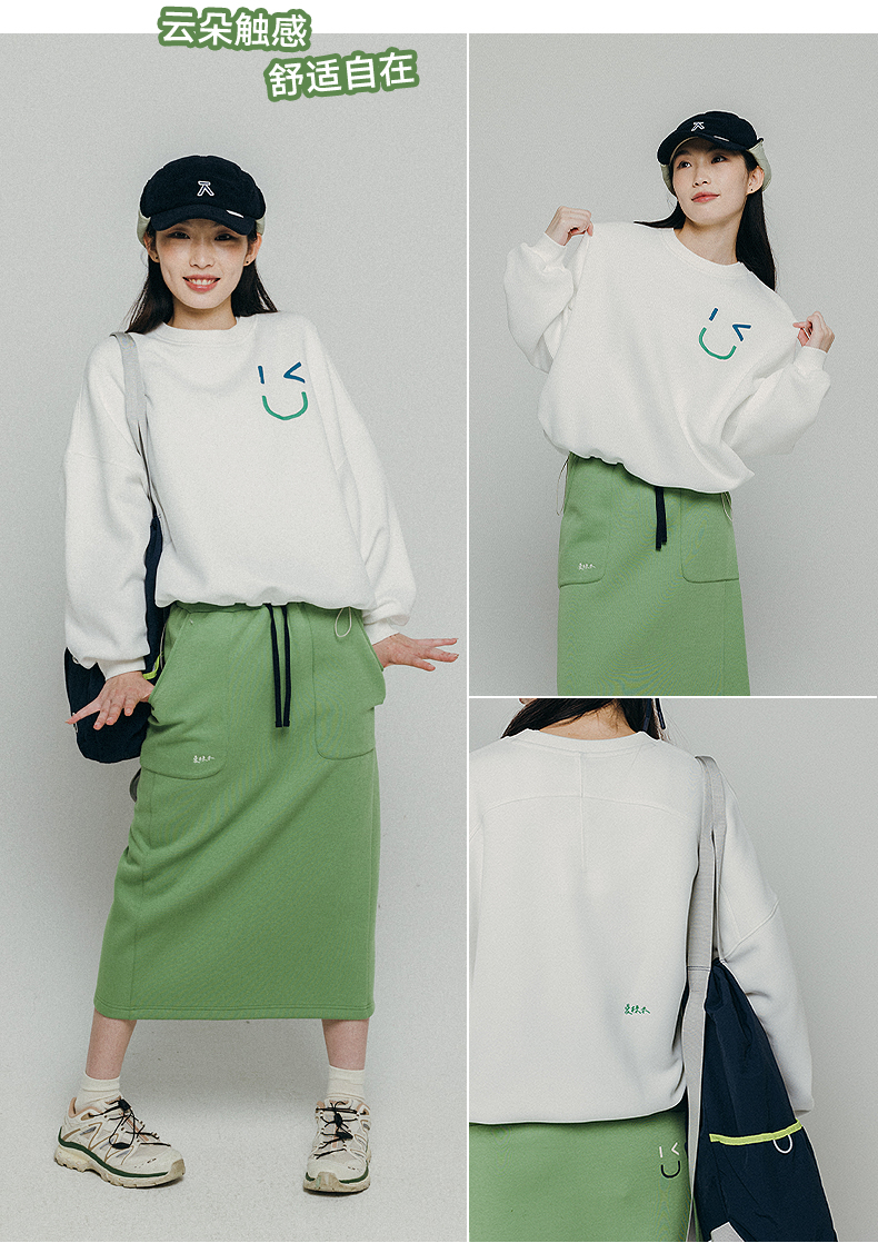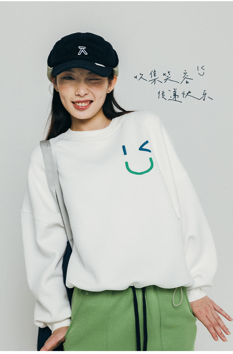 【童品会专属】ACMEITEM爱棵米 户外笑脸空气层卫衣圆领套头印花宽松上衣女士GAF2319006E