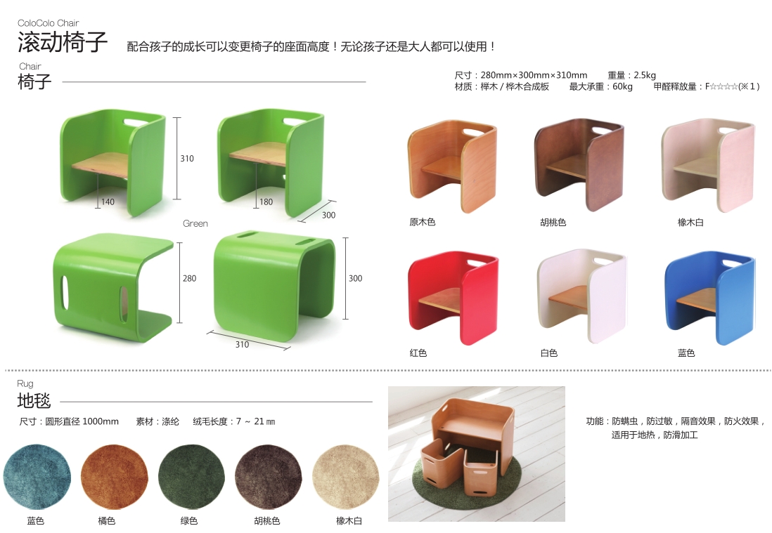 ColoColo Desk&Chair 儿童桌椅套装 1桌2椅_BYY