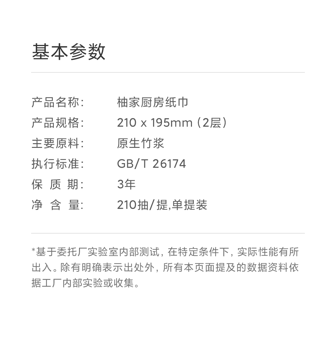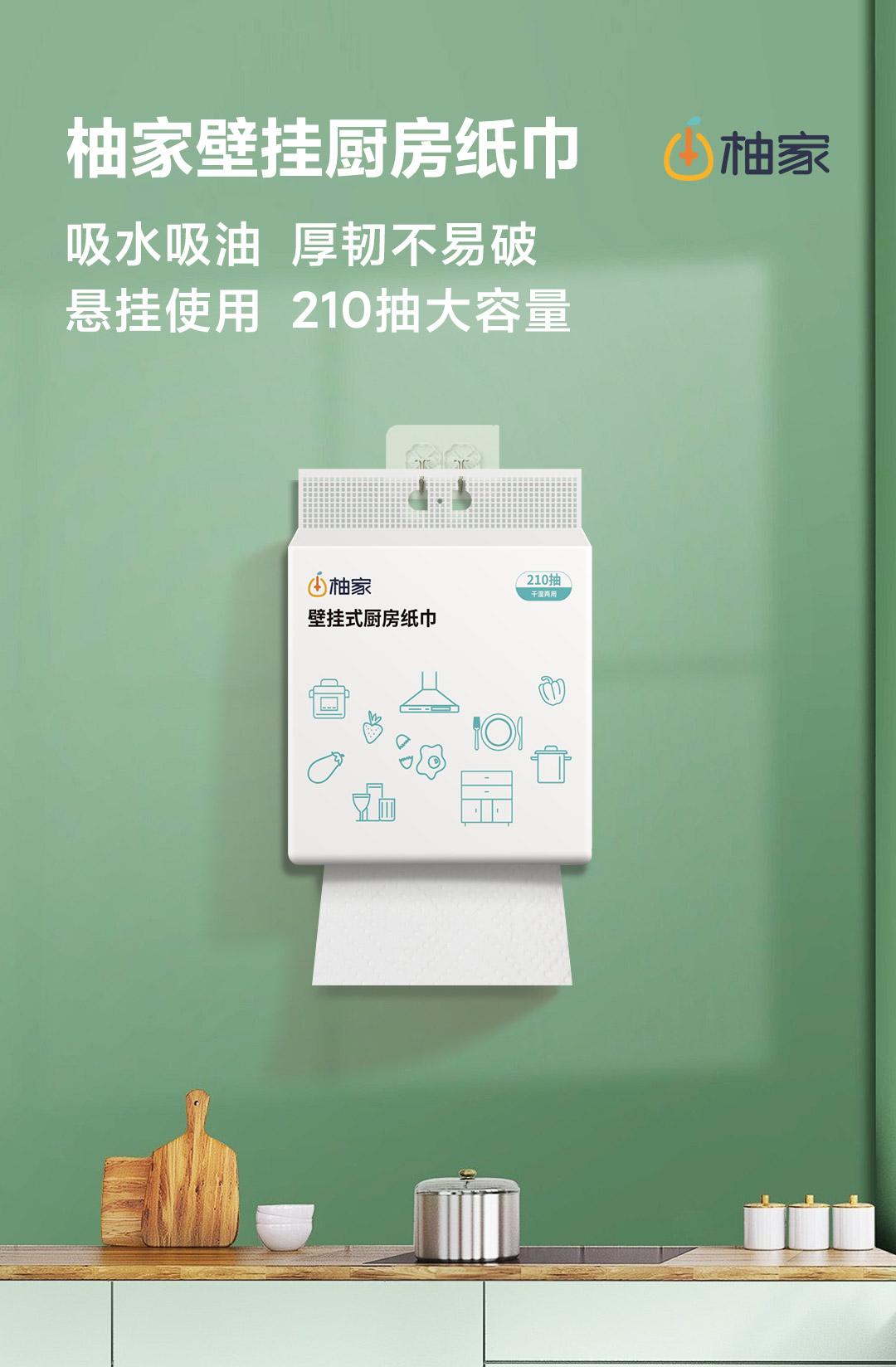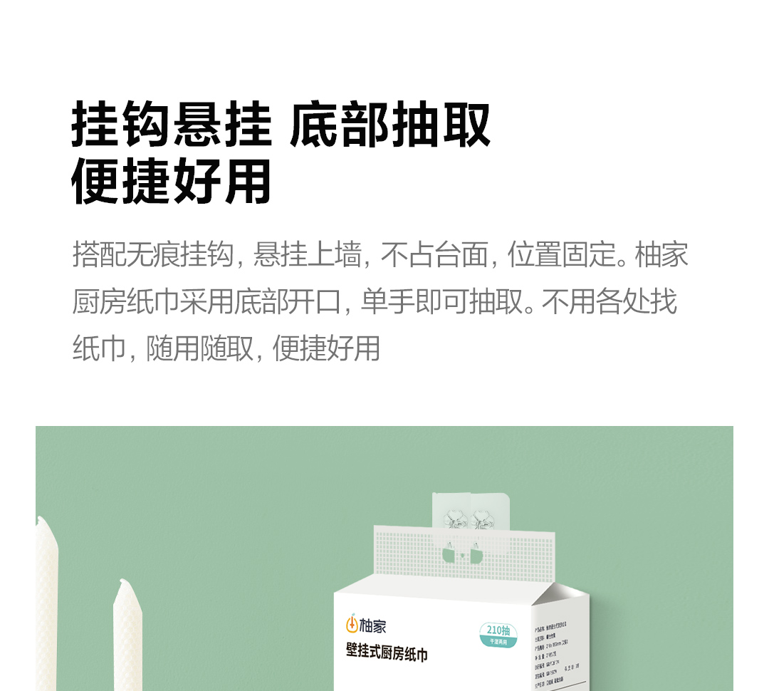 【100积分+24.9元】柚家 壁挂式厨房纸巾 210抽/提 厚韧不易破