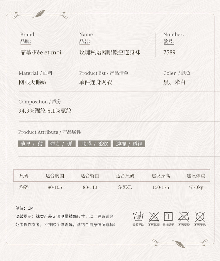 【情趣内衣】霏慕 玫瑰私语网眼镂空连身袜7589