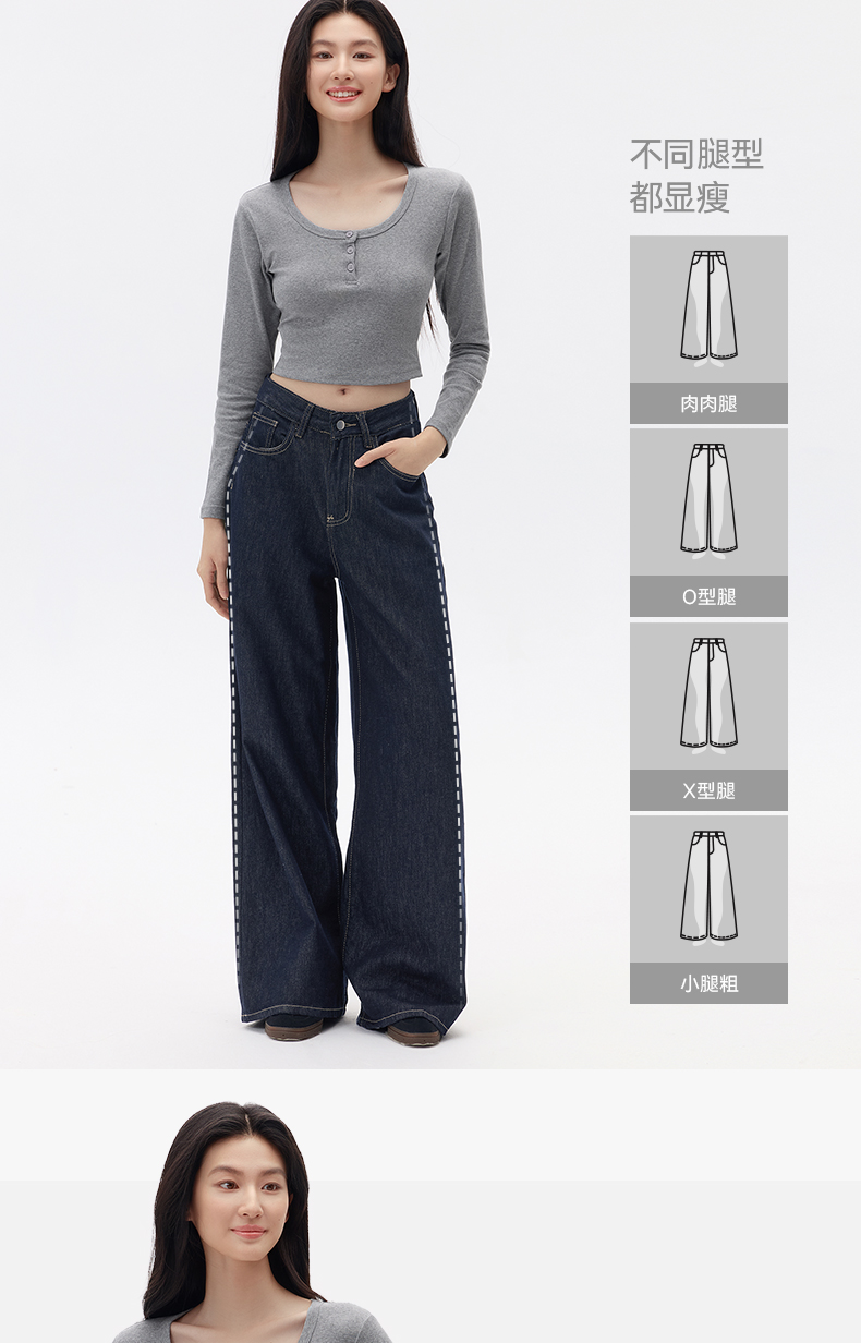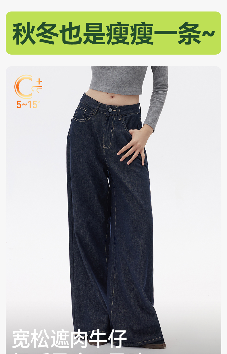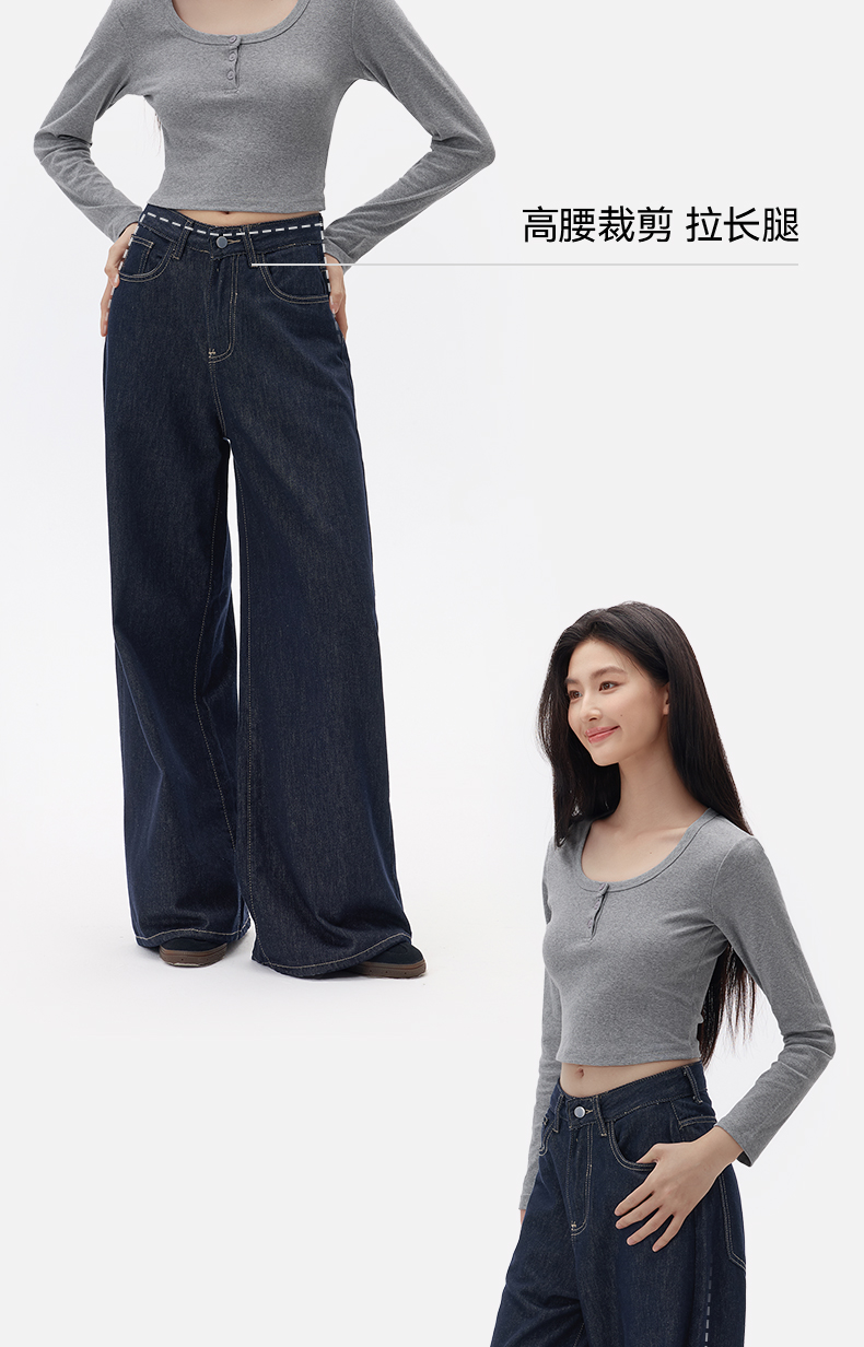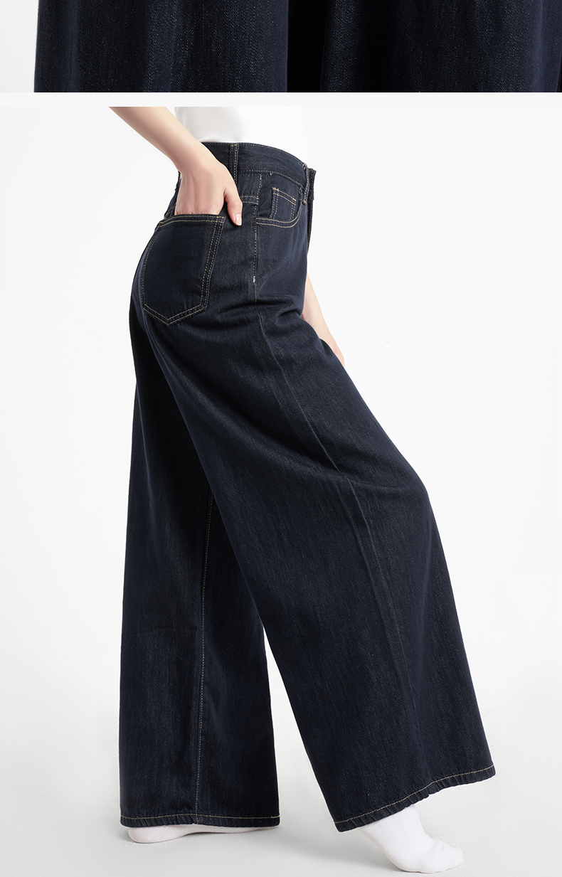 「棉的美学」深蓝色阔腿牛仔裤女夏季薄款高腰百搭宽松垂感丹宁裤子