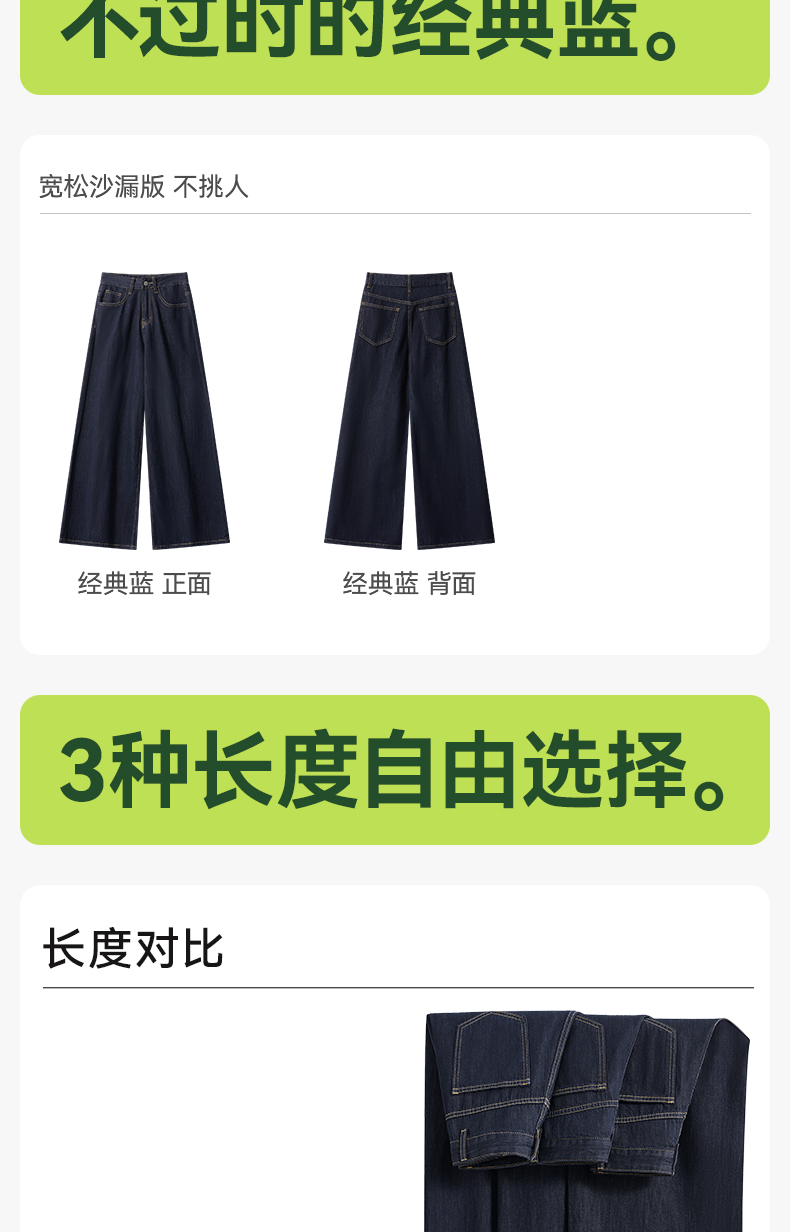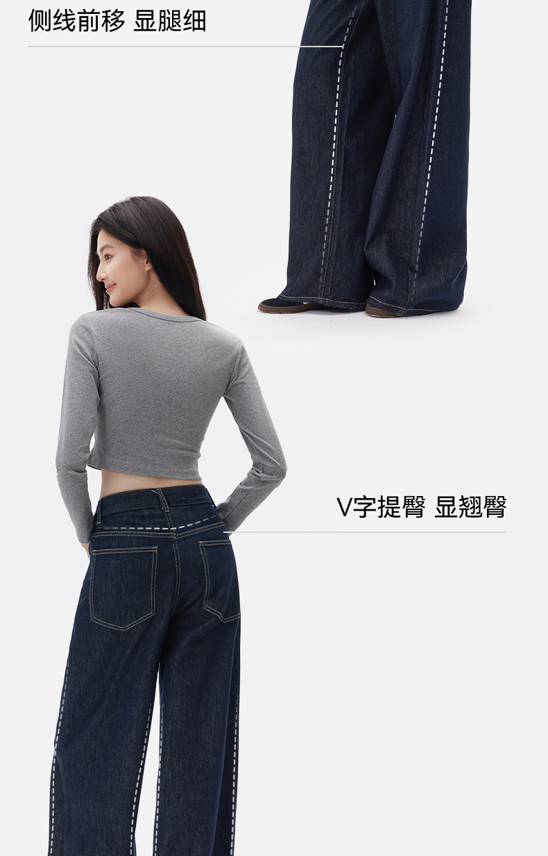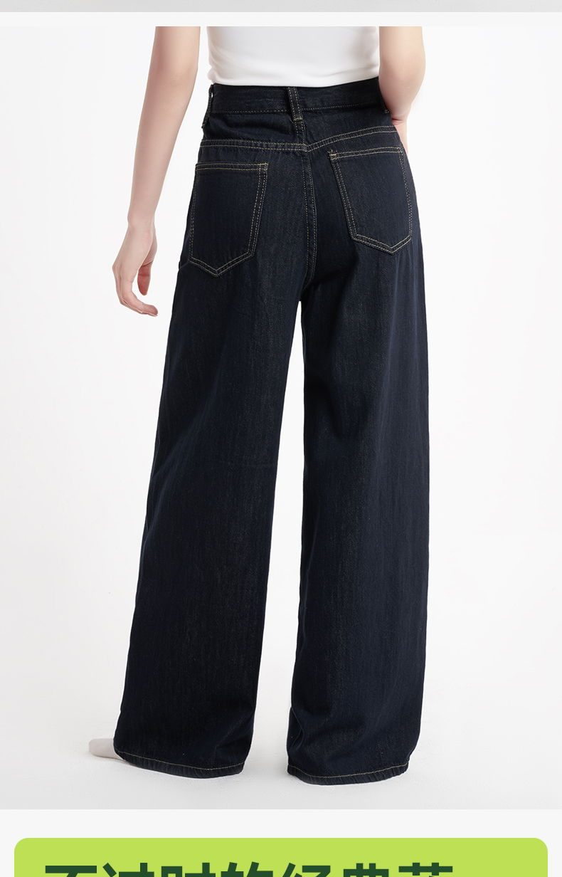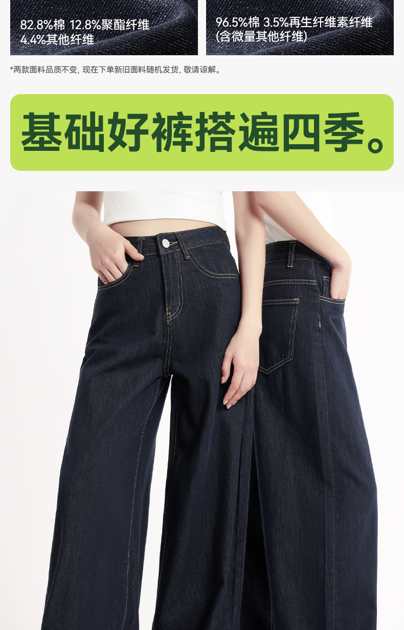 「棉的美学」深蓝色阔腿牛仔裤女夏季薄款高腰百搭宽松垂感丹宁裤子