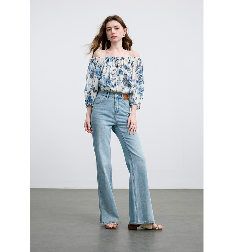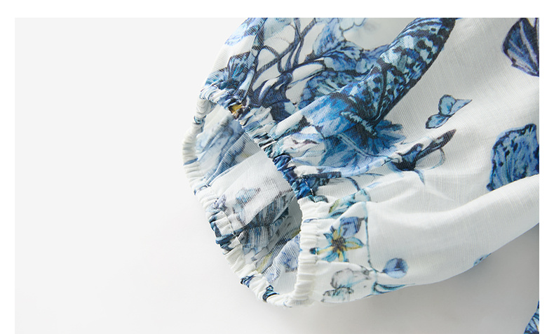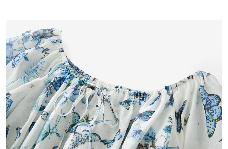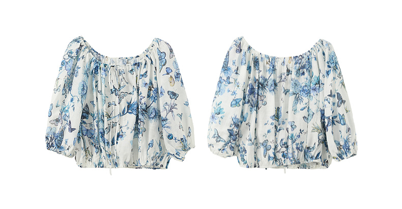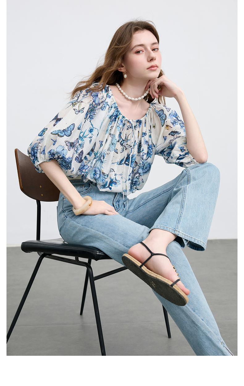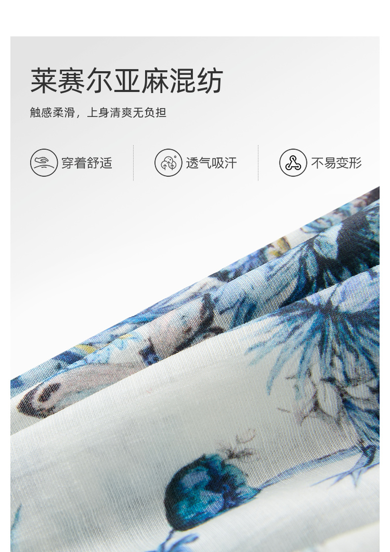 【莱赛尔+亚麻】三彩2025夏季新款繁花小衫圆领系带七分灯笼袖莱赛尔宽松短款M