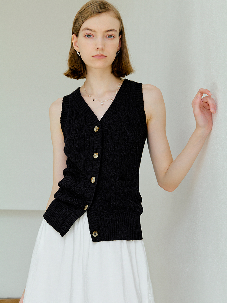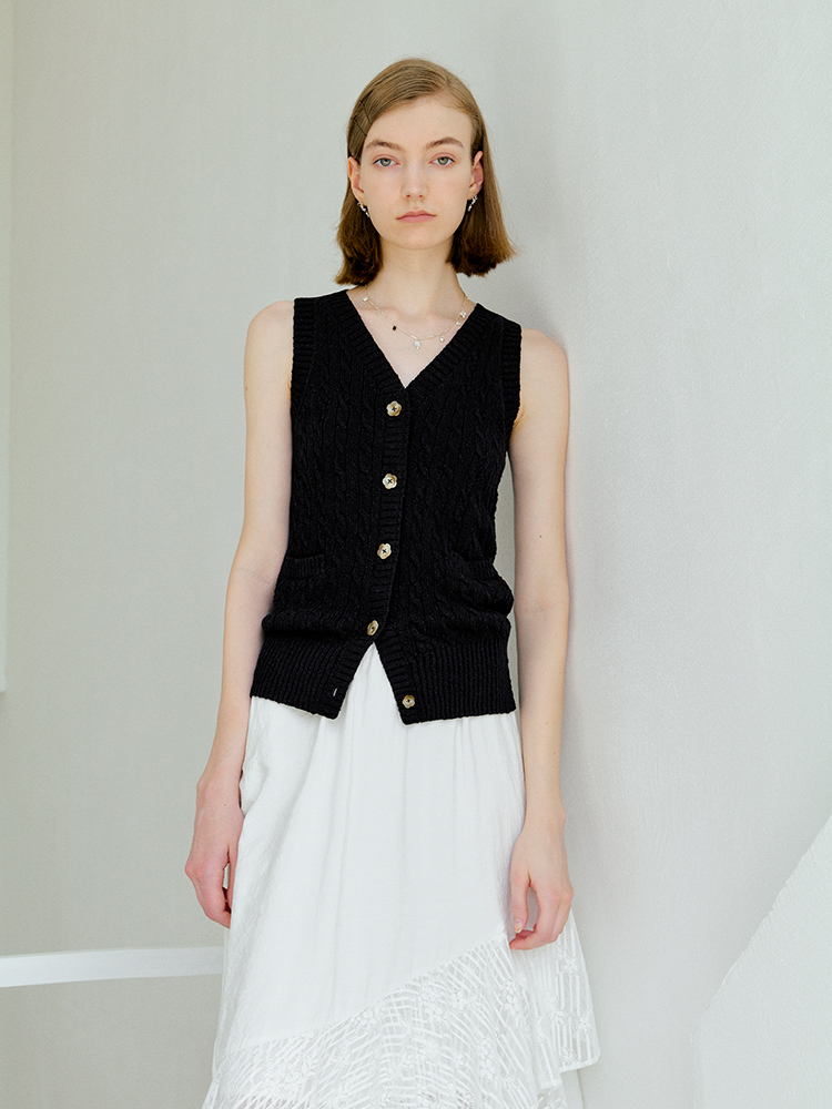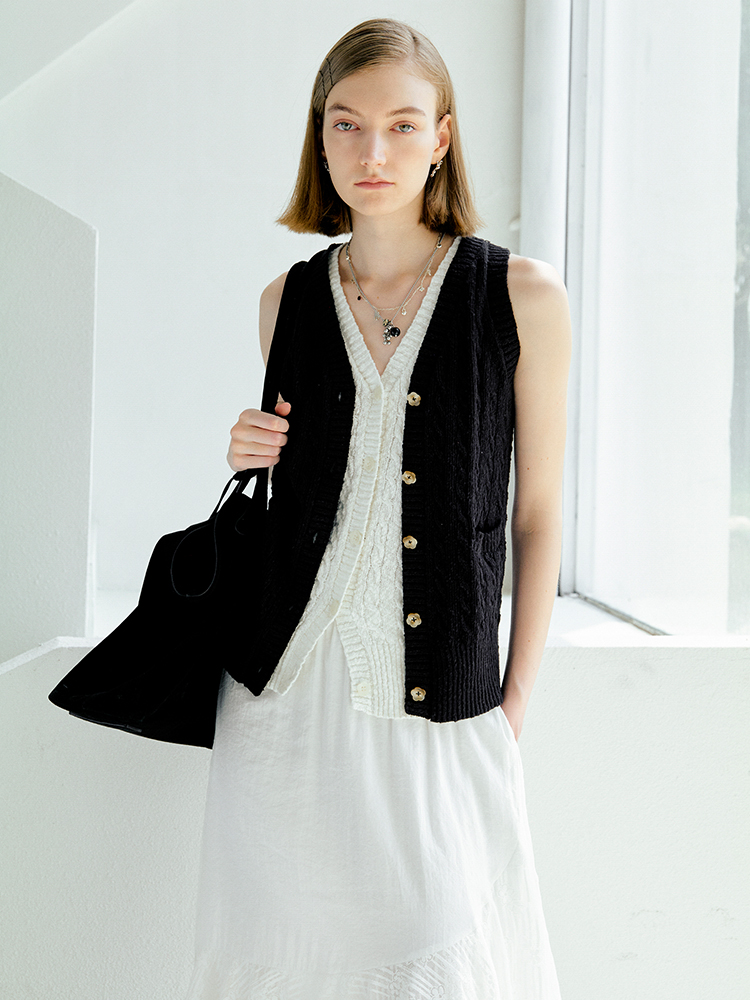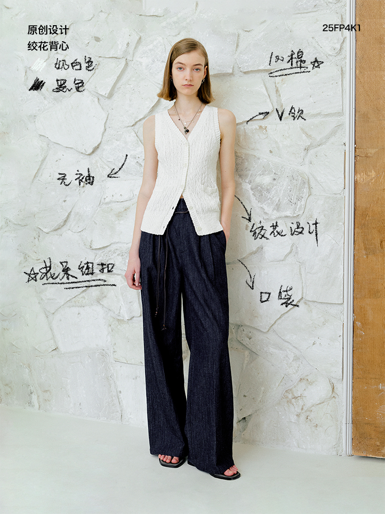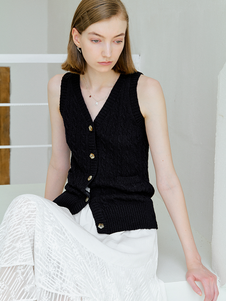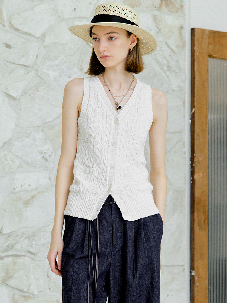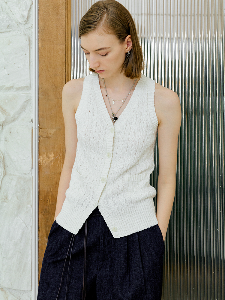 ForPoem 现货 25/SS原创设计老钱风100棉绞花无袖针织背心上衣