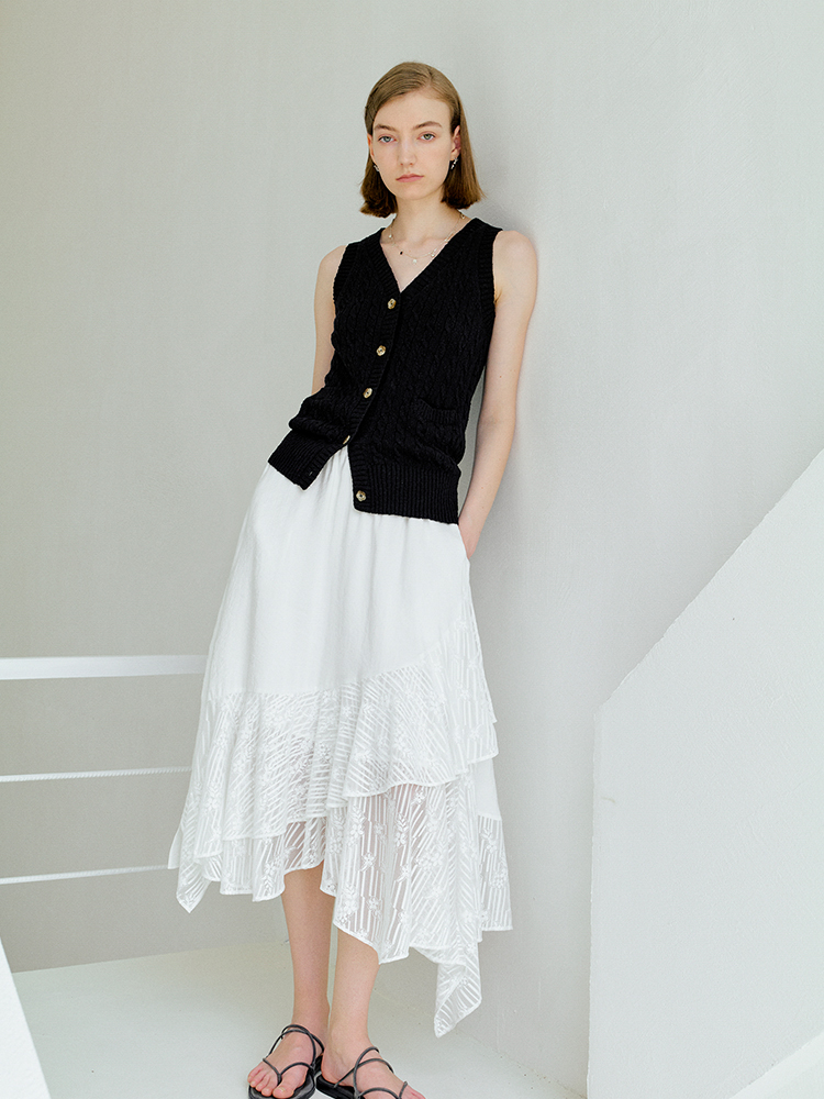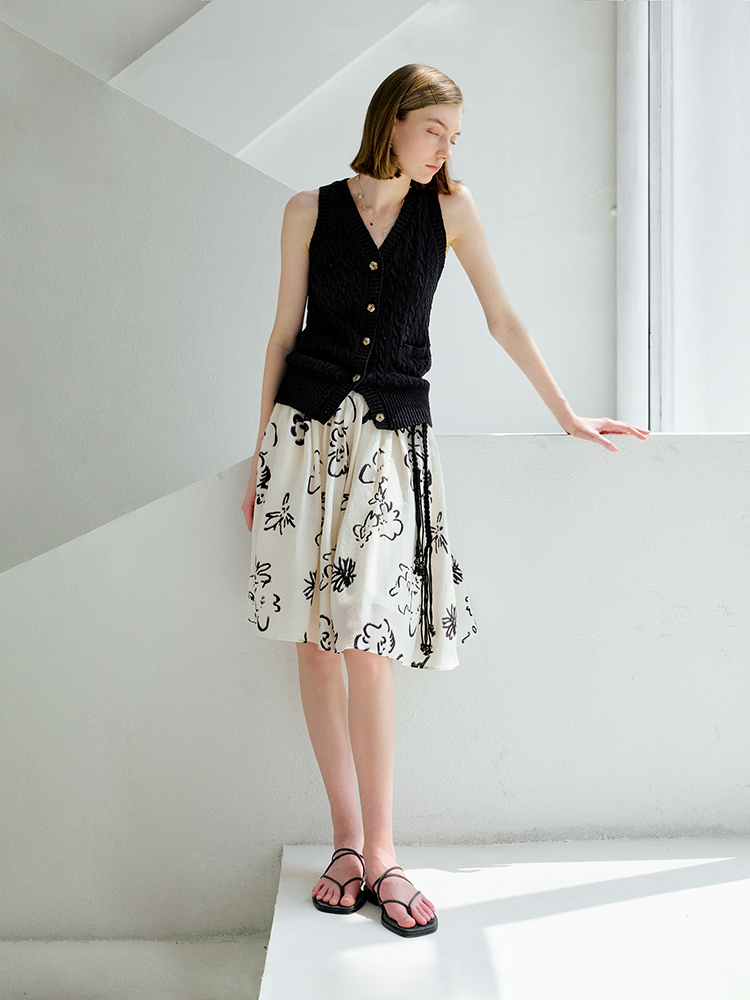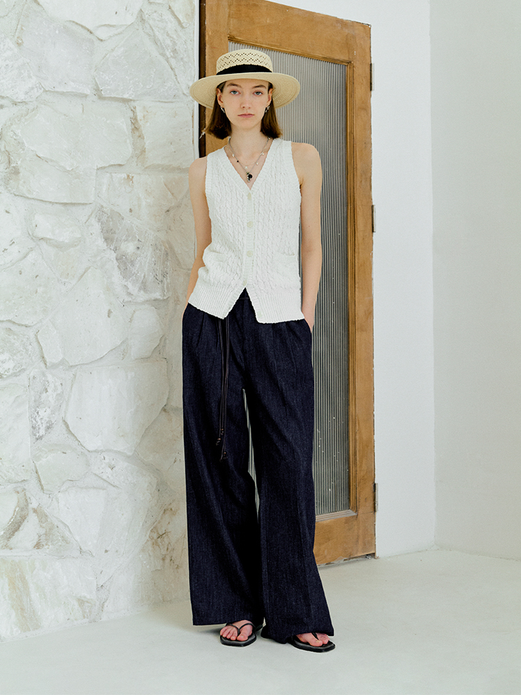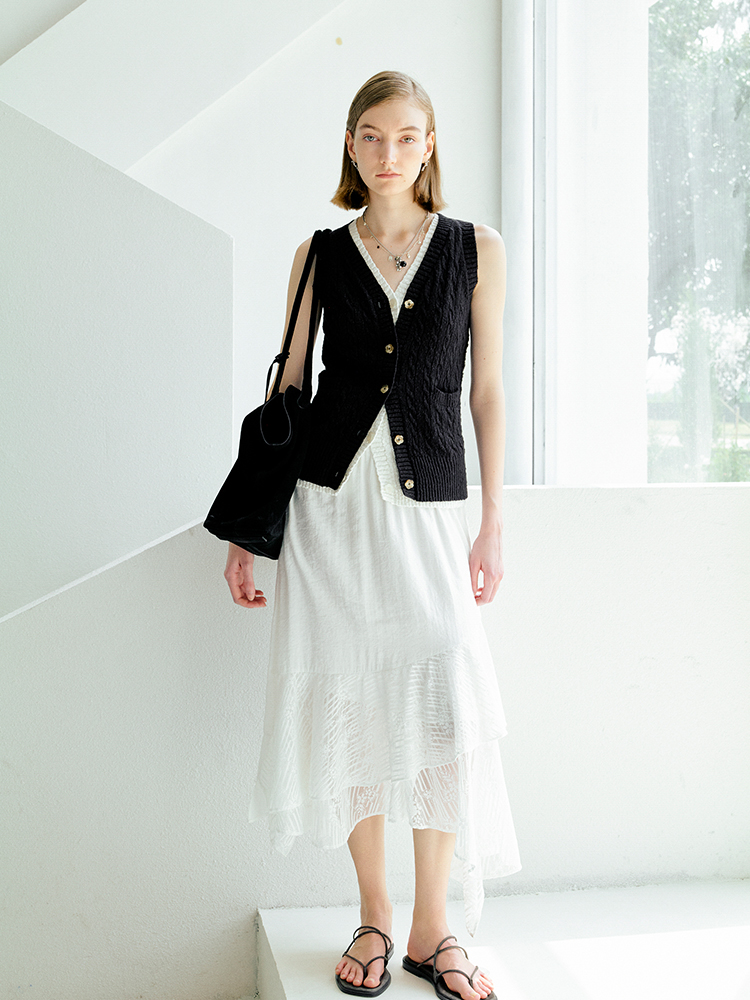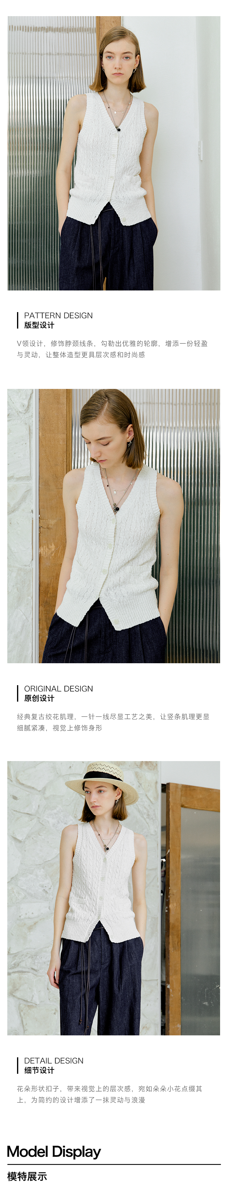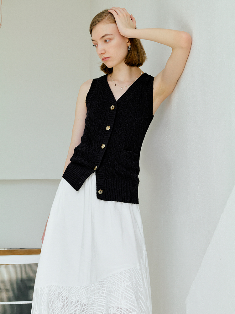 ForPoem 现货 25/SS原创设计老钱风100棉绞花无袖针织背心上衣