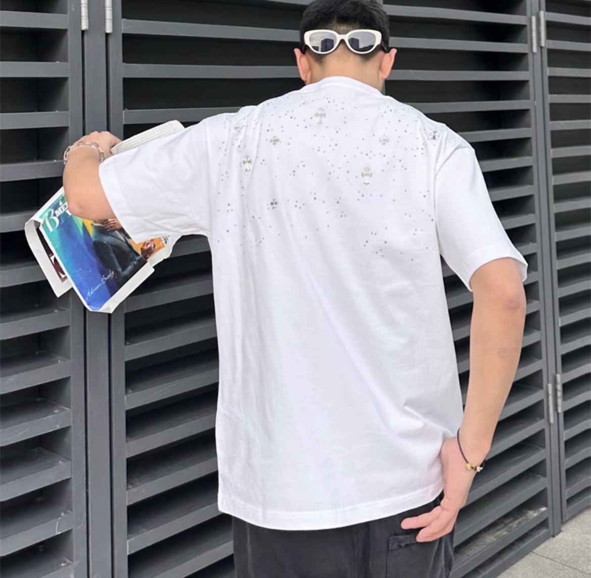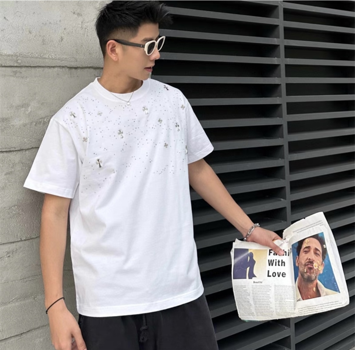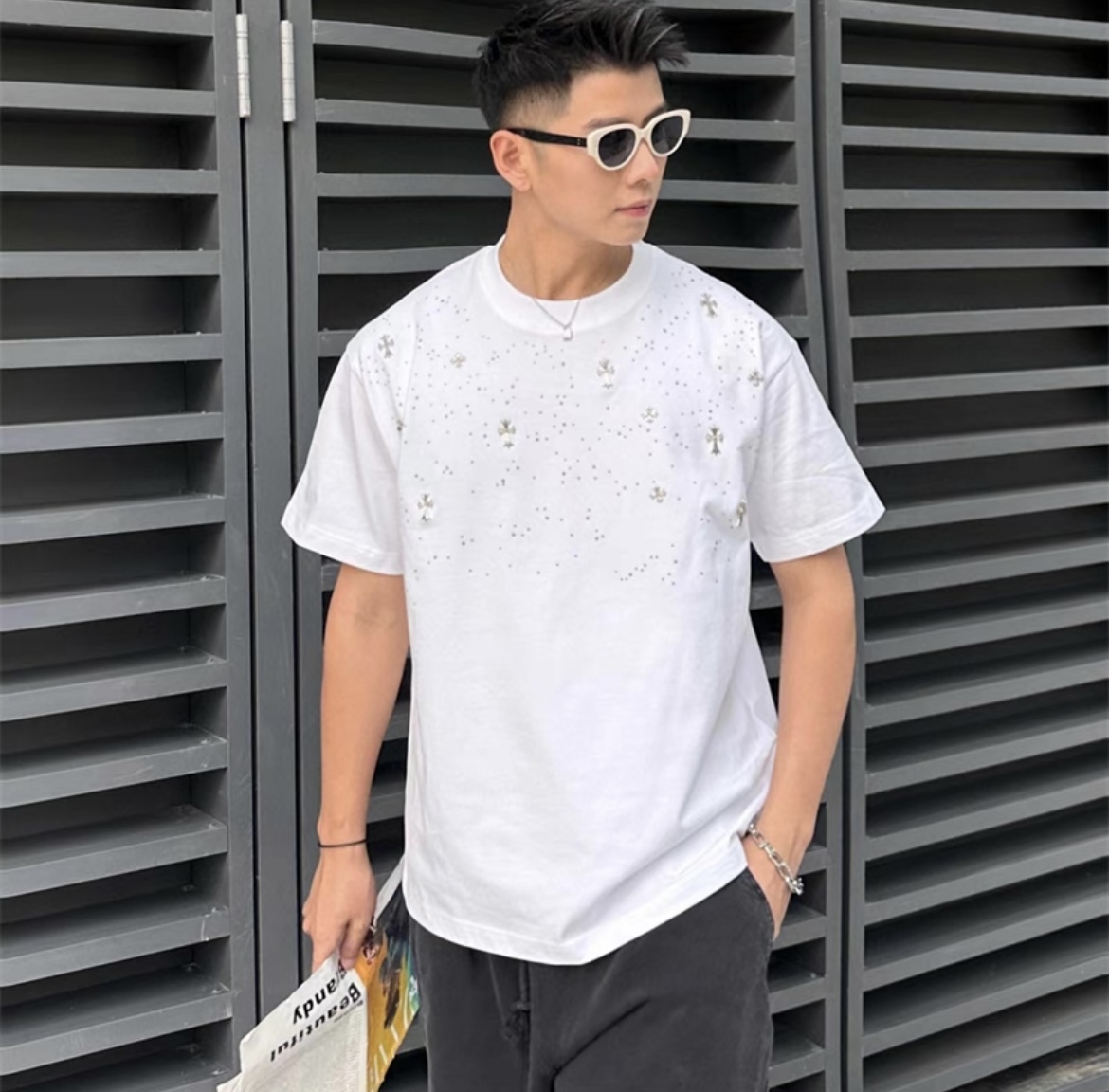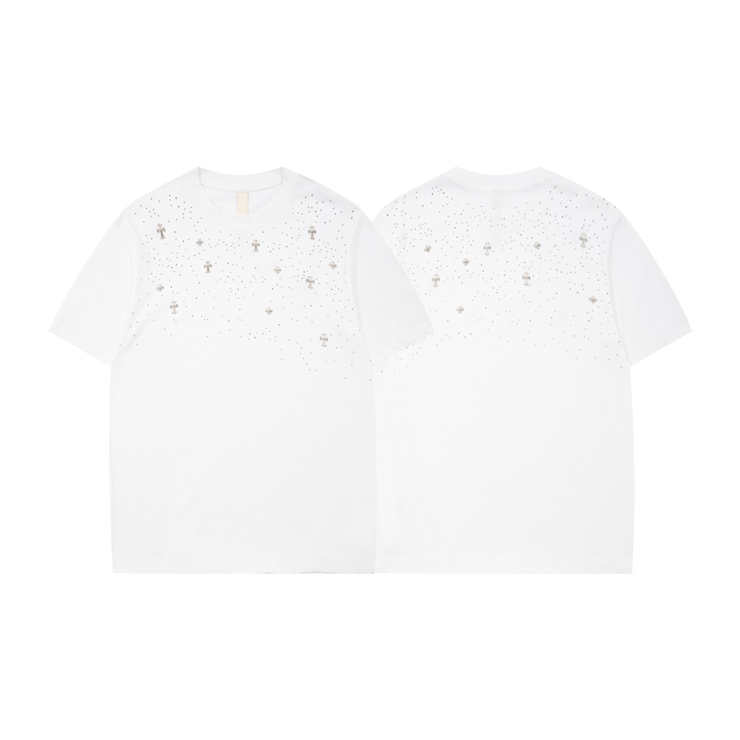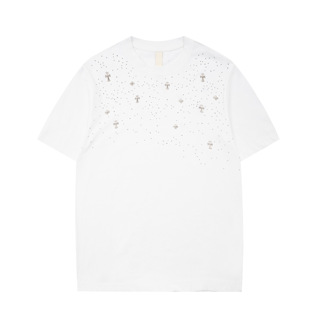 CH克家满天星十字架烫钻水洗做旧复古圆领短袖! 【男女同款 官网热门爆款|网红明星同款】