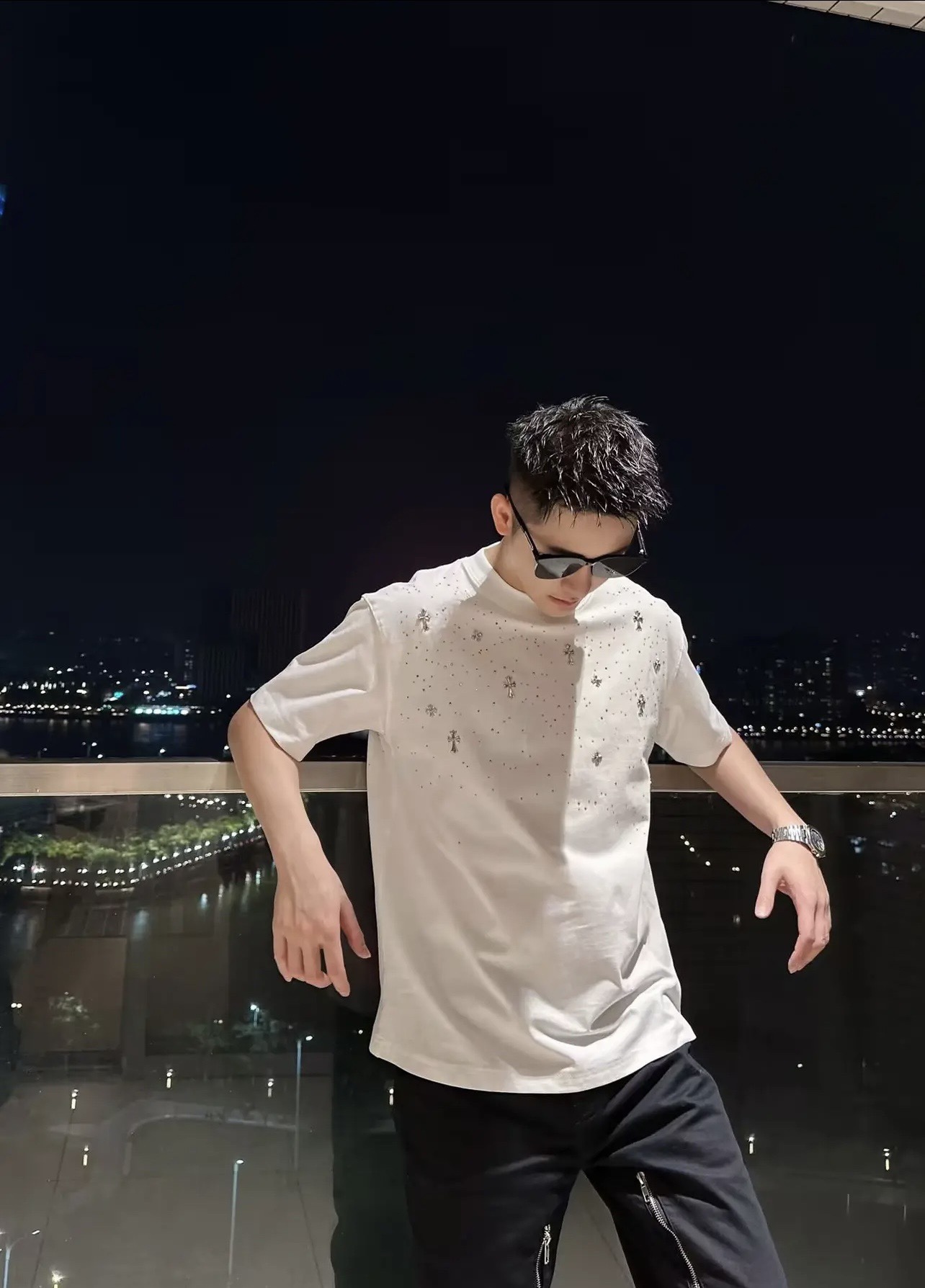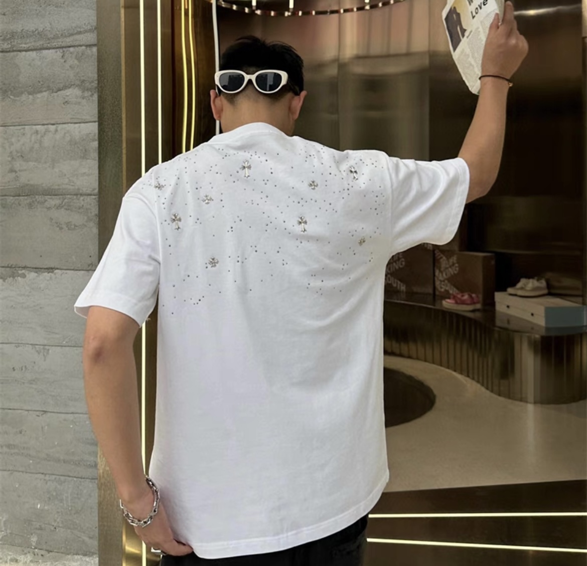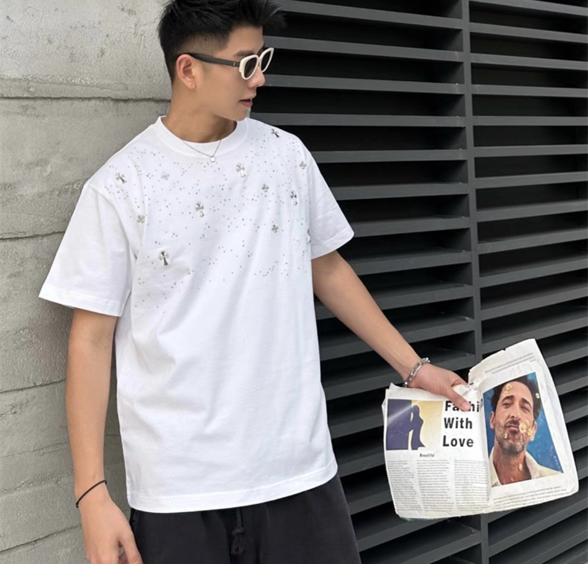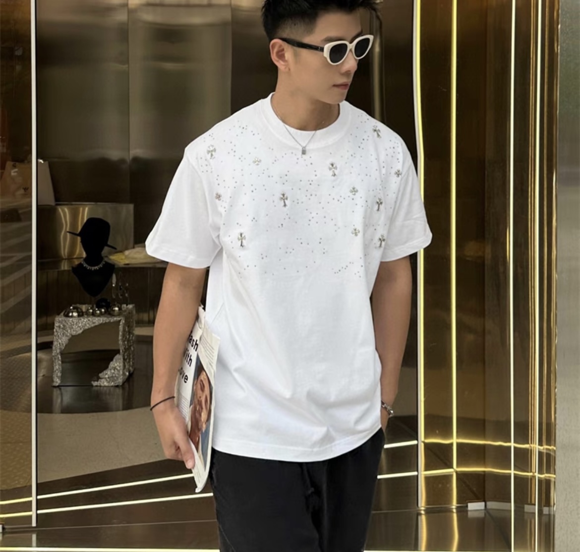 CH克家满天星十字架烫钻水洗做旧复古圆领短袖! 【男女同款 官网热门爆款|网红明星同款】
