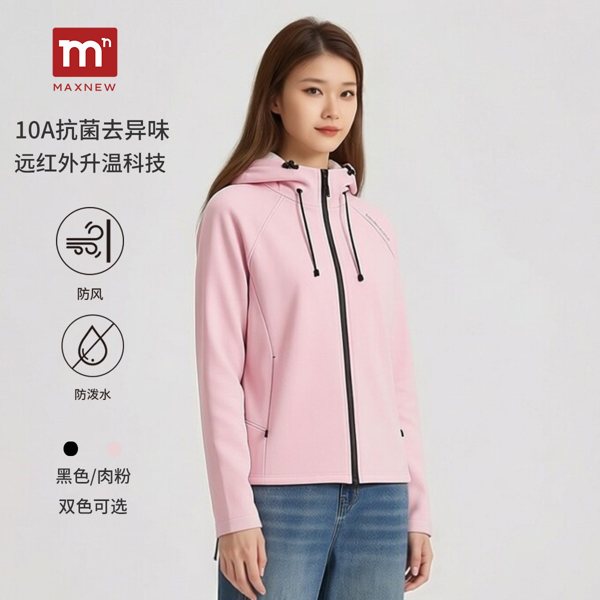 【门店同款】户外运动风连帽女防风防水轻薄保暖拉链开衫外套