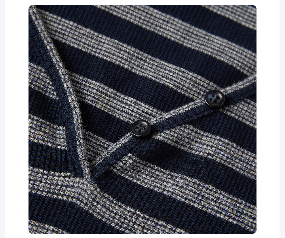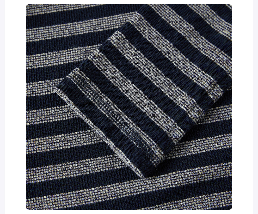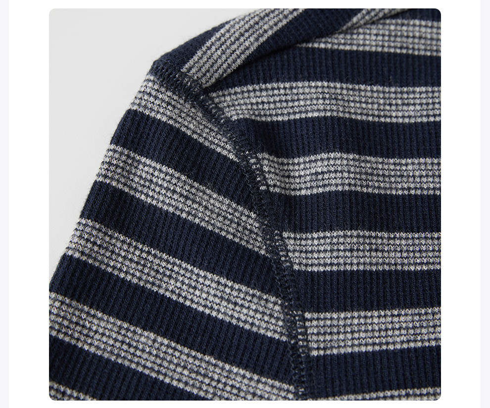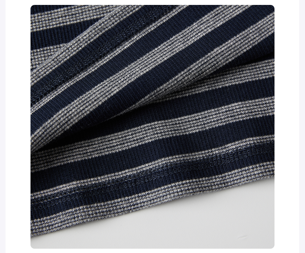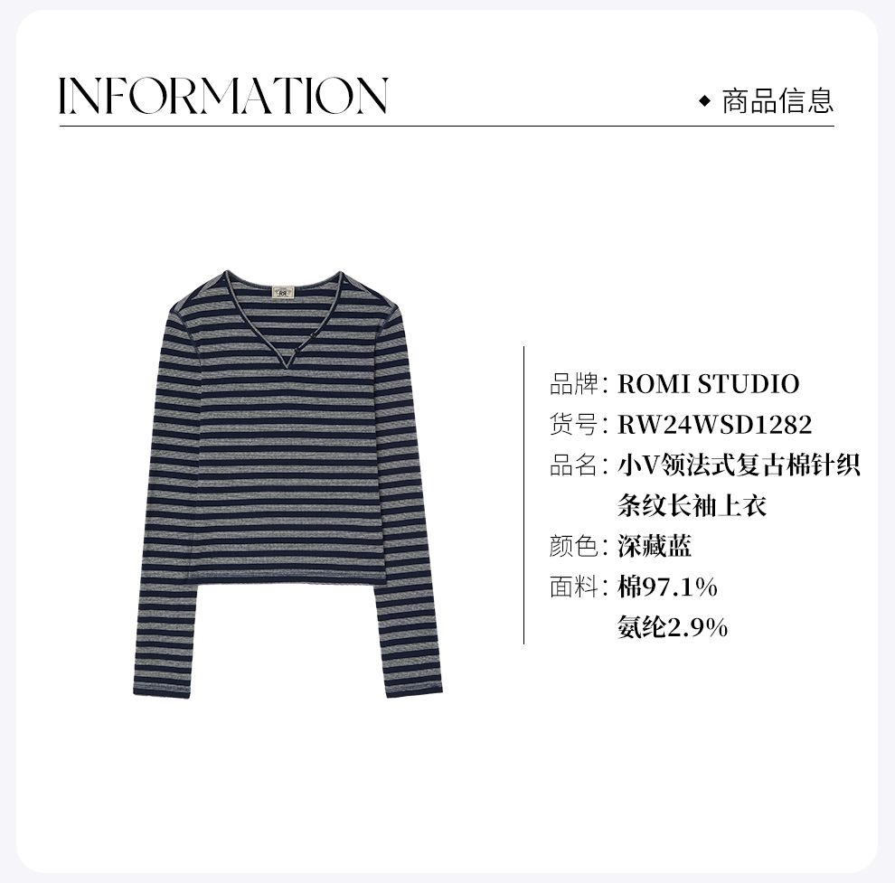 ROMI STUDIO“美式复古”高支棉条纹肌理感V领长袖T恤 RW24WSD1282