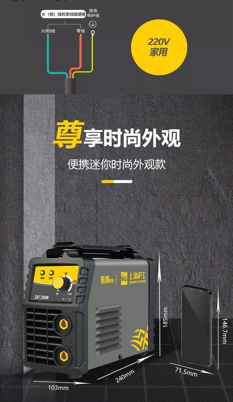 上海沪工220v ZX7-250Nv 电焊机3.2长焊逆变直流不锈钢手工焊机家用小型单电压
