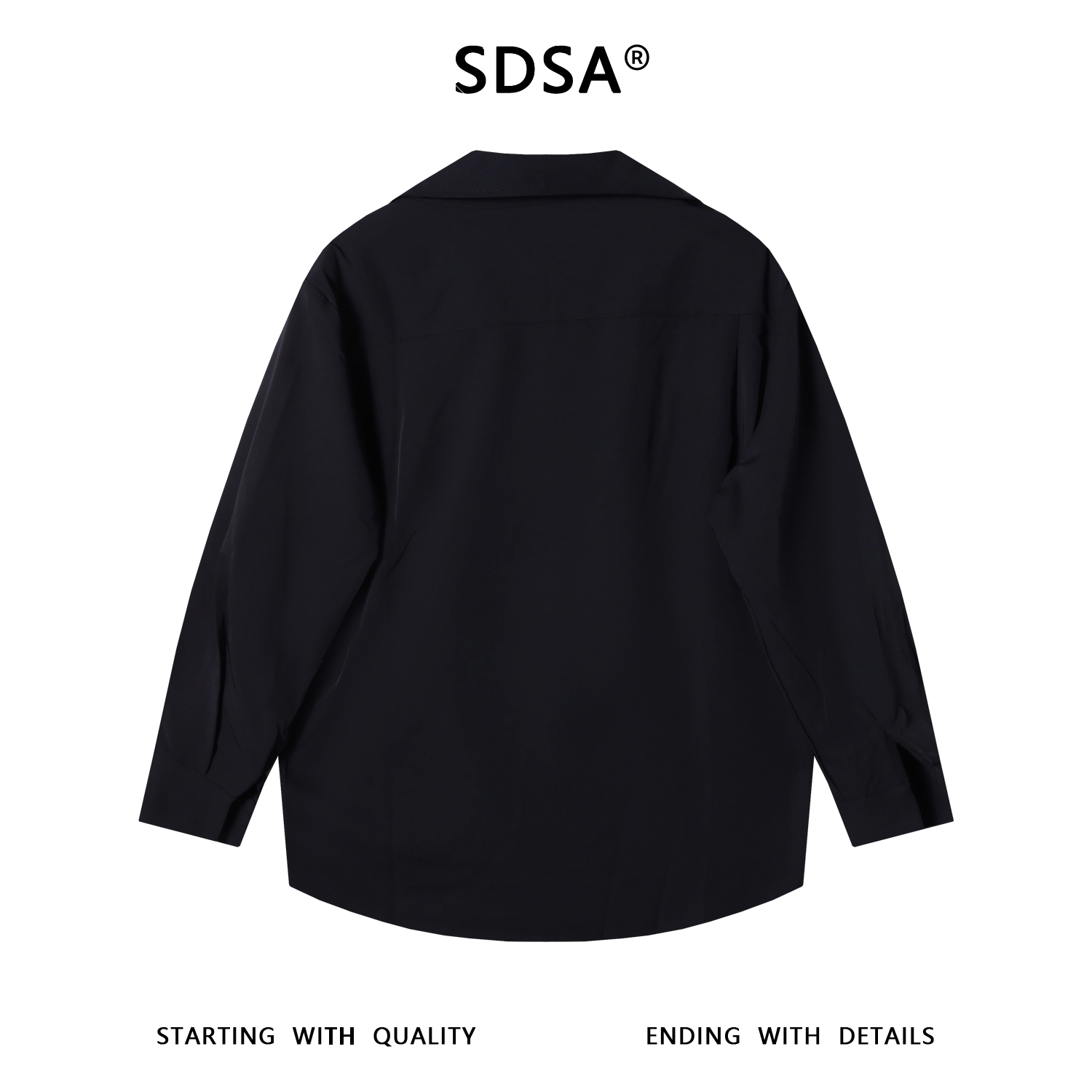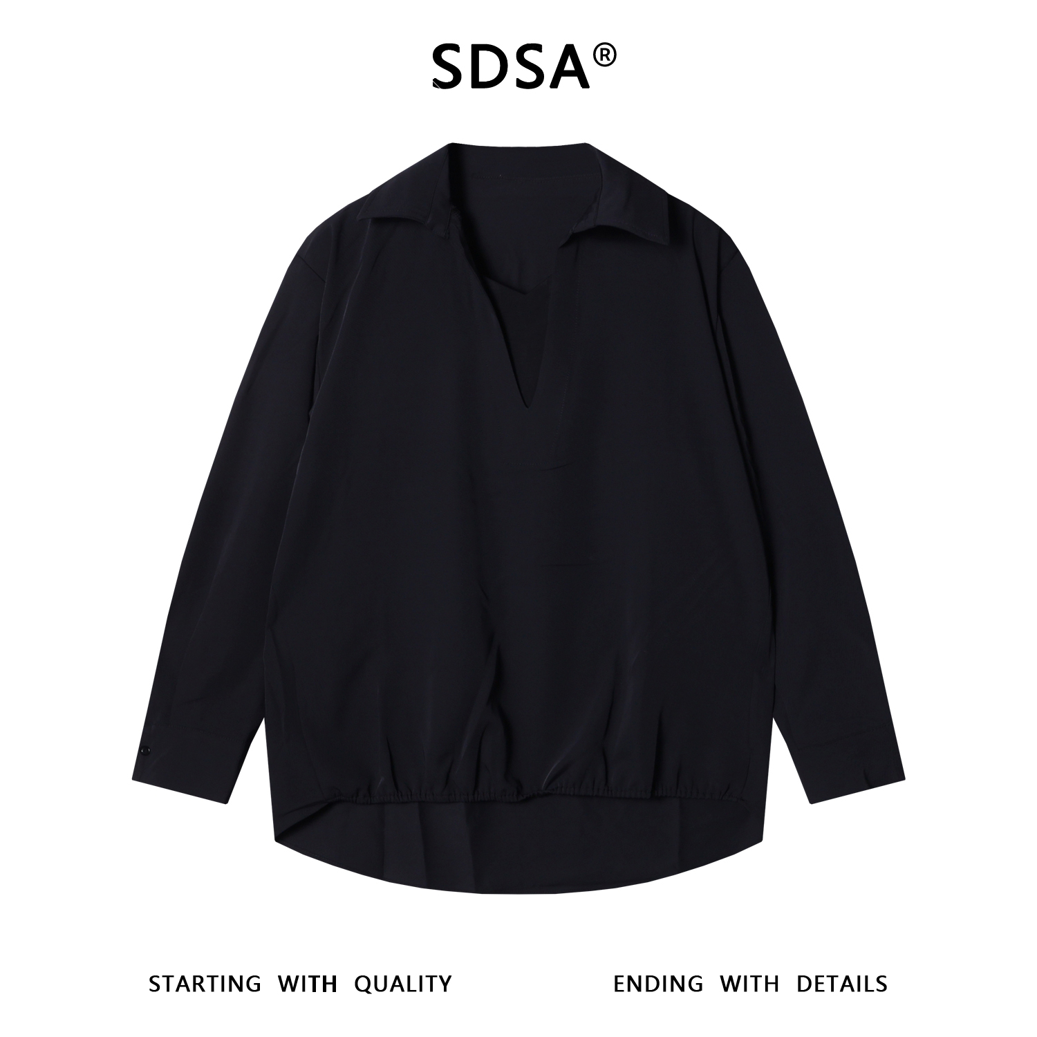 SDSA男士秋冬新款痞帅男装潮牌纯色拼接翻领长袖T恤百搭时尚上衣