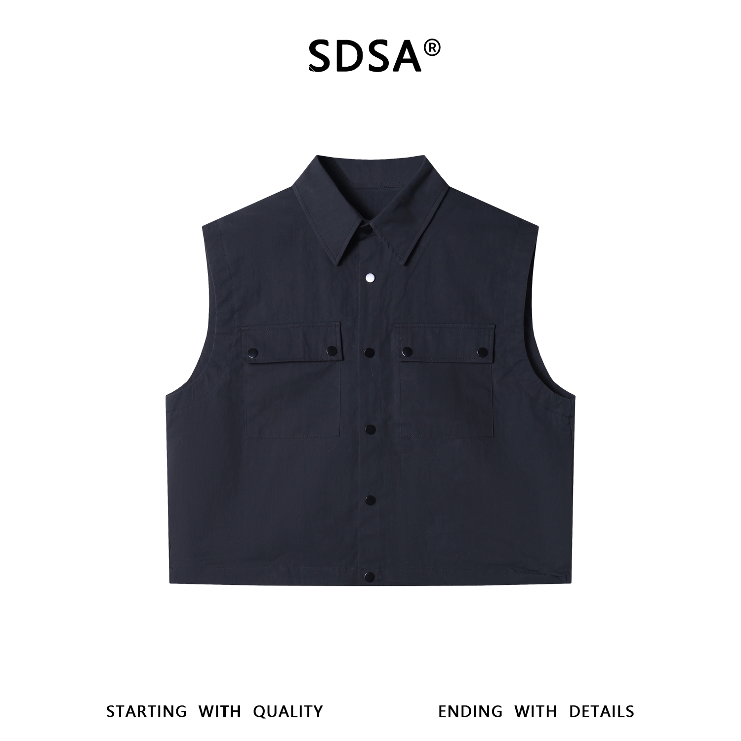 SDSA男装2026新款高贵轻奢时尚简约纯色马甲按扣翻领设计百搭休闲