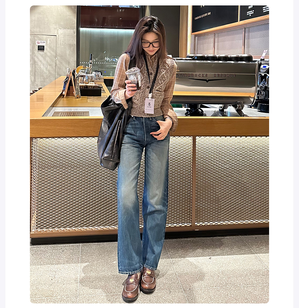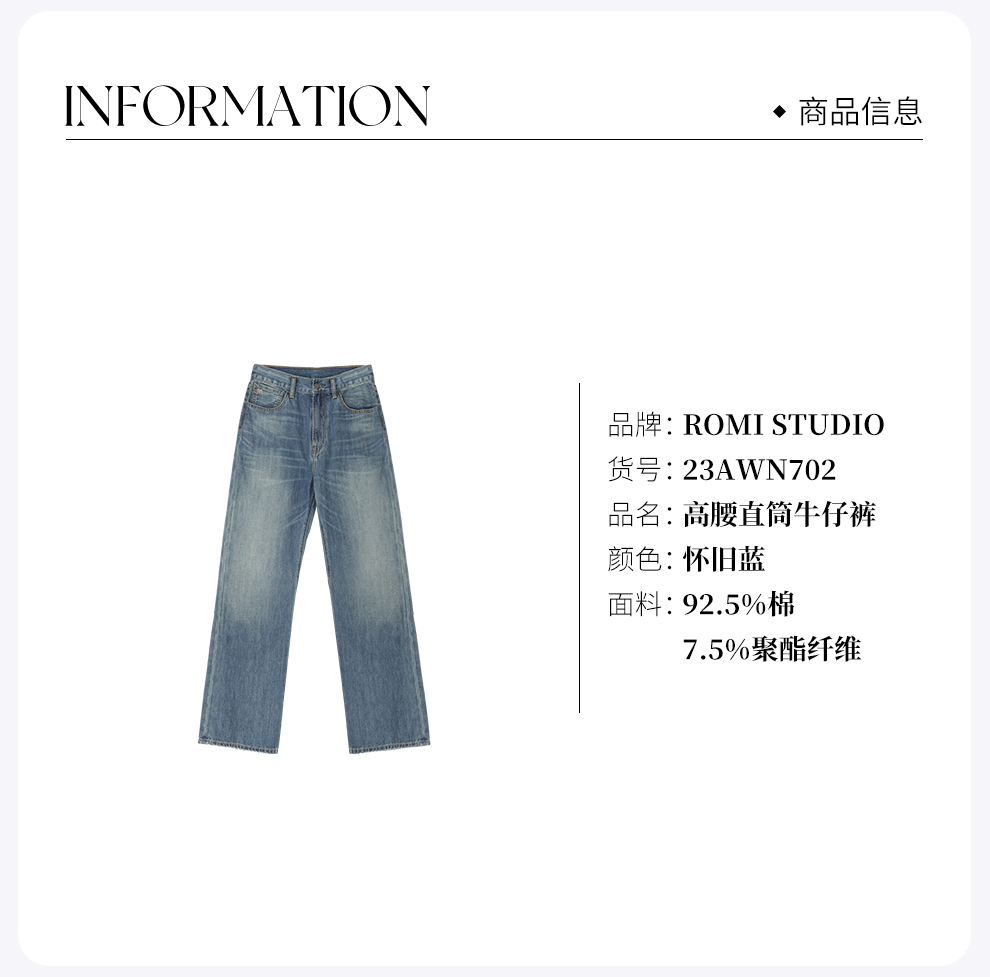 ROMI STUDIO“纽约牛仔” 100%棉高腰直筒怀旧蓝薄款牛仔裤23AWN702