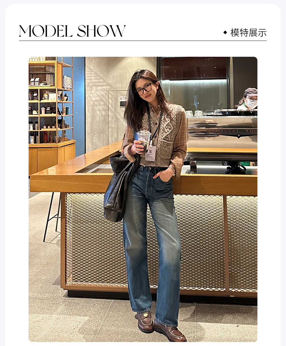 ROMI STUDIO复古感菱格提花图案撞色锁边套头毛衣毛衫 RWCWST6722