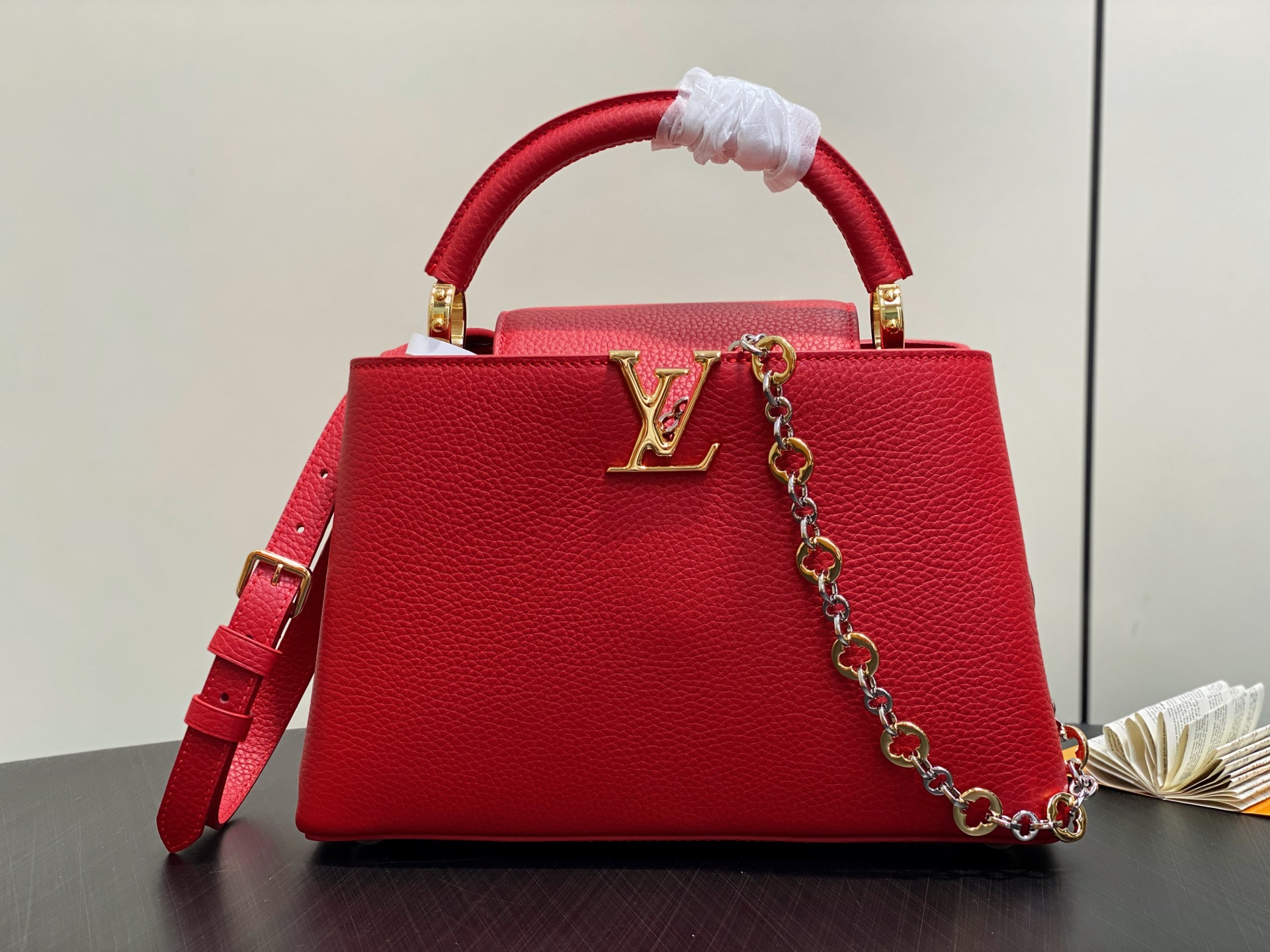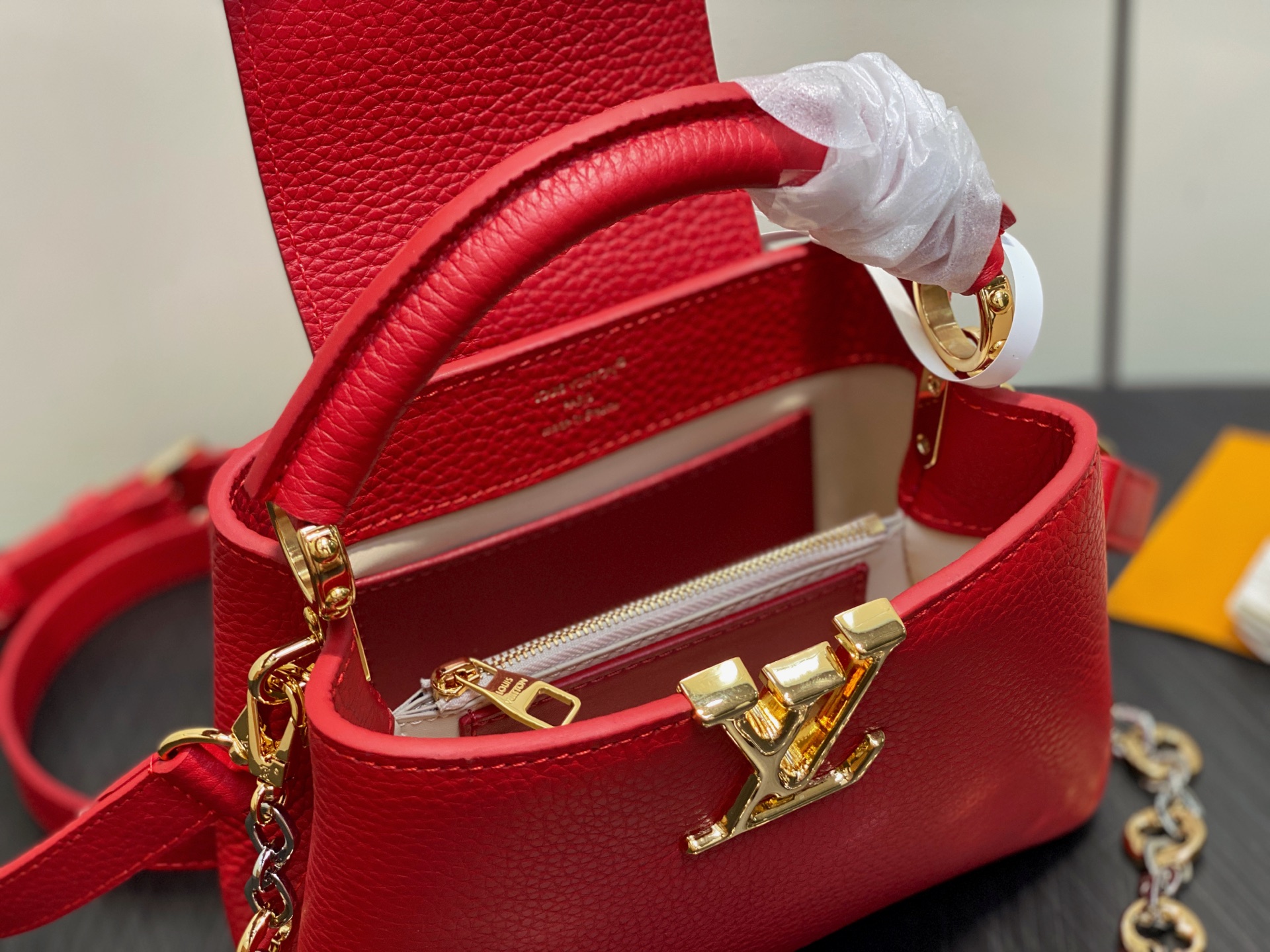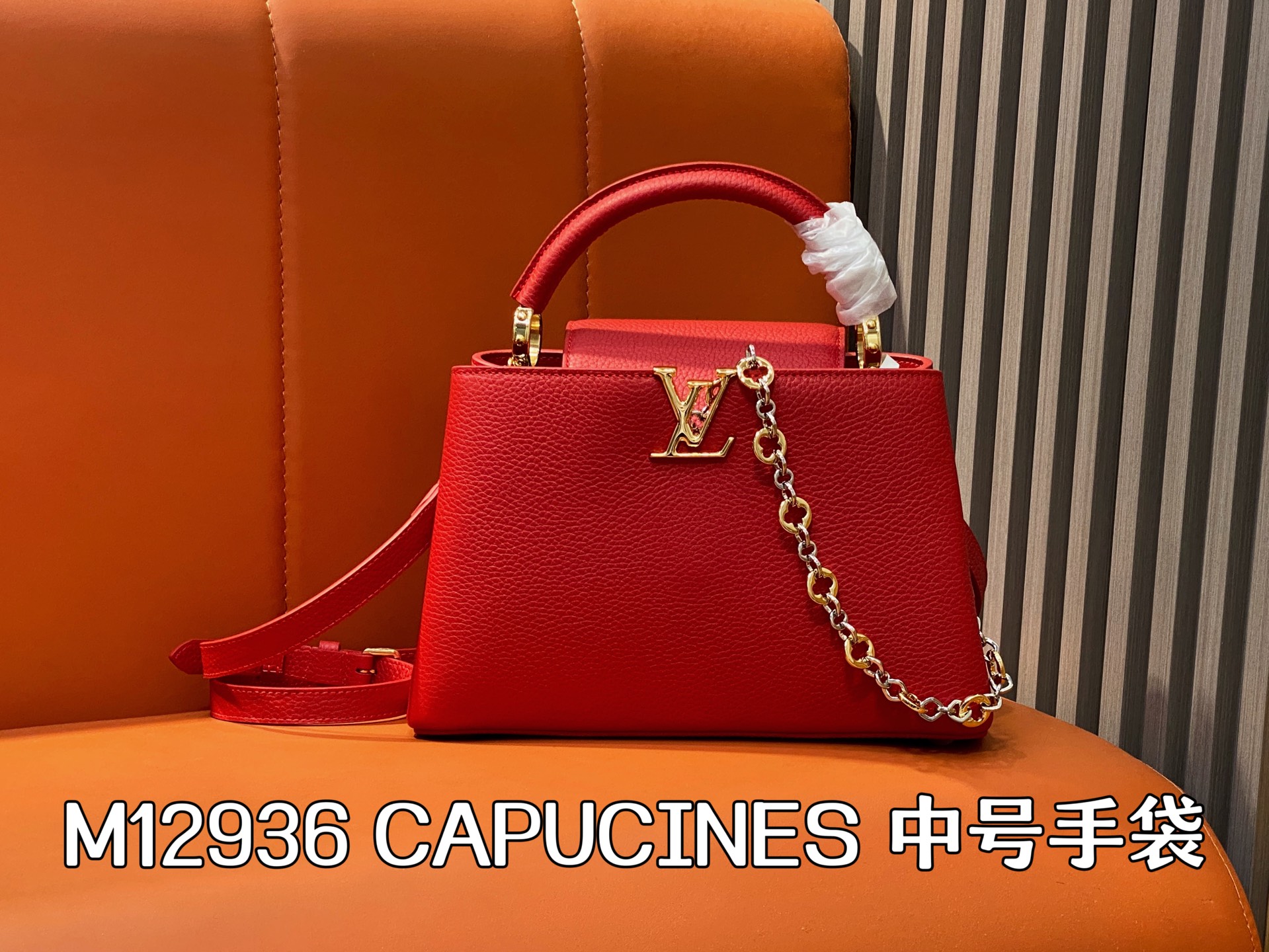 M12936红色 链条全皮cap那英款 CAPUCINES 中号手袋