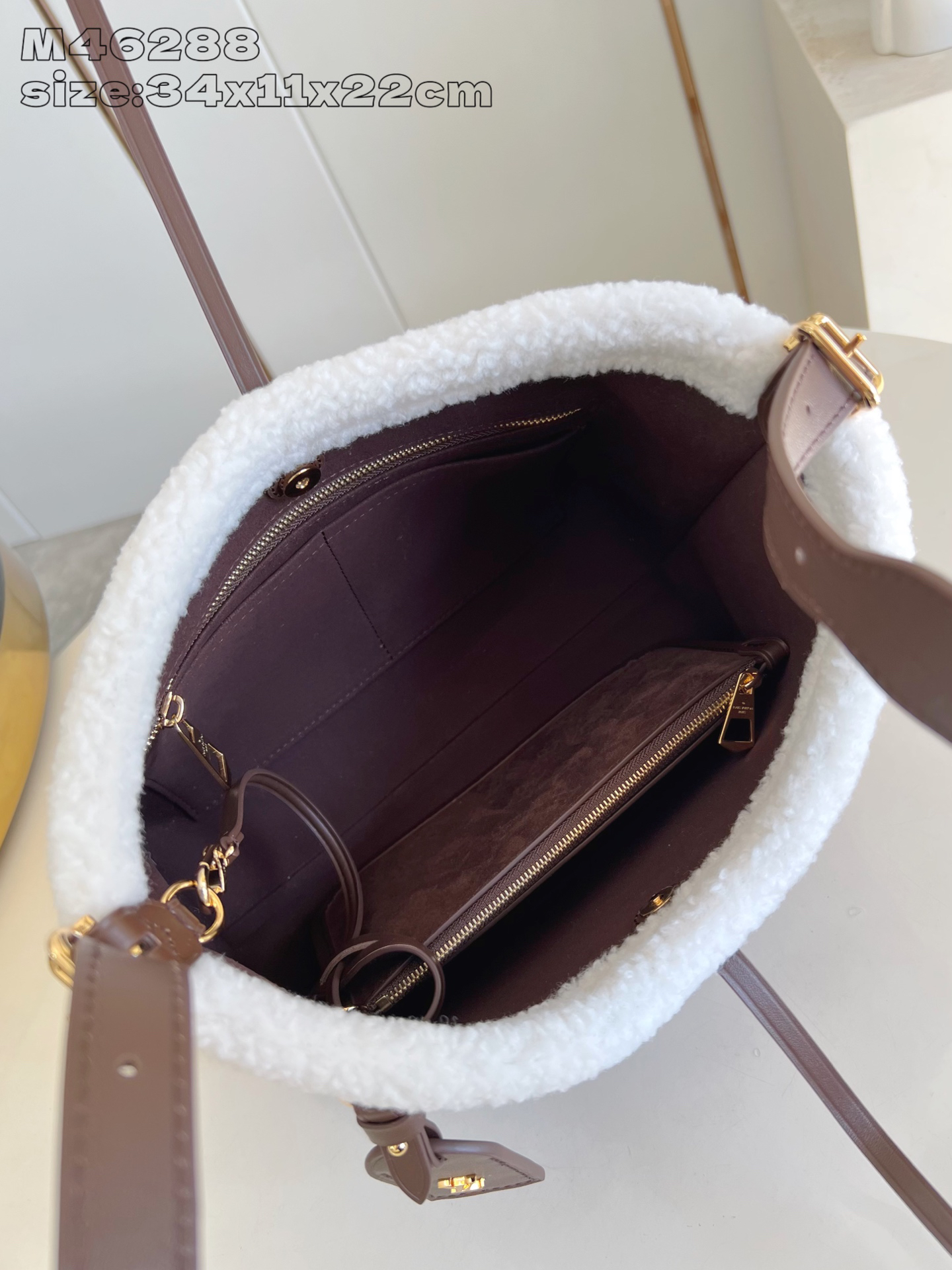 顶级版本【独家实拍 M46288浅咖毛绒 】M26421 本款 LV Ski 版本 CarryAll 小号手袋为丝滑柔软绒面牛皮革浸染浓郁 Chocolate 色调,为 Cozygram 系列增添潮流收藏佳选。羊毛皮饰边与耀目金属件流露考究韵致。内里口袋可收纳随身物品。可拆卸标识名牌再添点睛一笔。34 x 11 x 22 厘米 (高 x 宽 x 长度)