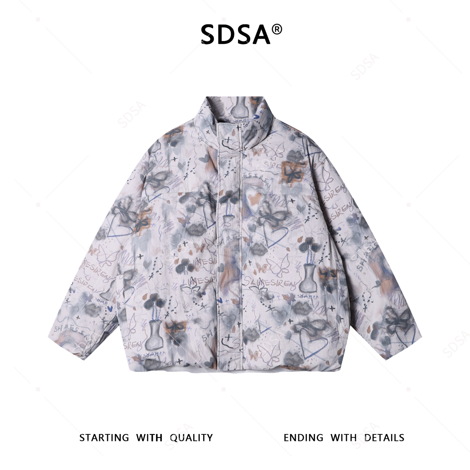 SDSA男士秋冬新款痞帅男装高街涂鸦立领羽绒服外套百搭宽松简约